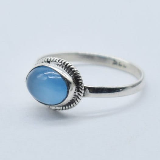 This ring is made of high-quality materials. The Blue Chalcedony is natural and untreated while the setting is made of solid 925 sterling silver.