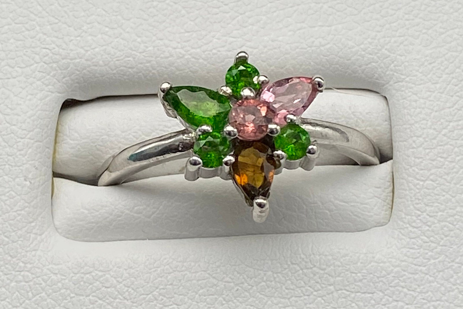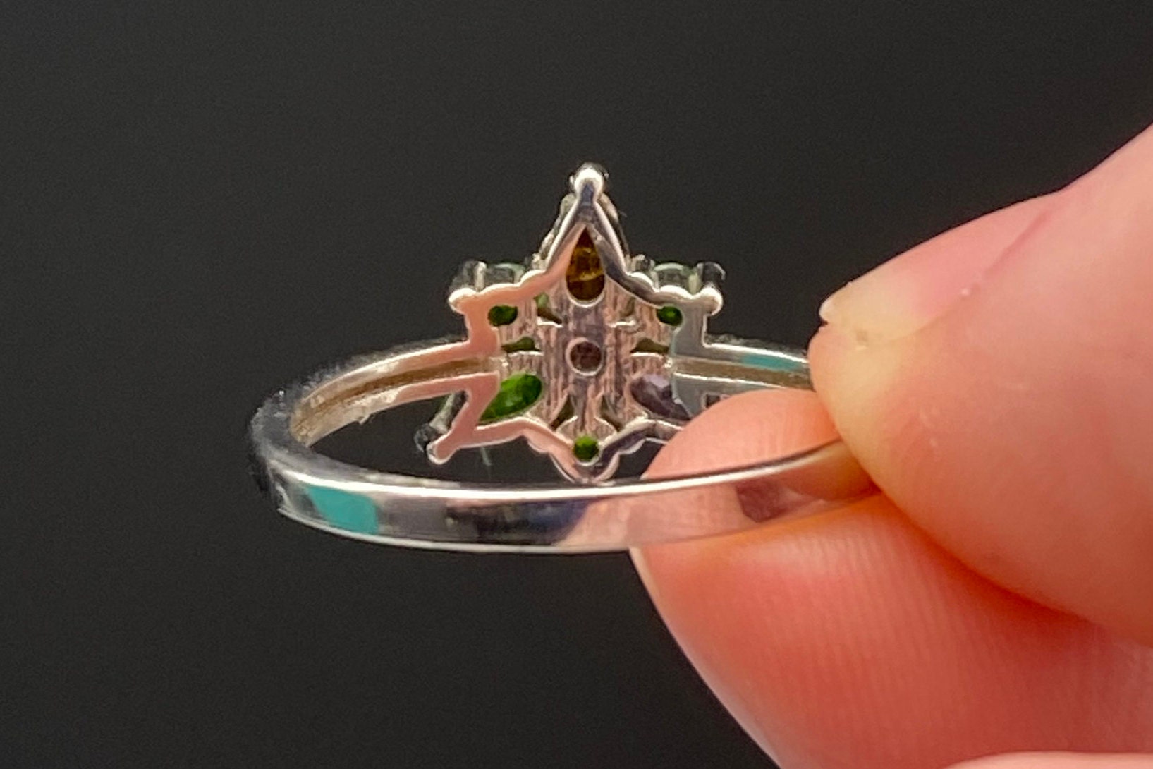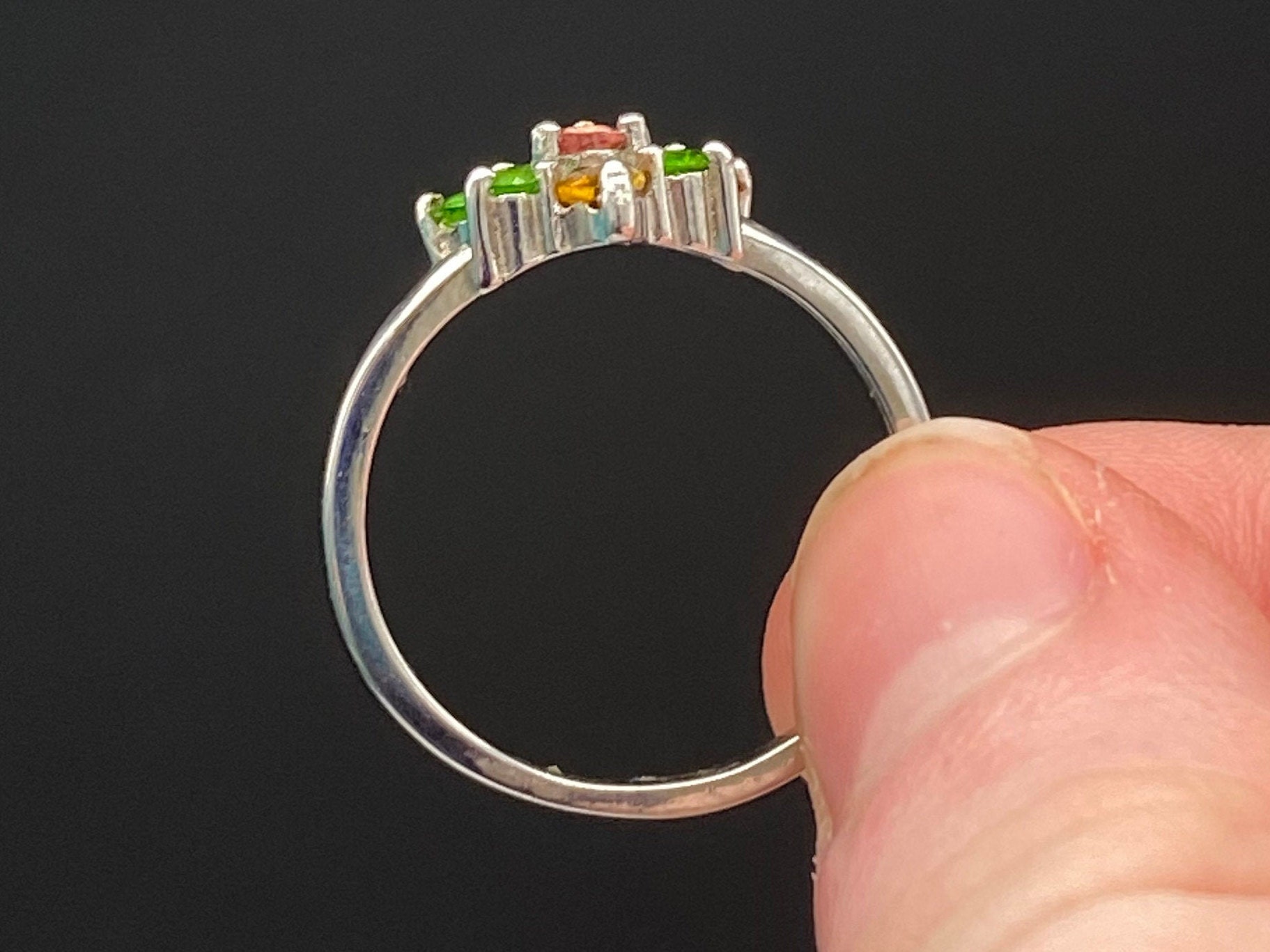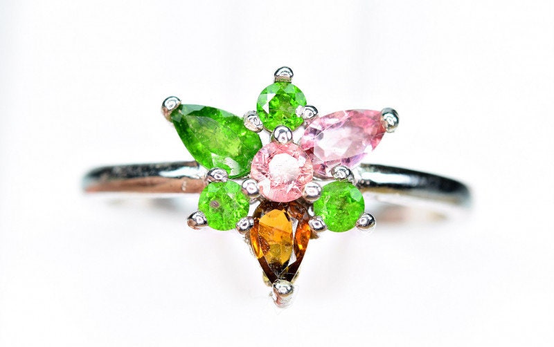 This ring is made of high-quality materials. The multicolored Tourmaline and Chrome Diopside are natural and untreated and the setting is made of solid 925 sterling silver.