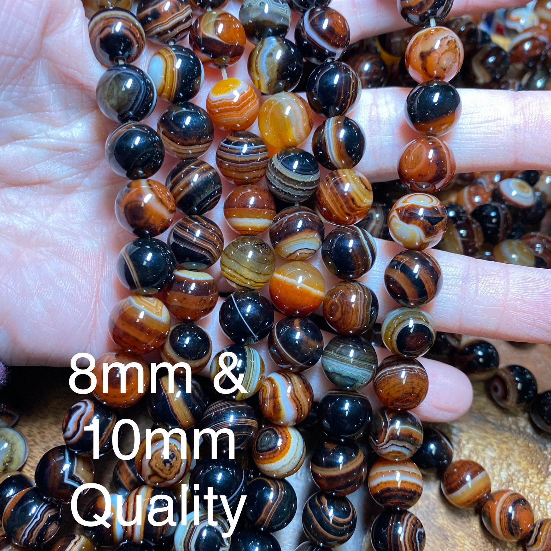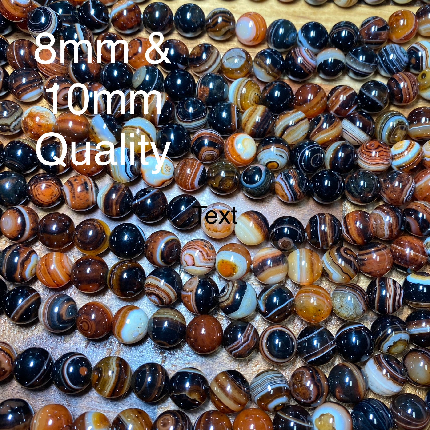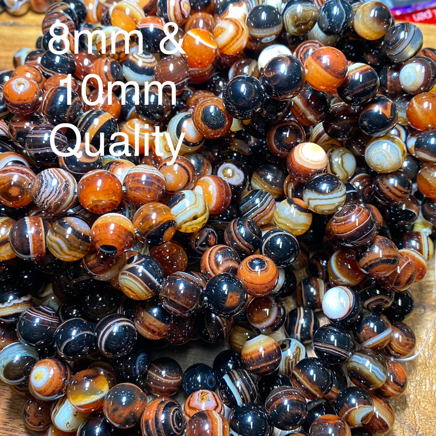 There is a difference between the 8mm/10mm and the 6mm/4mm beads. The photos are marked accordingly. The quality is the same but the coloring is slightly different as depicted in the photos. The beads you will receive are in the photos since we take new photos with each new lot of beads we receive. Send us a message if you have any questions.