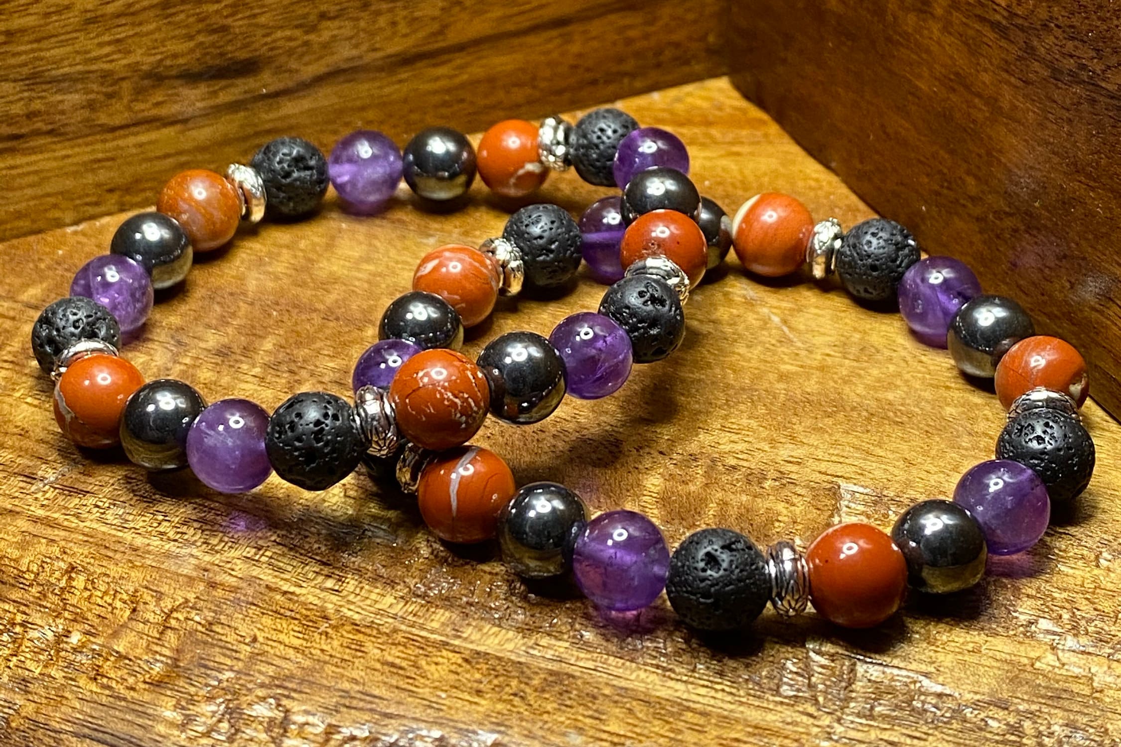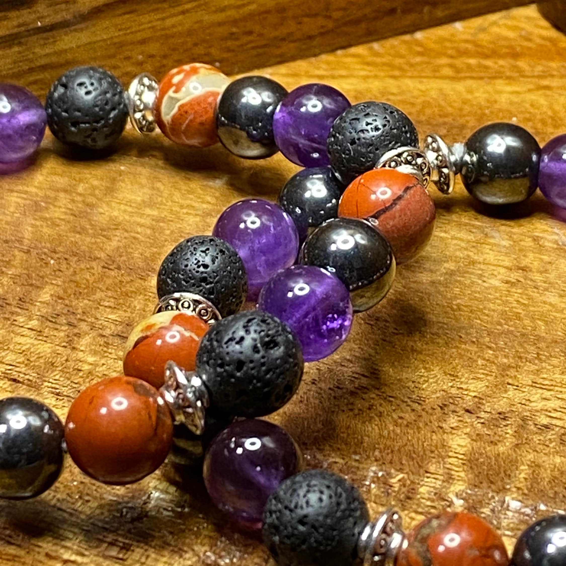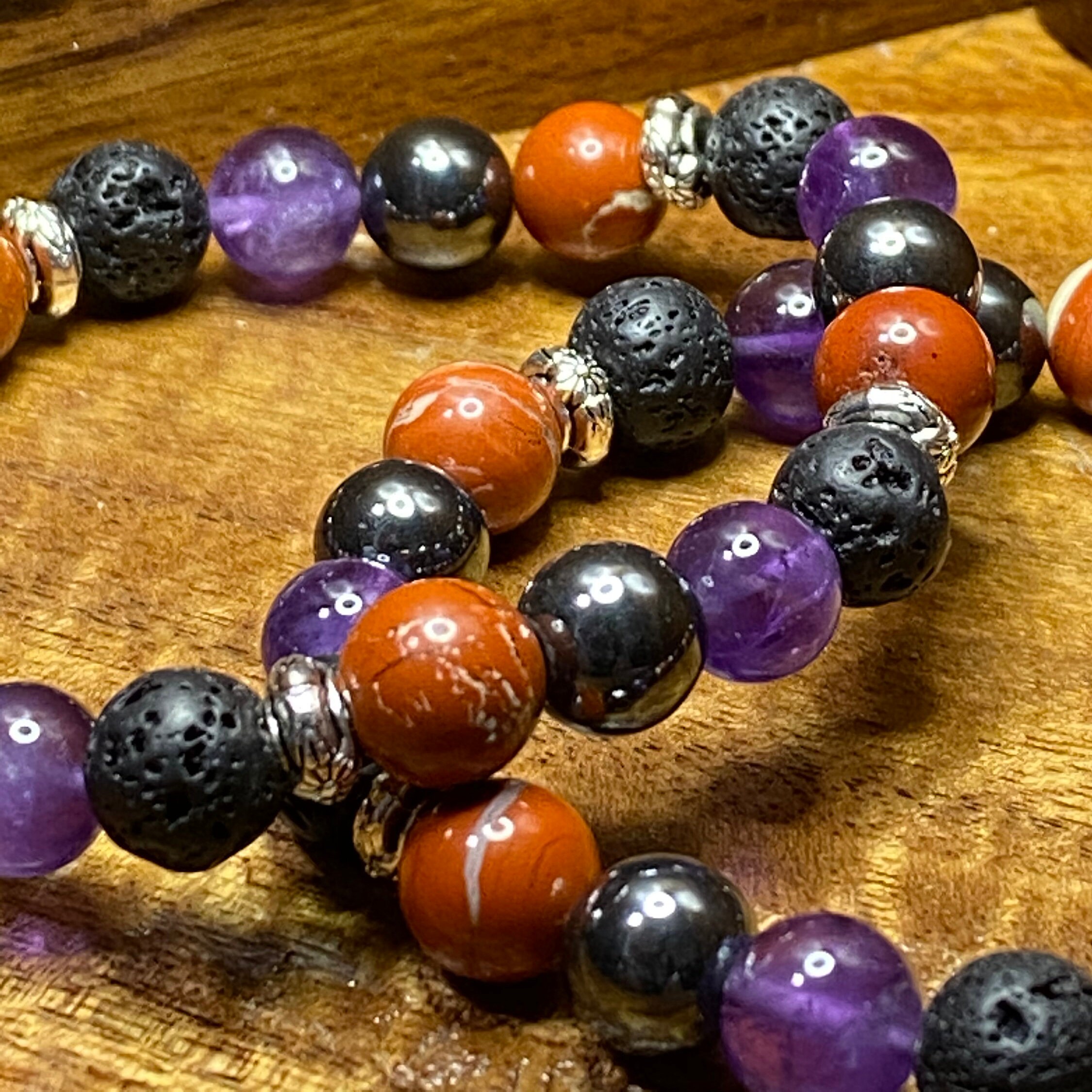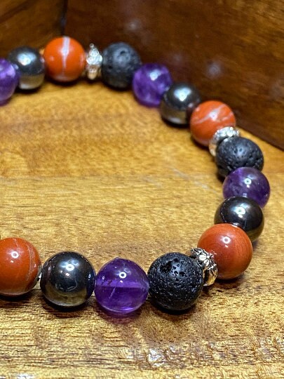 This Red Jasper, Hematite, Amethyst and Lava rock bracelet will bring health, healing, strength and power to all those looking for it during these rough times. I choose to use 8mm size bead for the perfect fit and the natural stone are accentuated the most beautiful silver spacers.