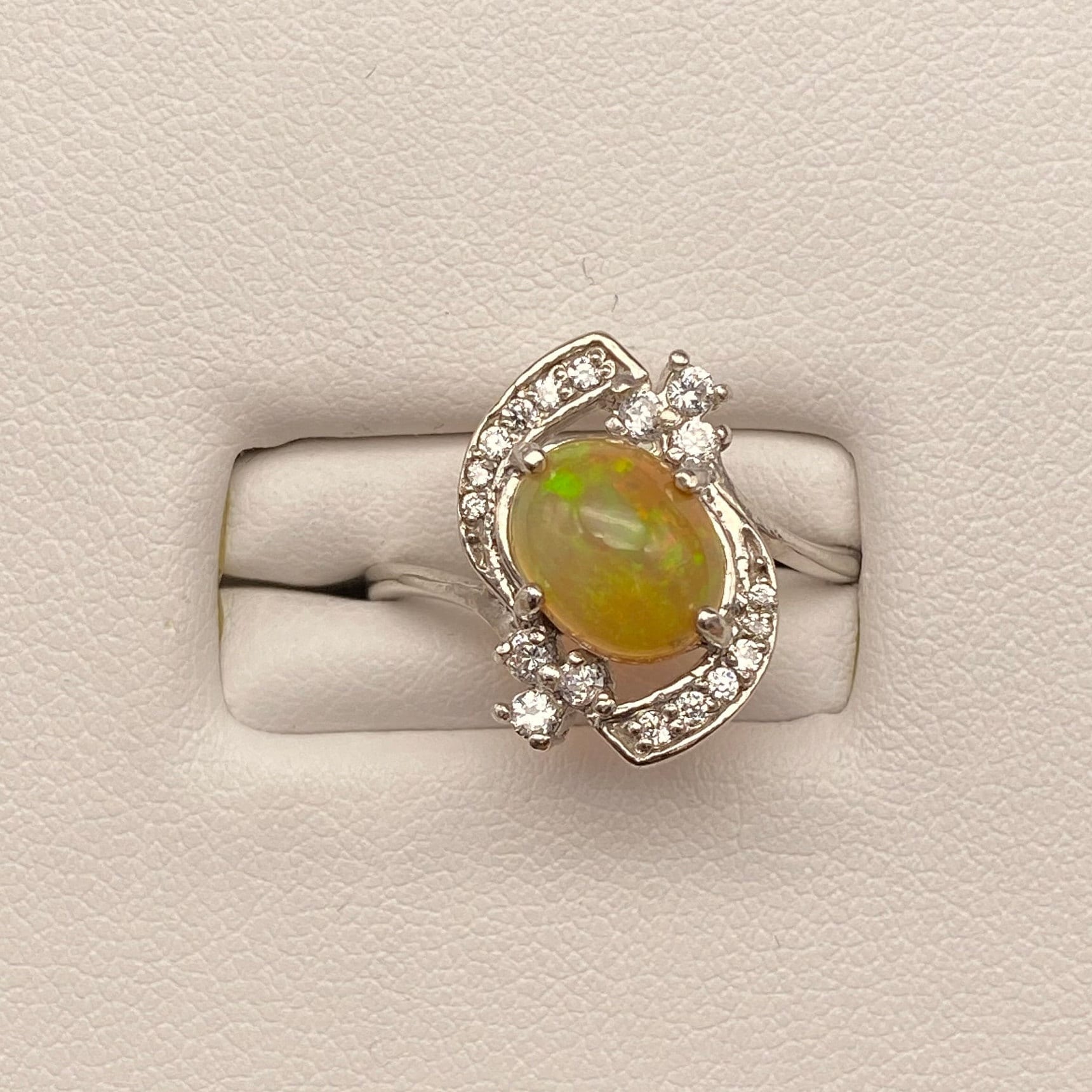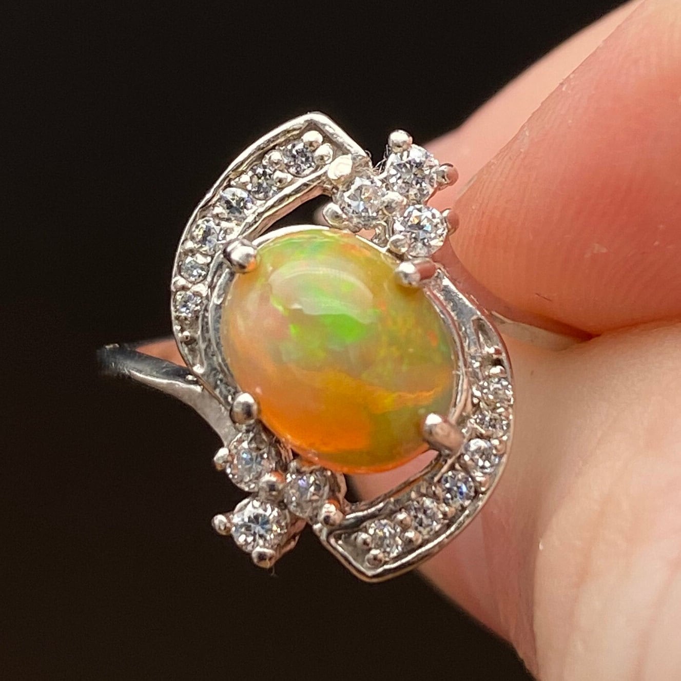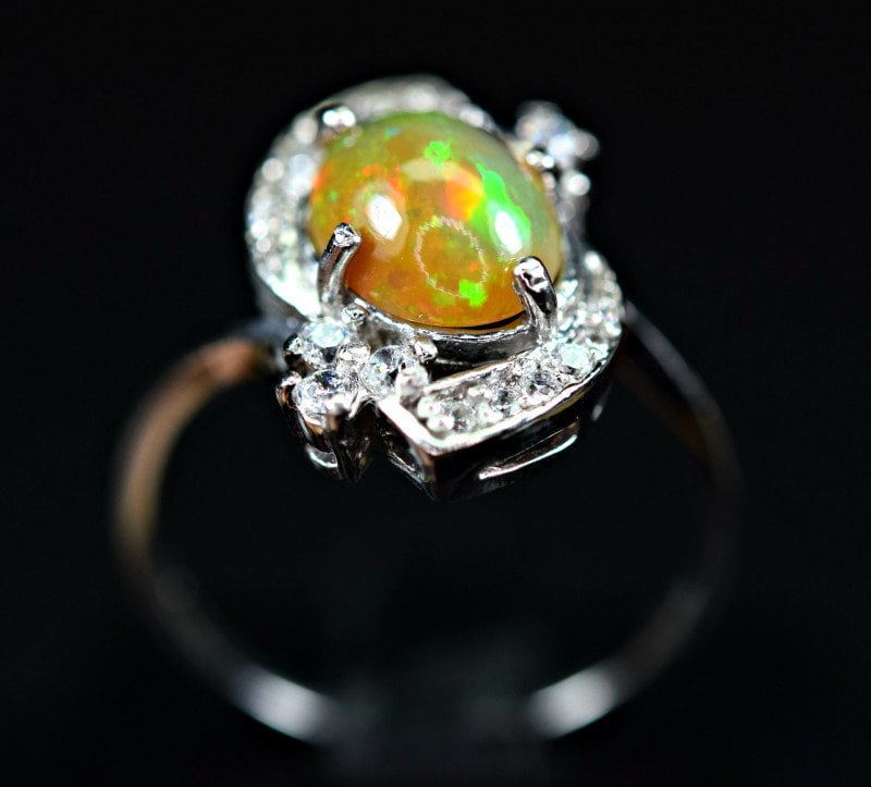 This ring is made of high-quality materials. The Ethiopian Welo Rolling/Pinfire Flash Fire Opal is natural and untreated and the setting is made of solid 925 sterling silver. The small stones around the main stone are high quality cubic zirconia.