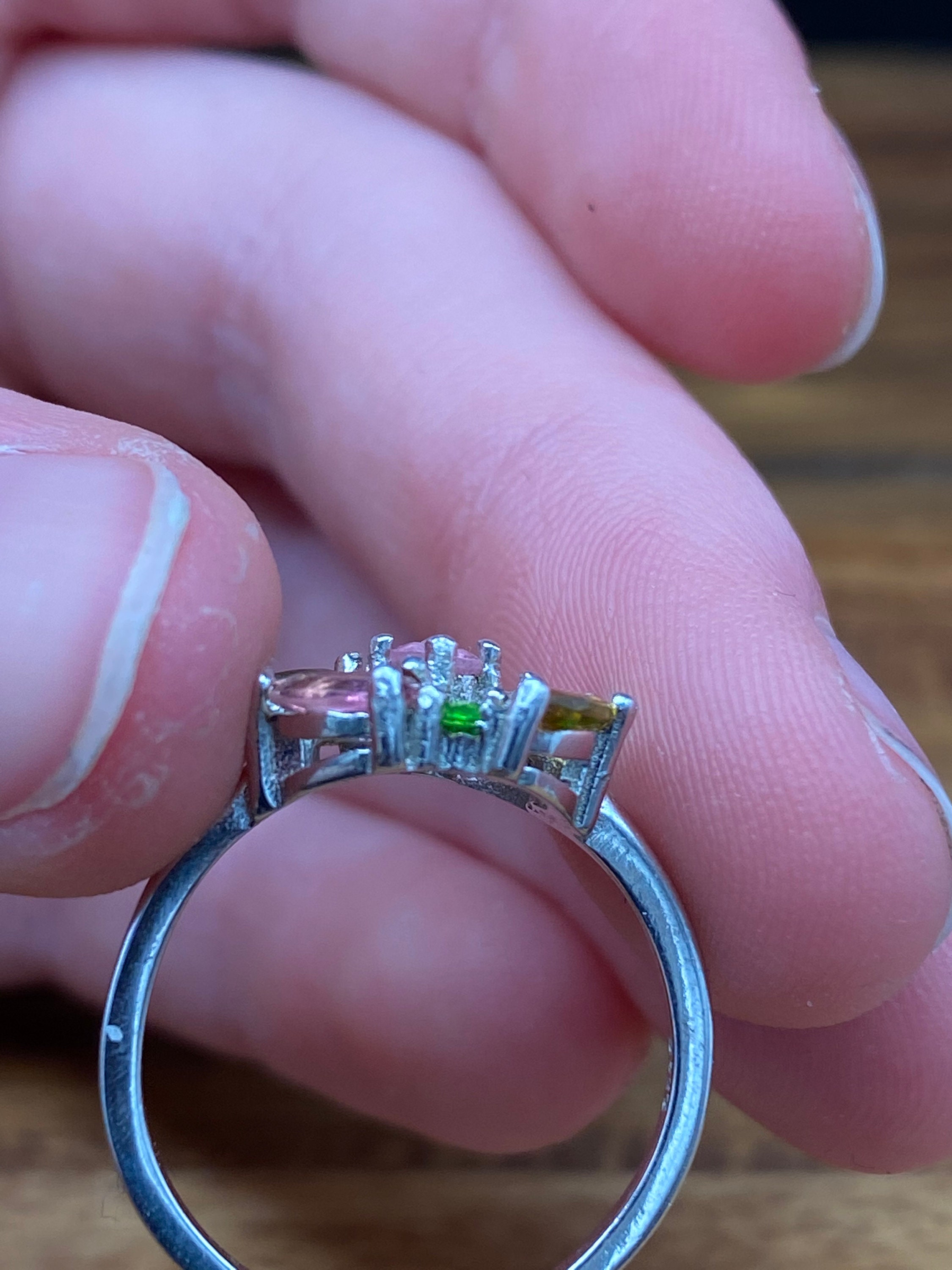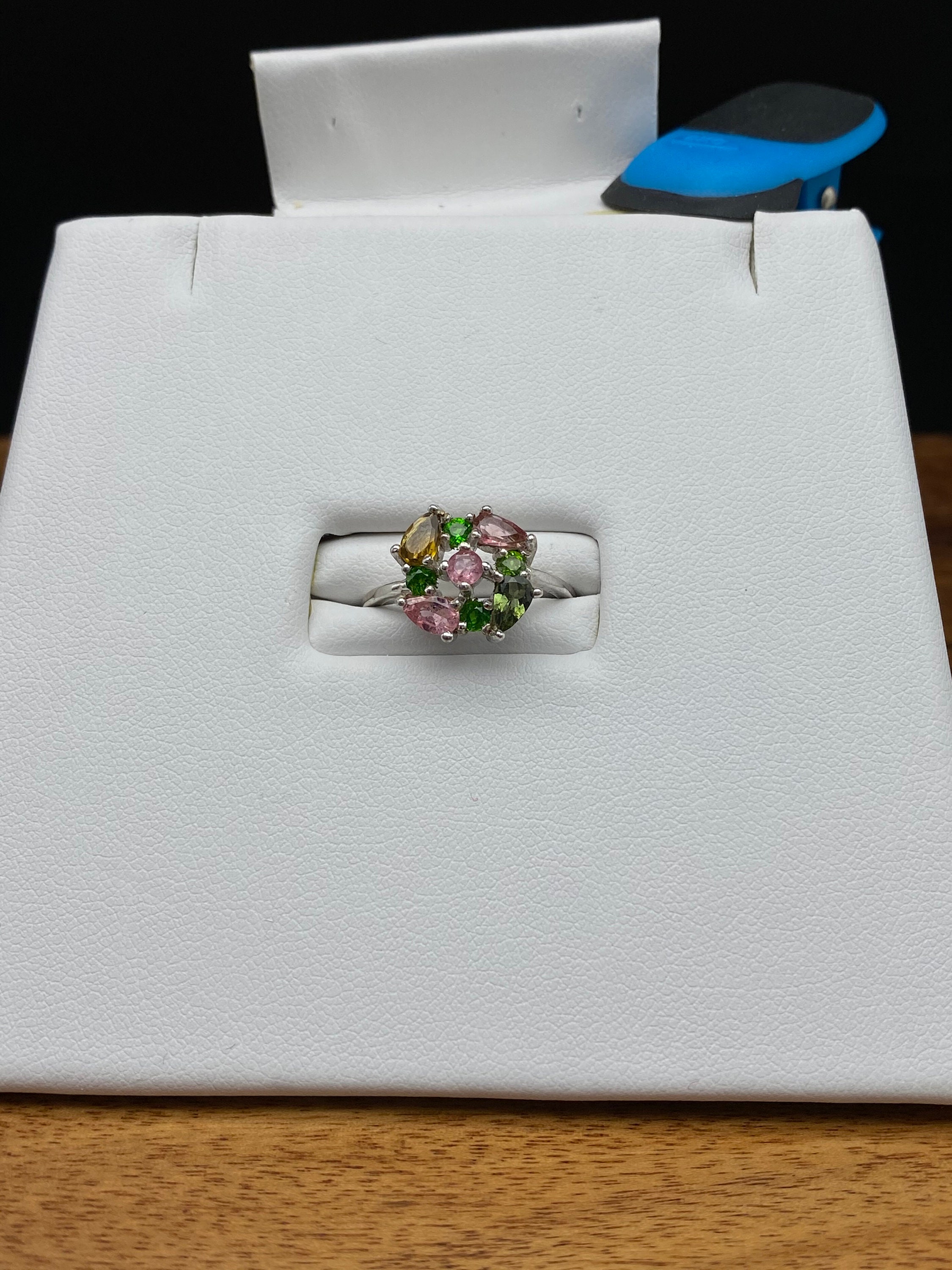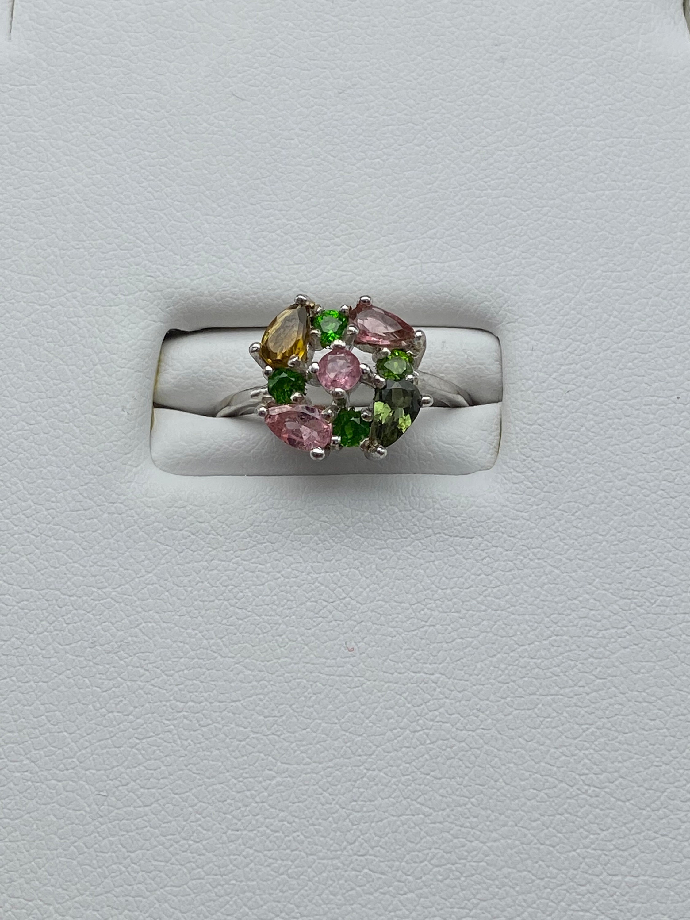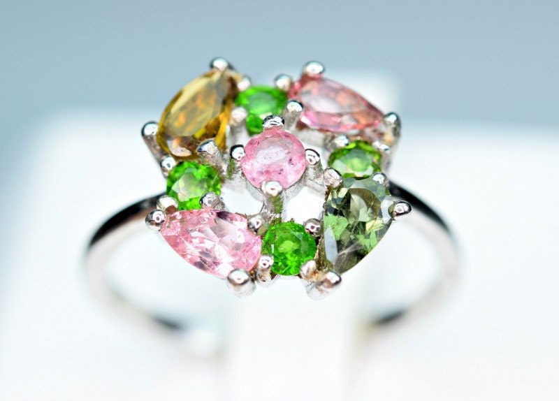This ring is made of high-quality materials. The Rubellite (Pink Tourmaline), Verdelite (Green Tourmaline), Dravite (Brown Tourmaline) and Chrome Diopside are natural and untreated and the setting is made of solid 925 sterling silver.