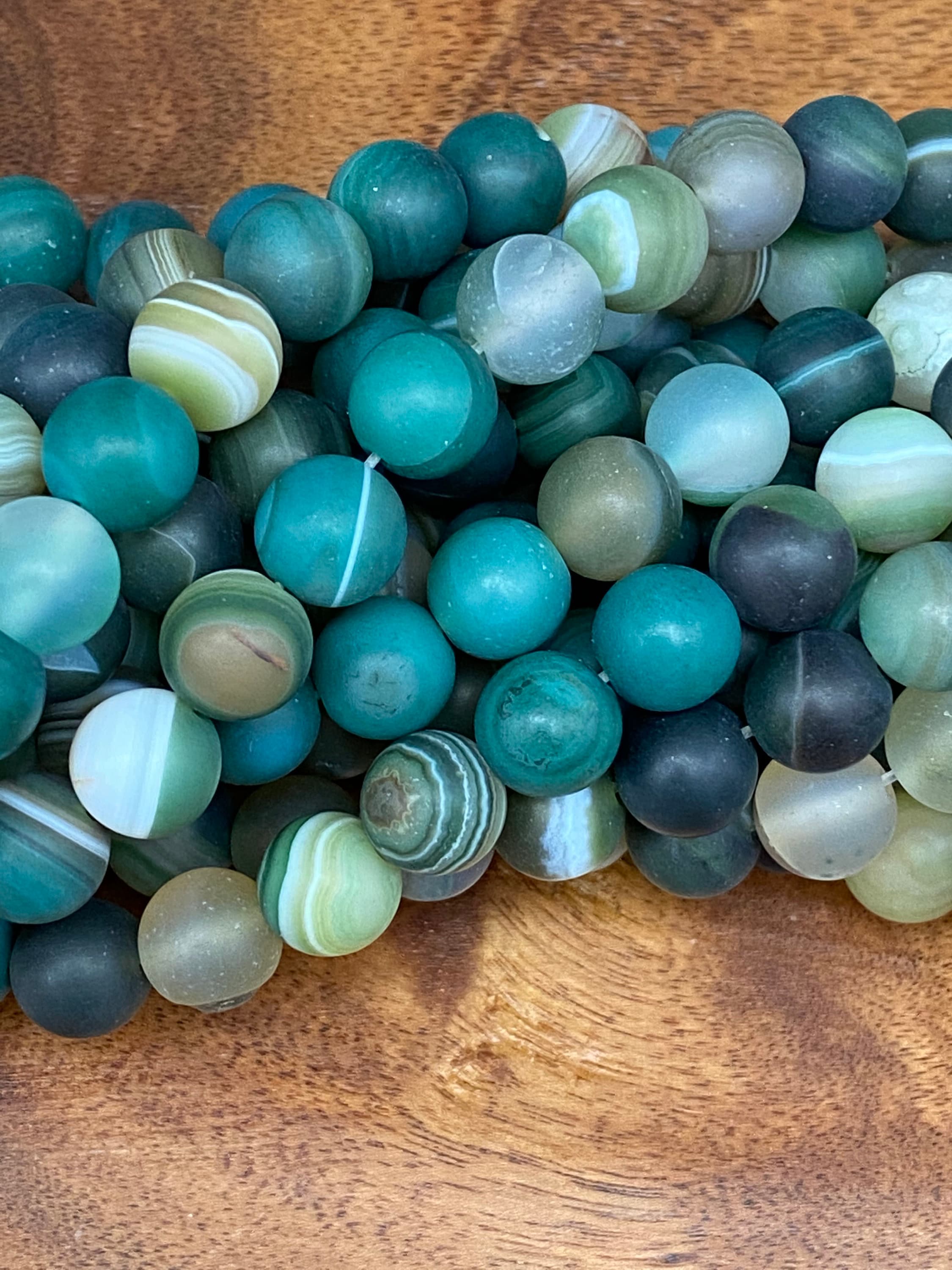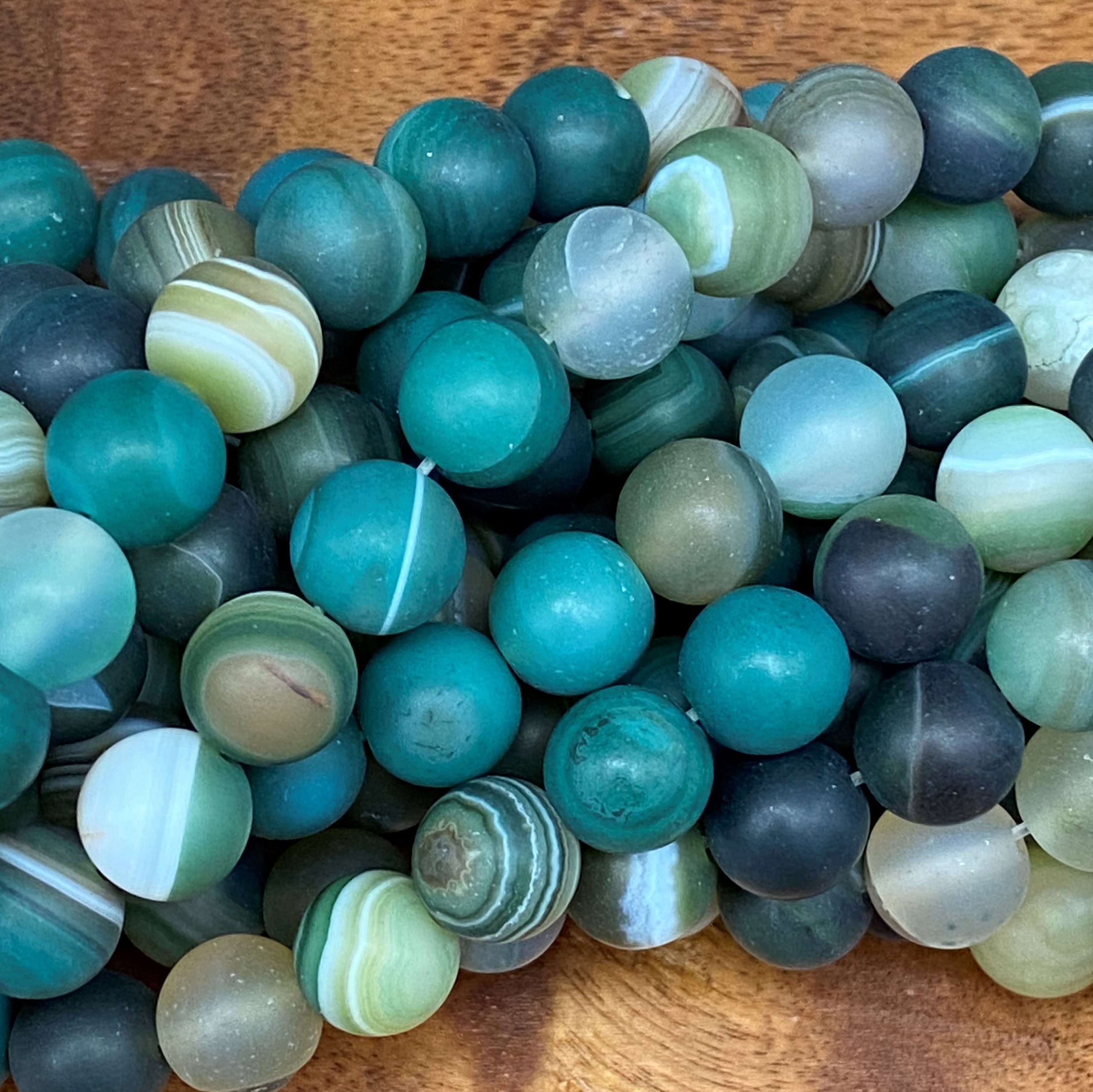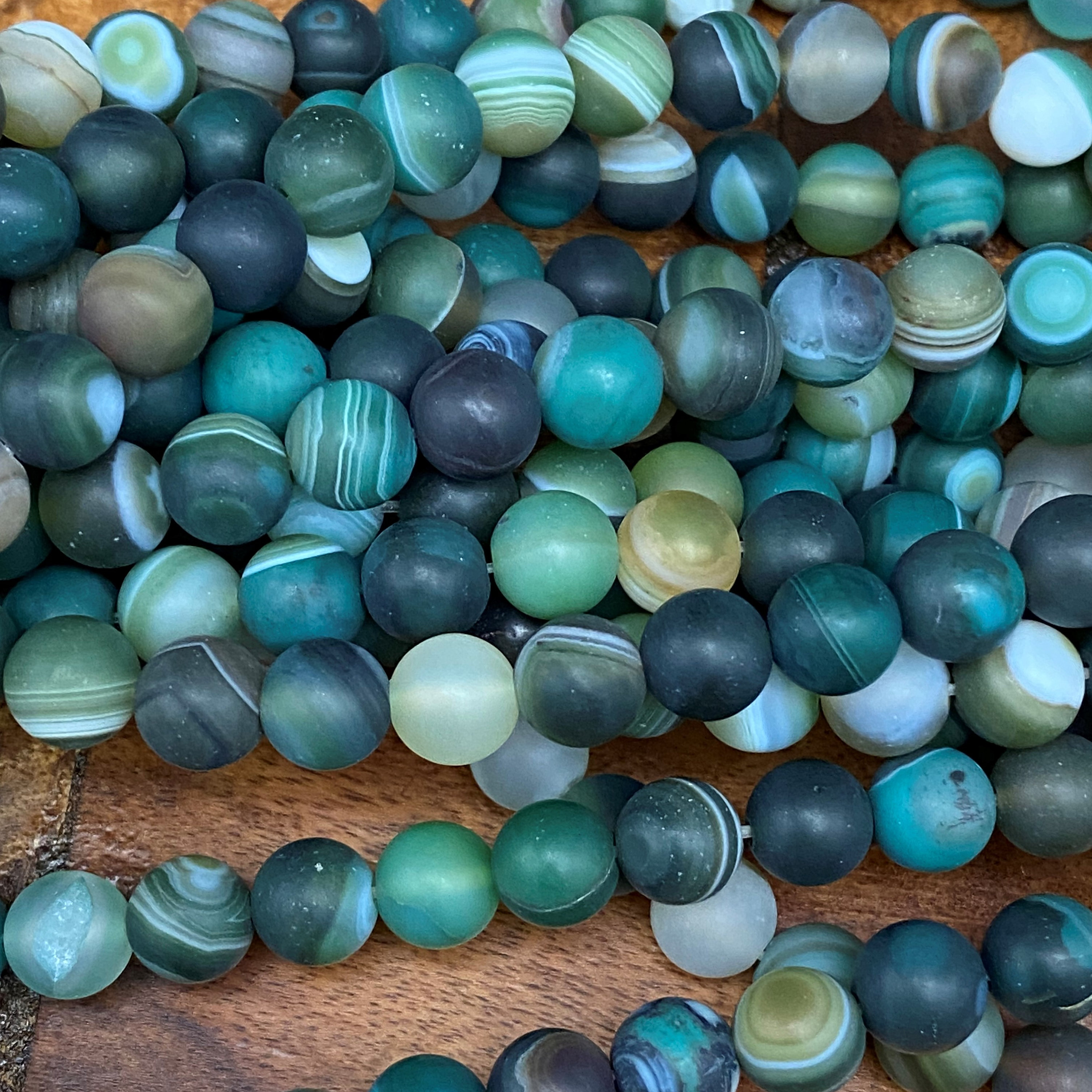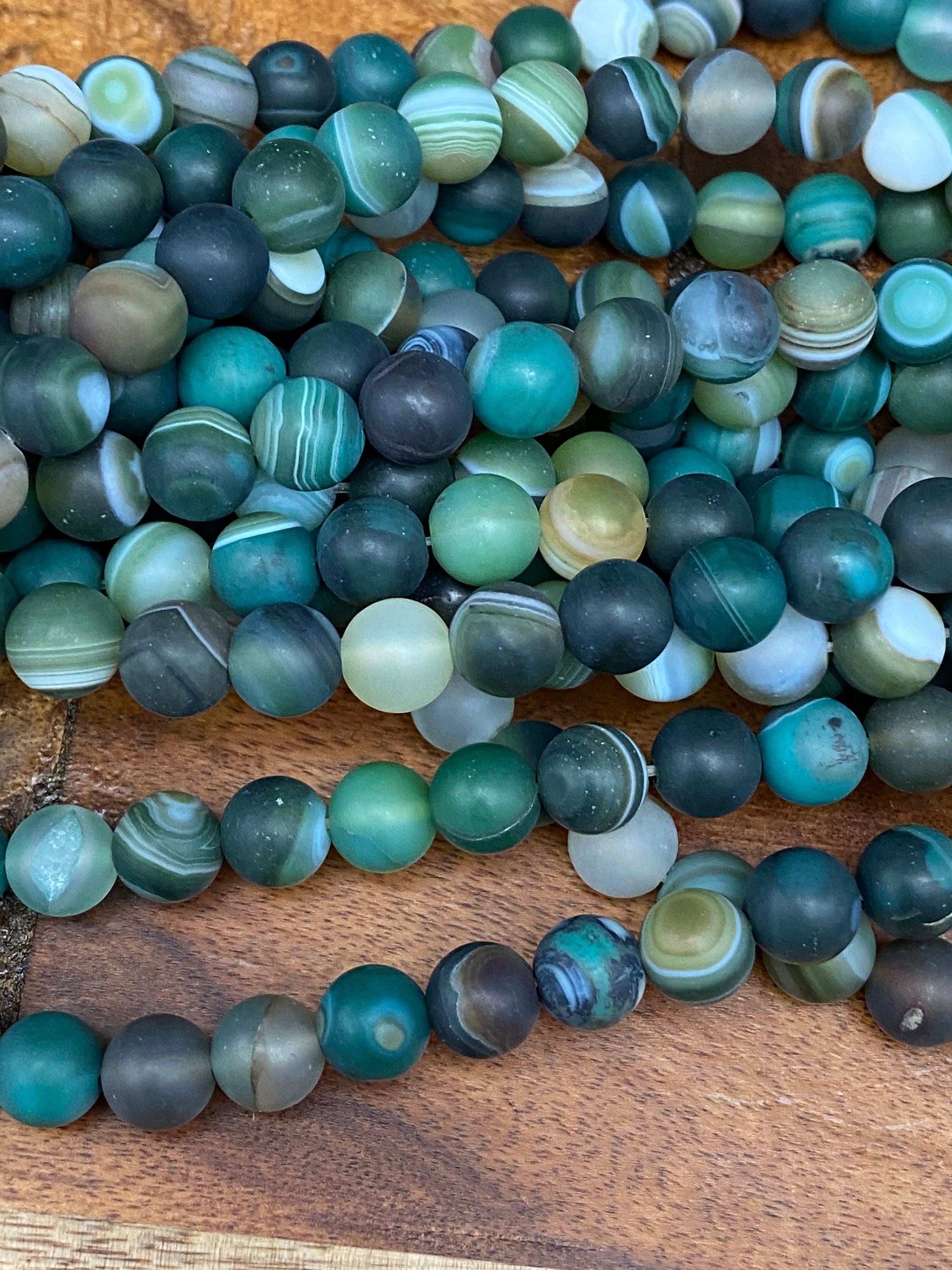 Beautiful Natural Matte Mixed Colored Green Striped Agate Gemstone Beads for Jewelry/Craft Making, Round 8mm (44-48 pieces)