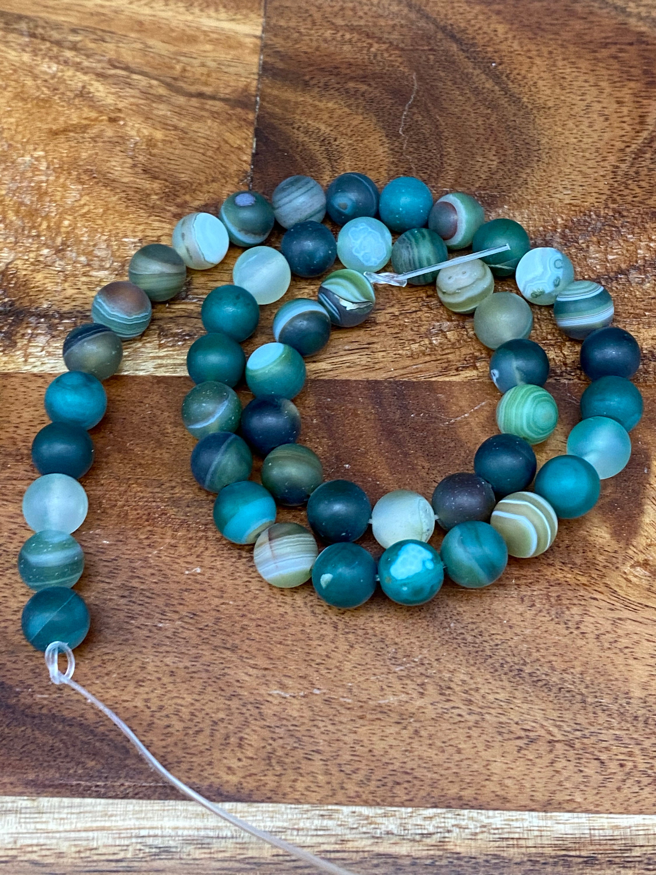 **Stone/material: Matte Green Striped Agate - natural stone, color enhanced.