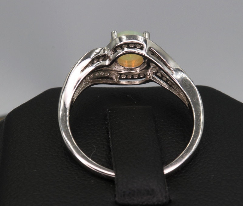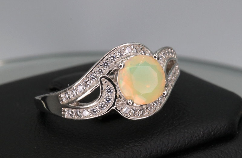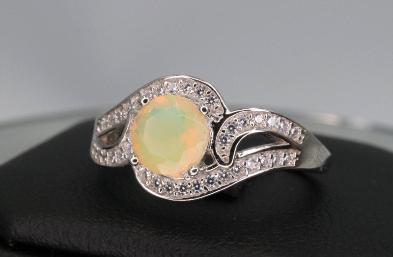 This ring is made of high-quality materials. The Ethiopian fire opal is natural and untreated and the ring is made of solid 925 sterling silver. The small stones around the main stone are superb cubic zirconia.