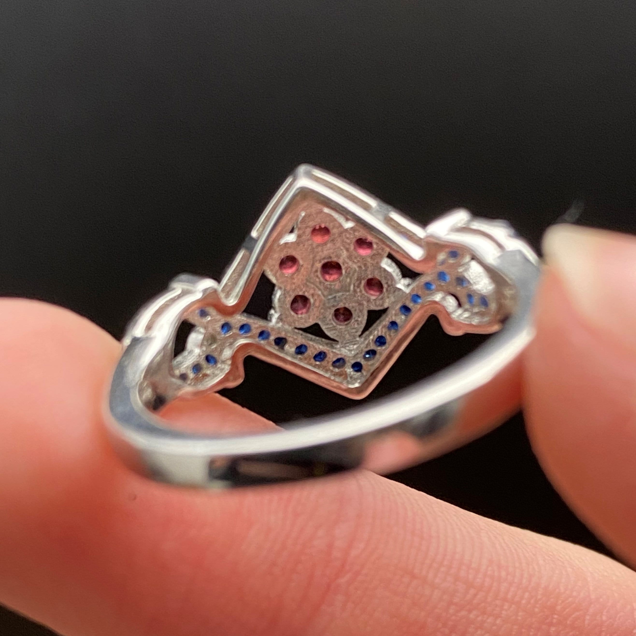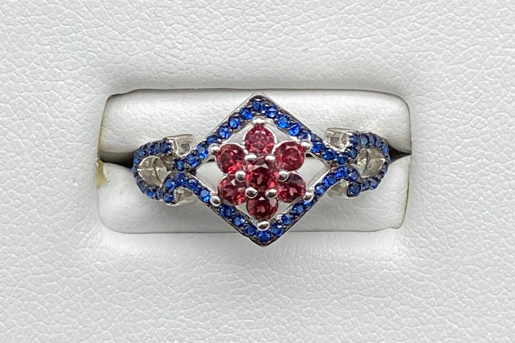 This ring is made of high-quality materials. The Rhodolite Garnet and Chrome Diopside are natural/untreated and the setting is made of solid 925 sterling silver.