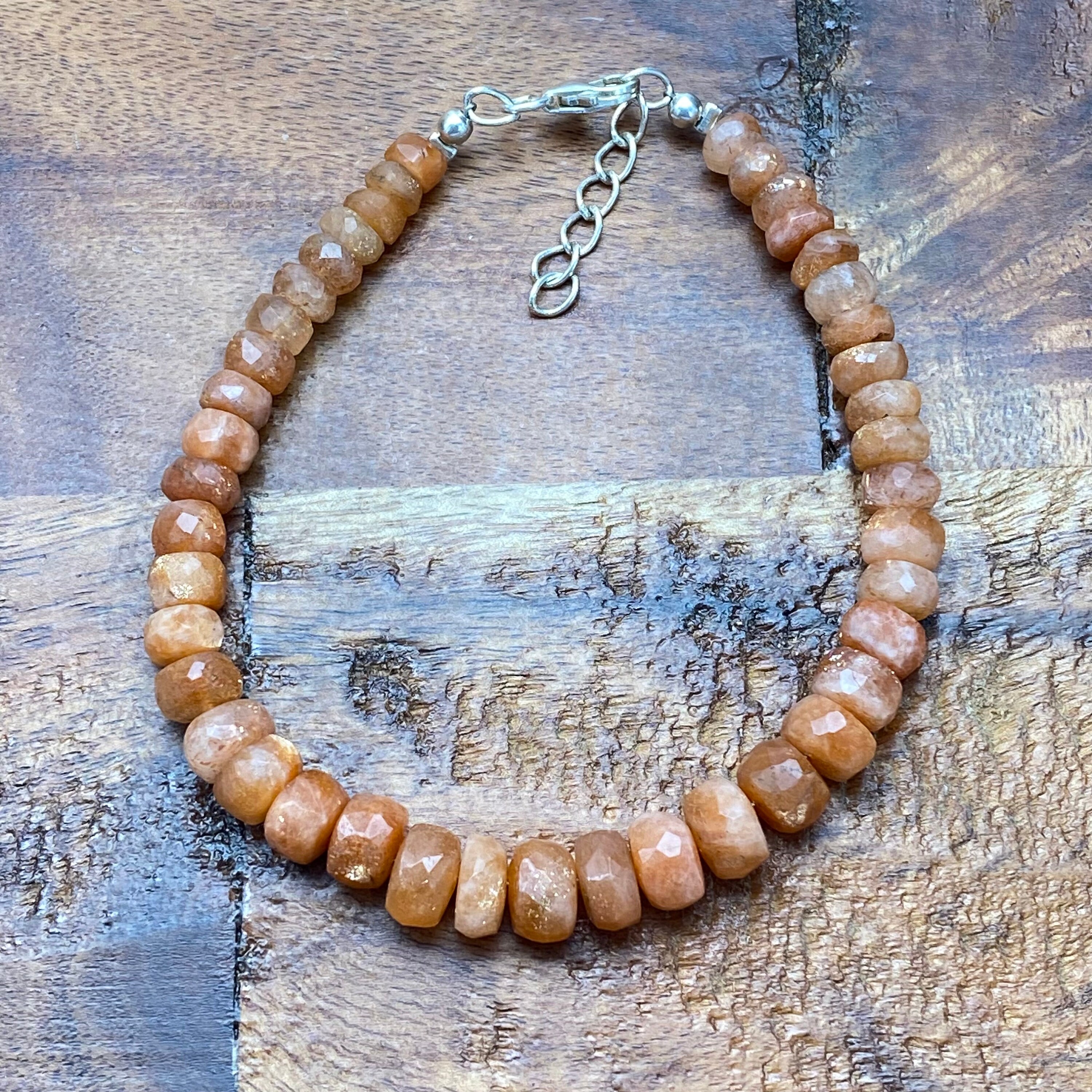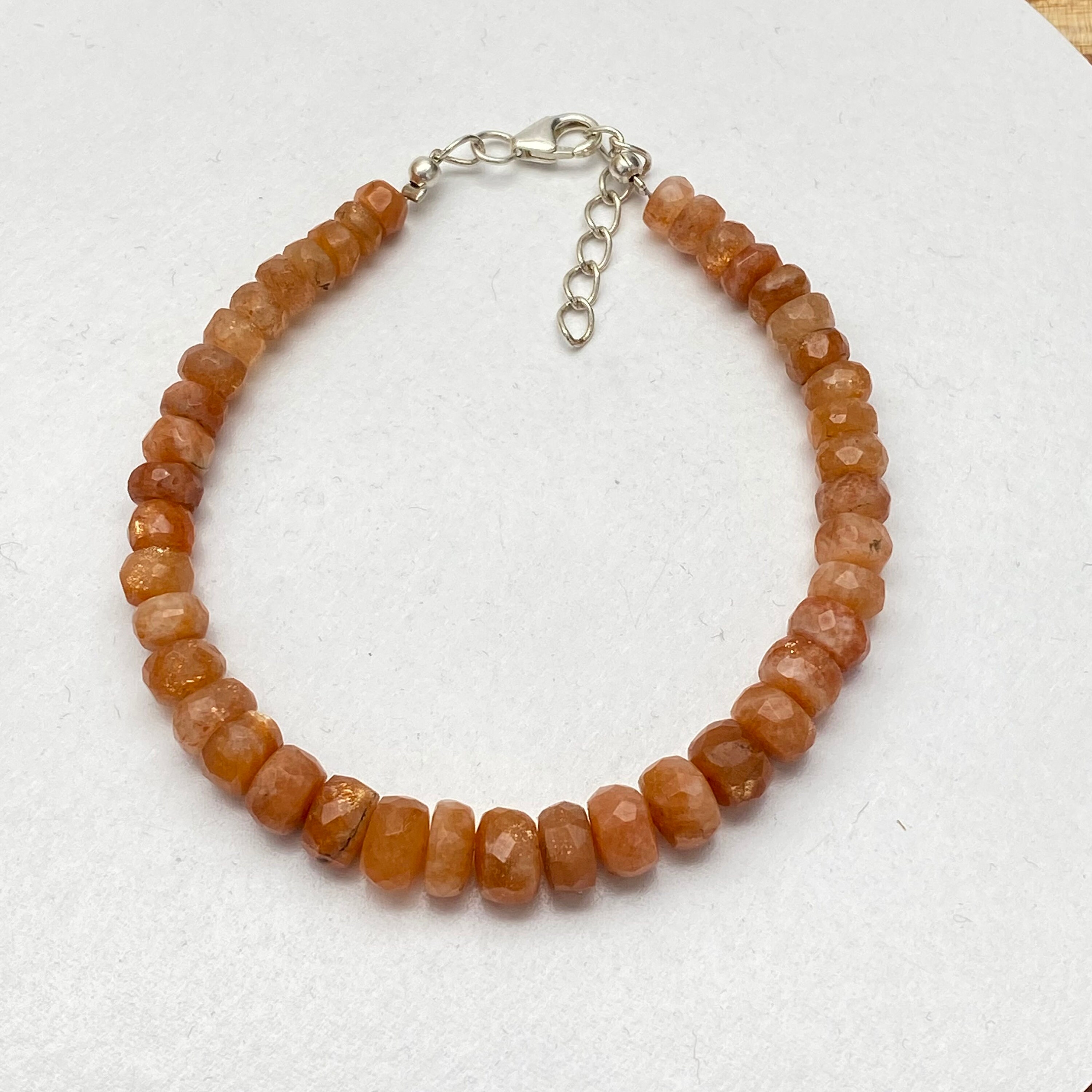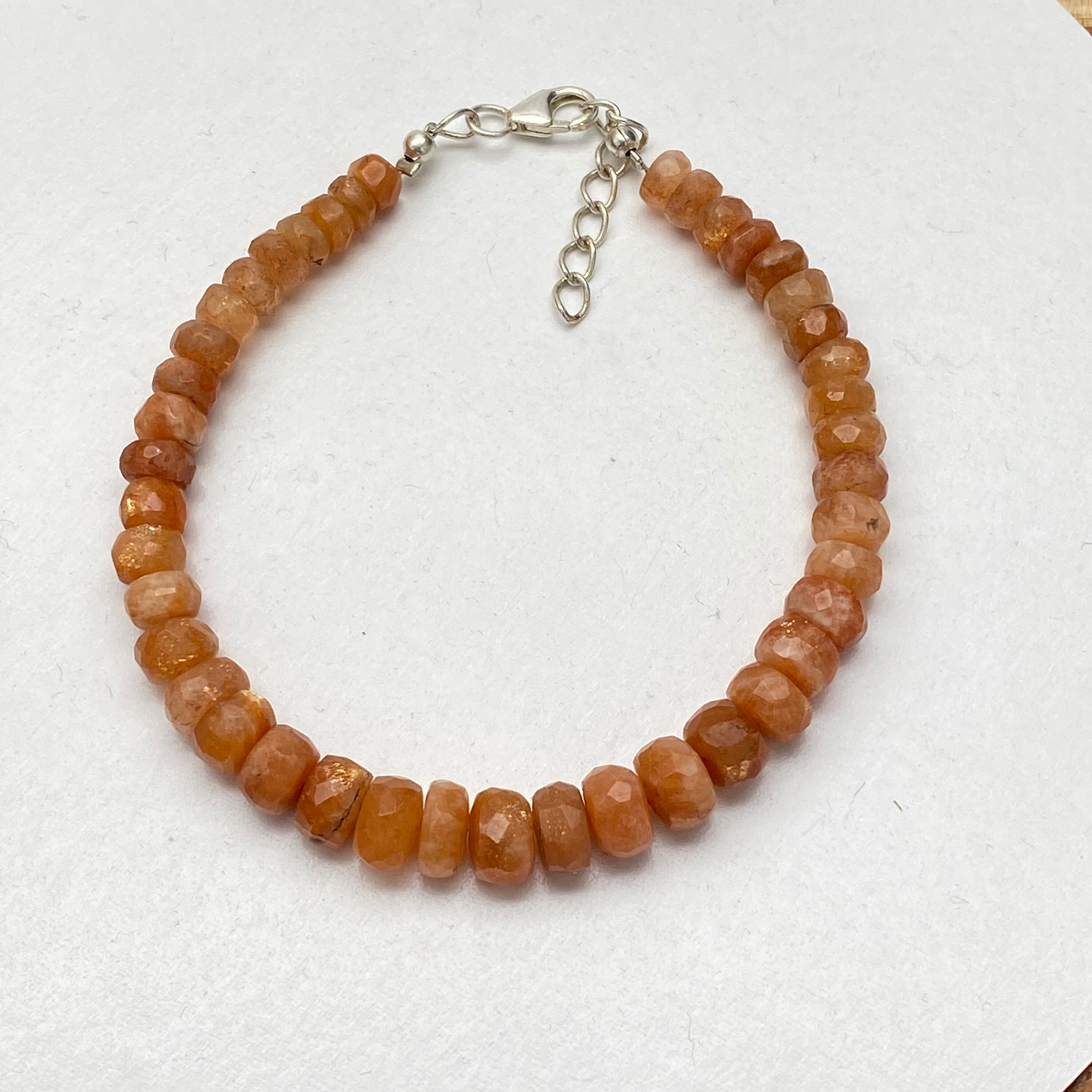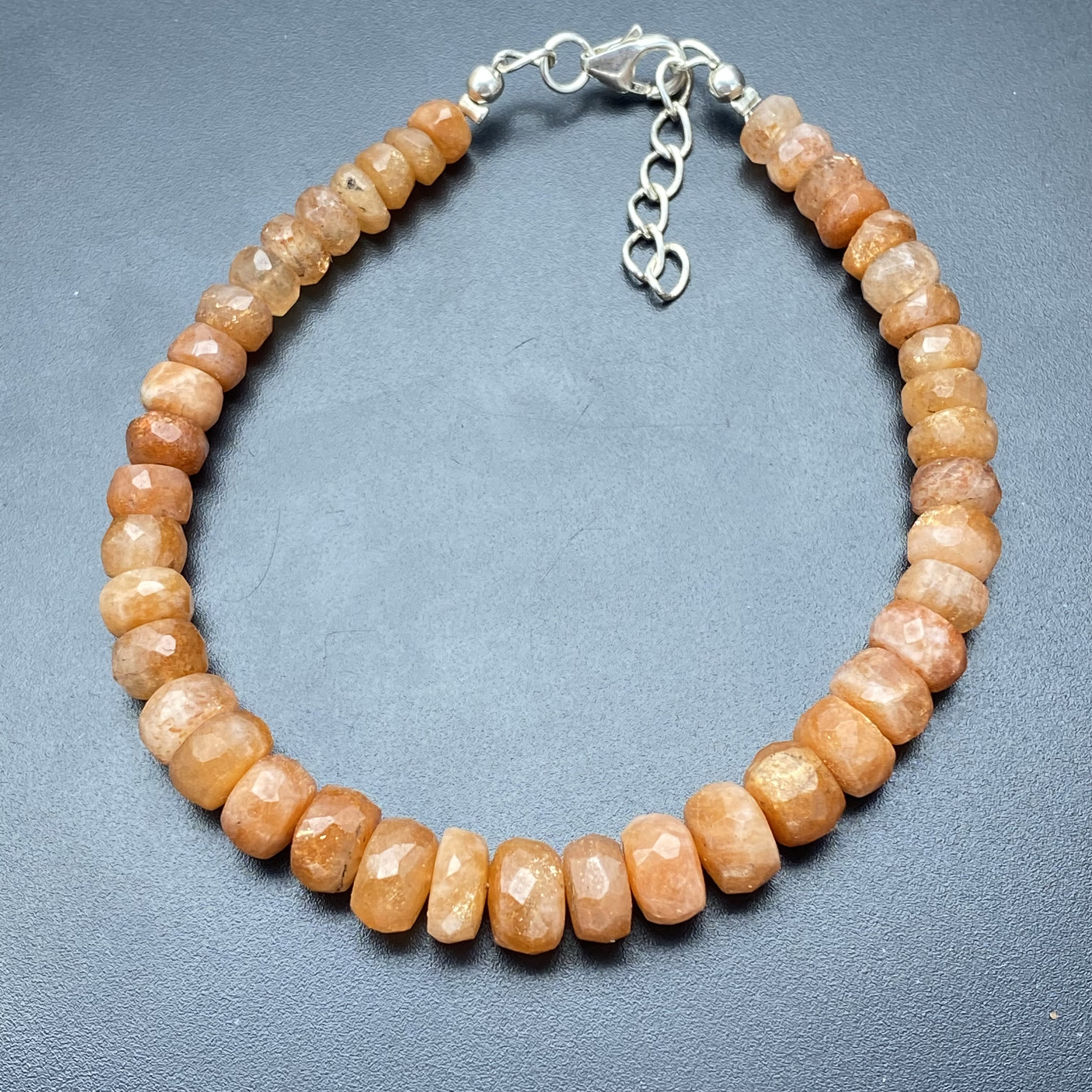 This bracelet is made of high-quality materials. This Indian Sunstone is natural and untreated and the accents and closure are made of solid 925 sterling silver.