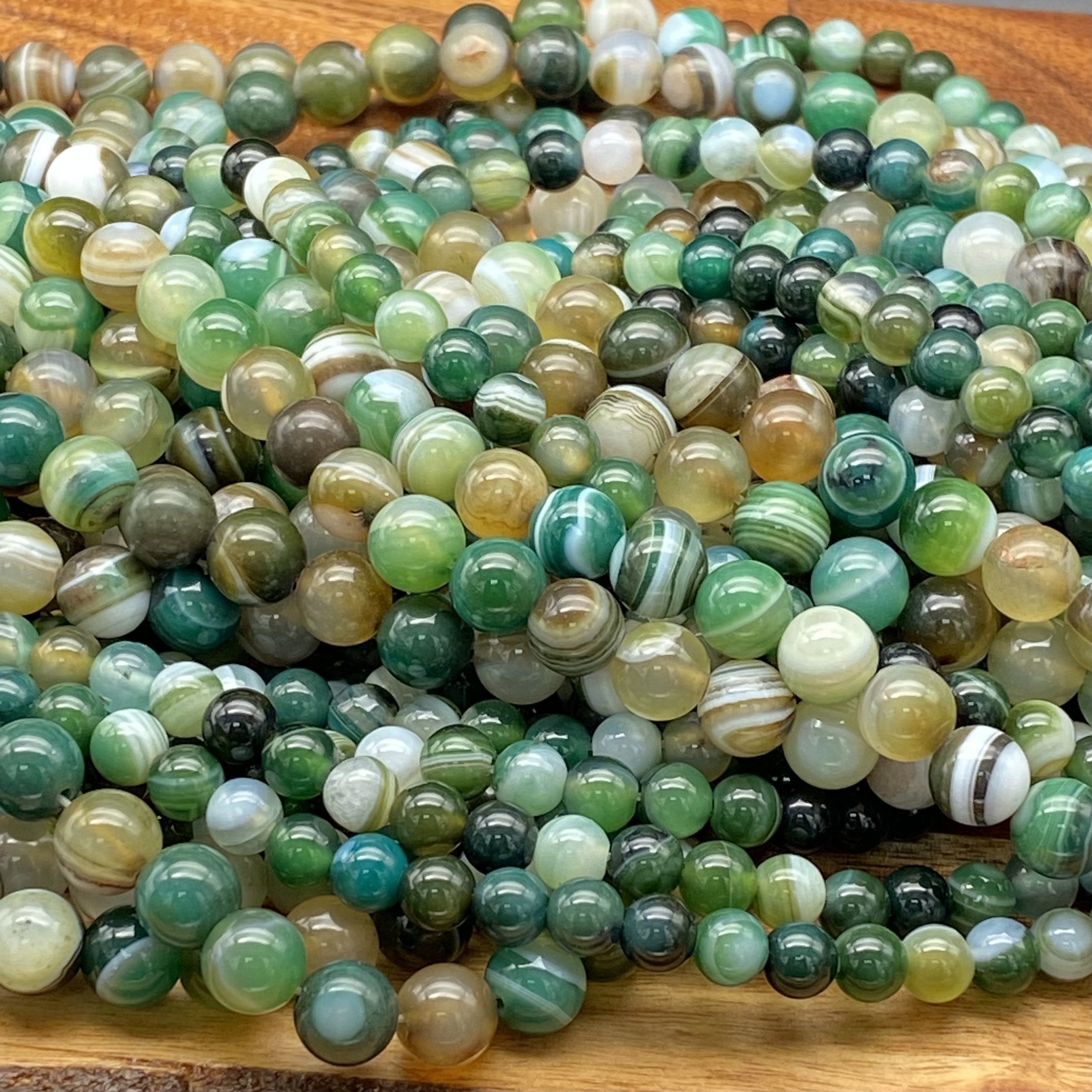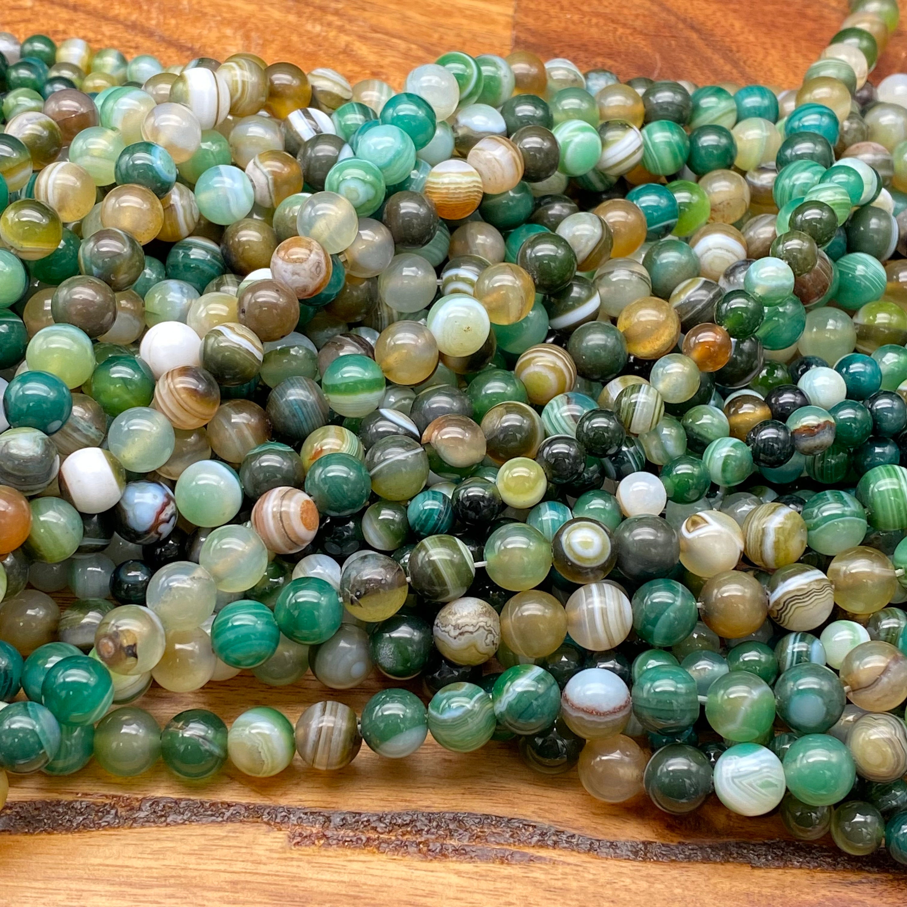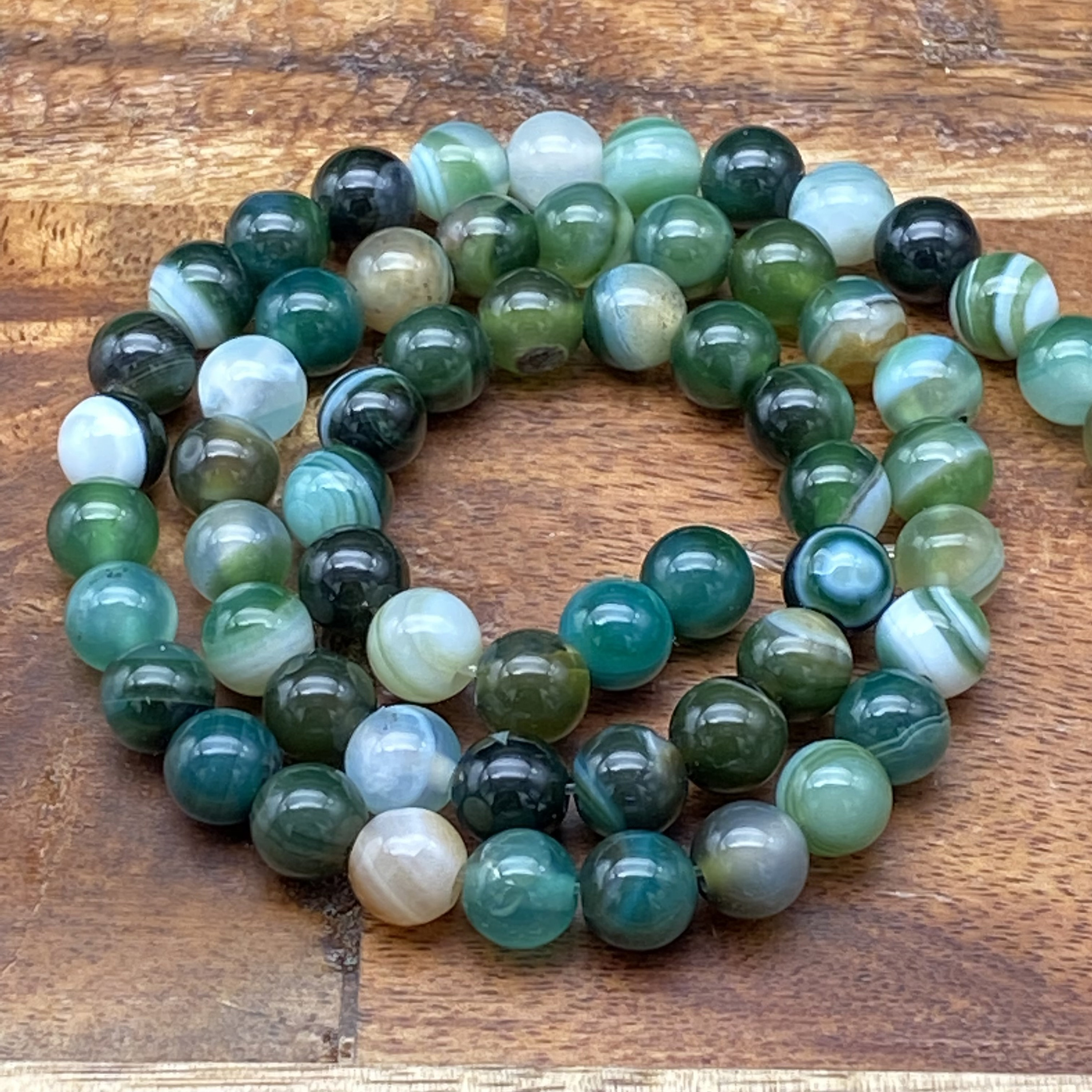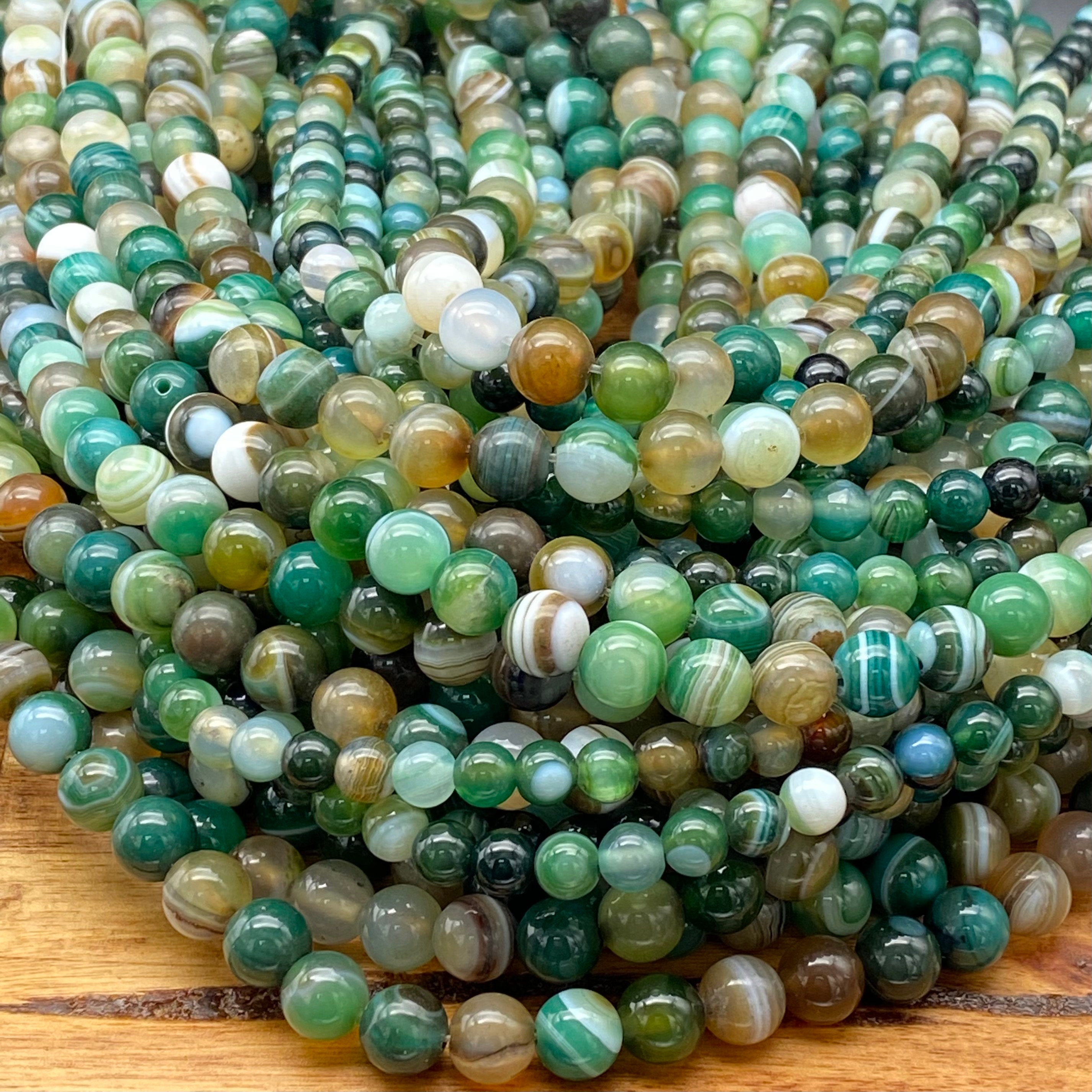 Charming Natural Mixed Colored Green Striped Agate Gemstone Beads for Jewelry/Craft Making, Round: 6mm, 8mm
