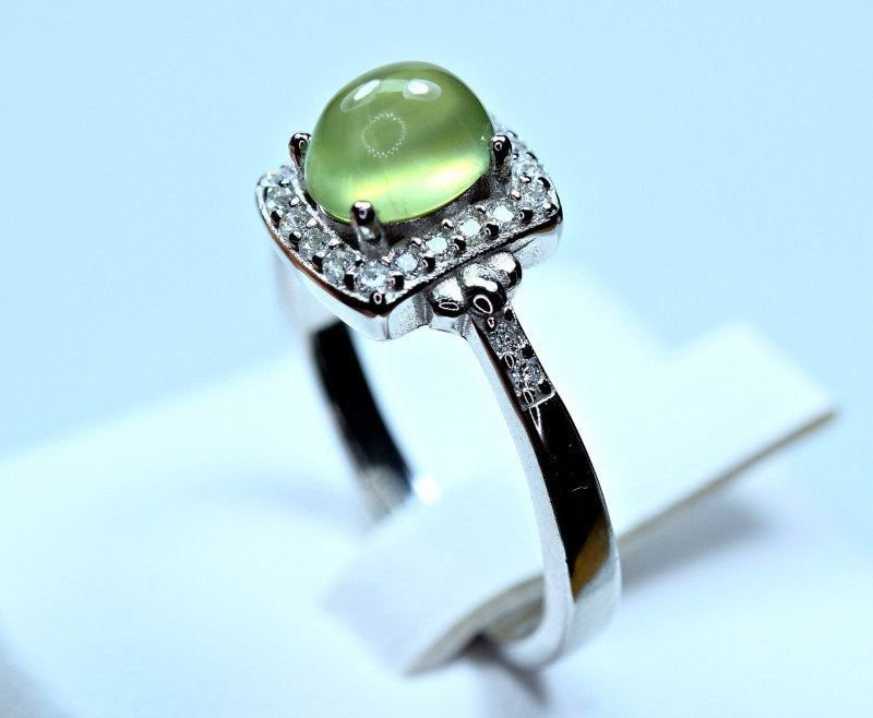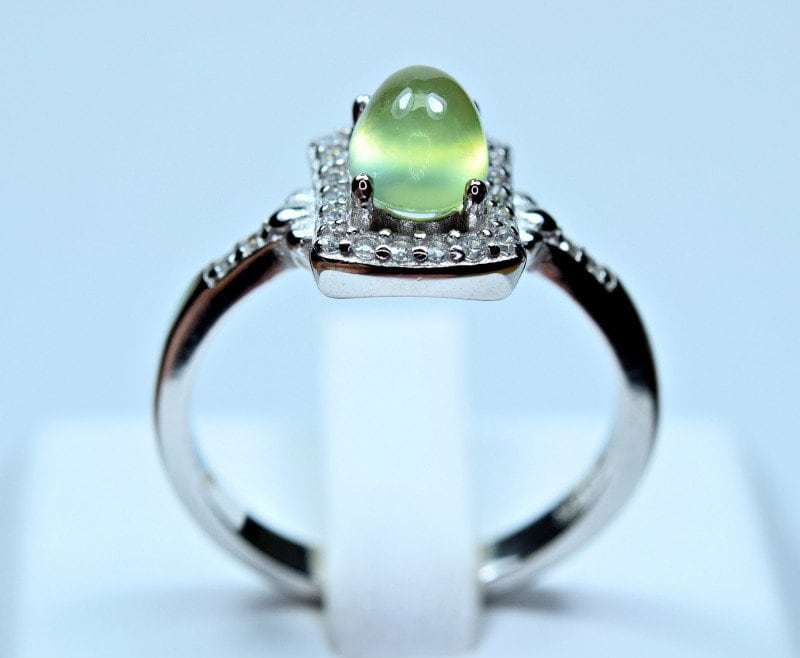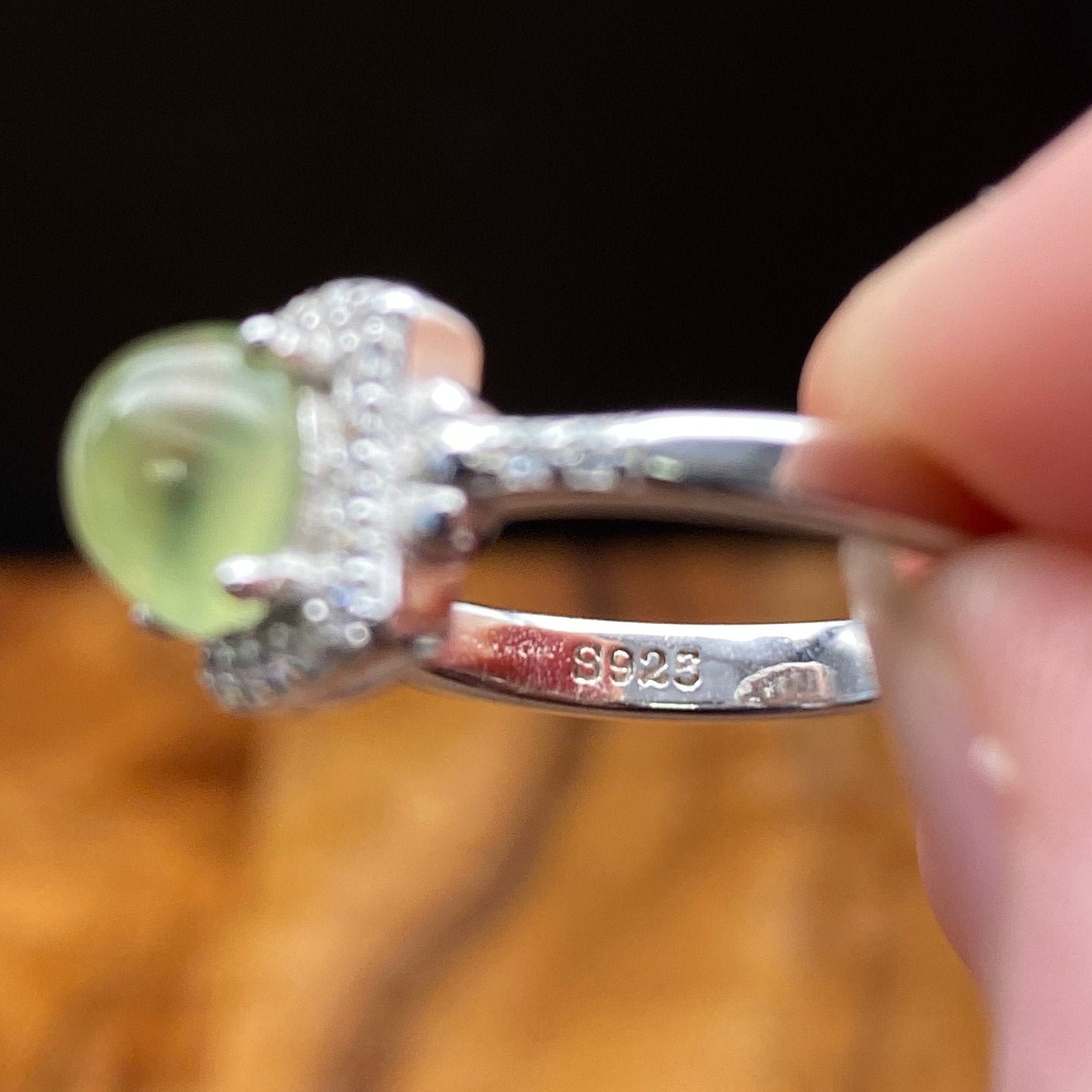 This ring is made of high-quality materials. The Prehnite is natural and untreated and the setting is made of solid 925 sterling silver.
