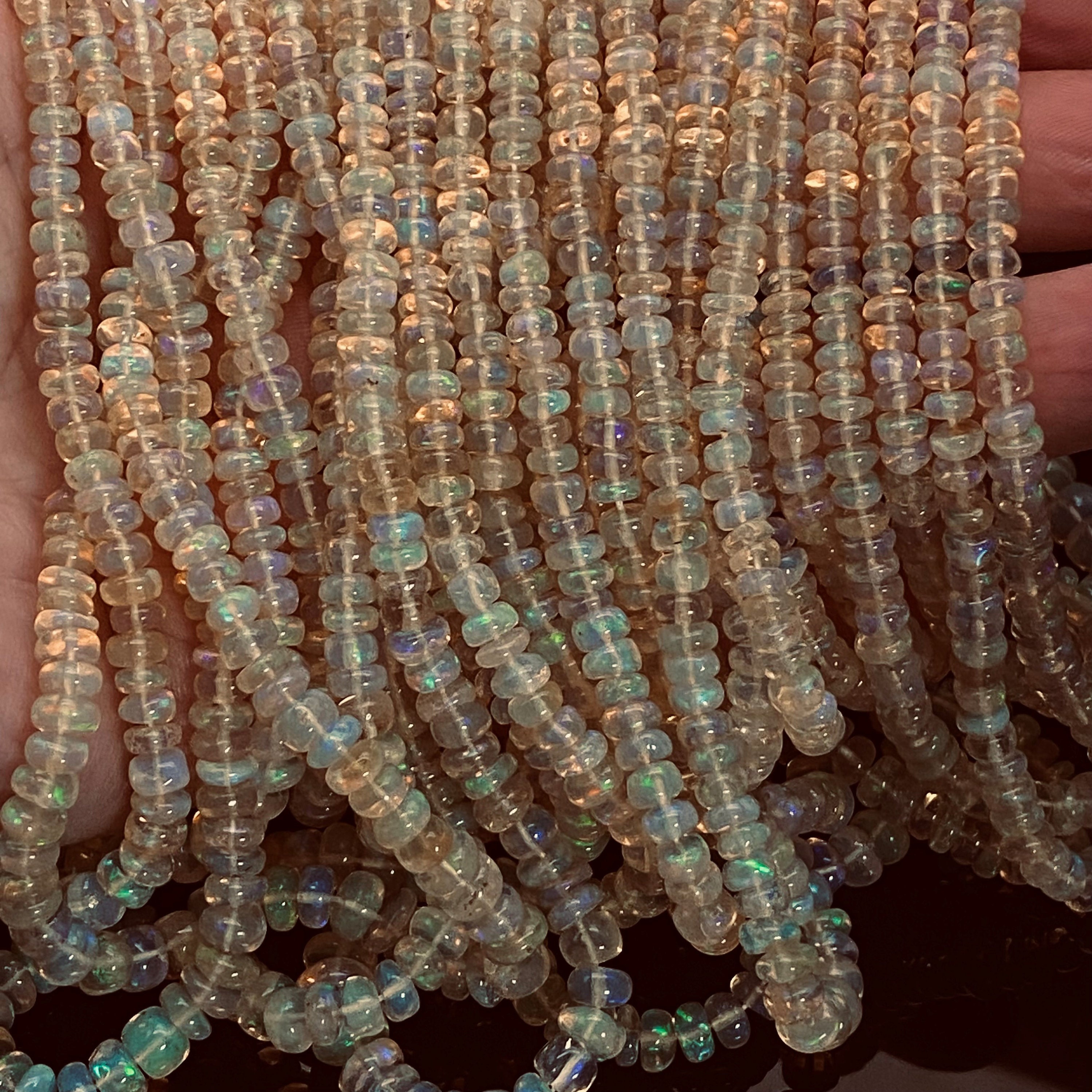 Fantastic Top Quality Graduated Natural Precious Ethiopian Welo Opal Rondelle Loose Beads, ~3-6mm Graduation, 15.5-inch Strand