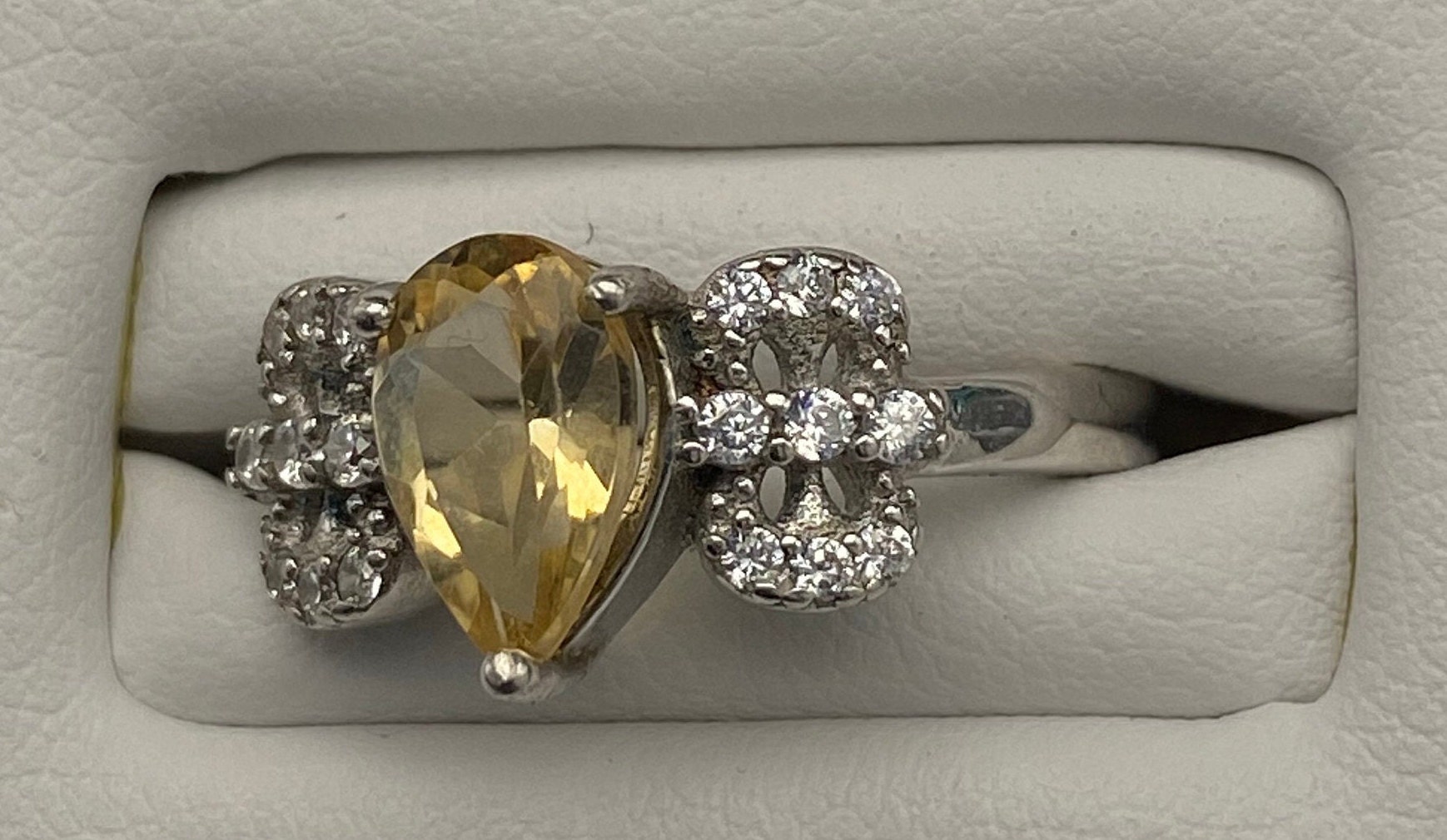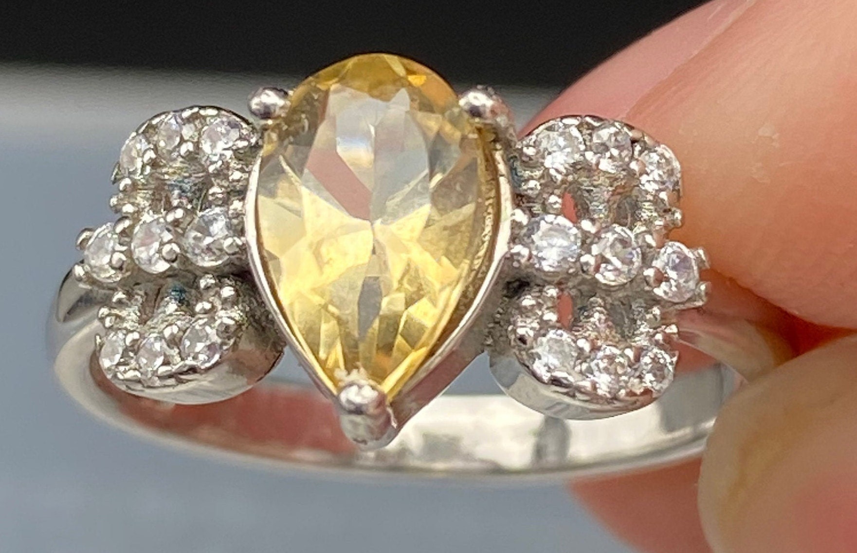 This Citrine and ring are made of high-quality materials. The citrine is natural and untreated and the ring is made of solid 925 sterling silver. The small stones around the main stone are superb cubic zirconia.