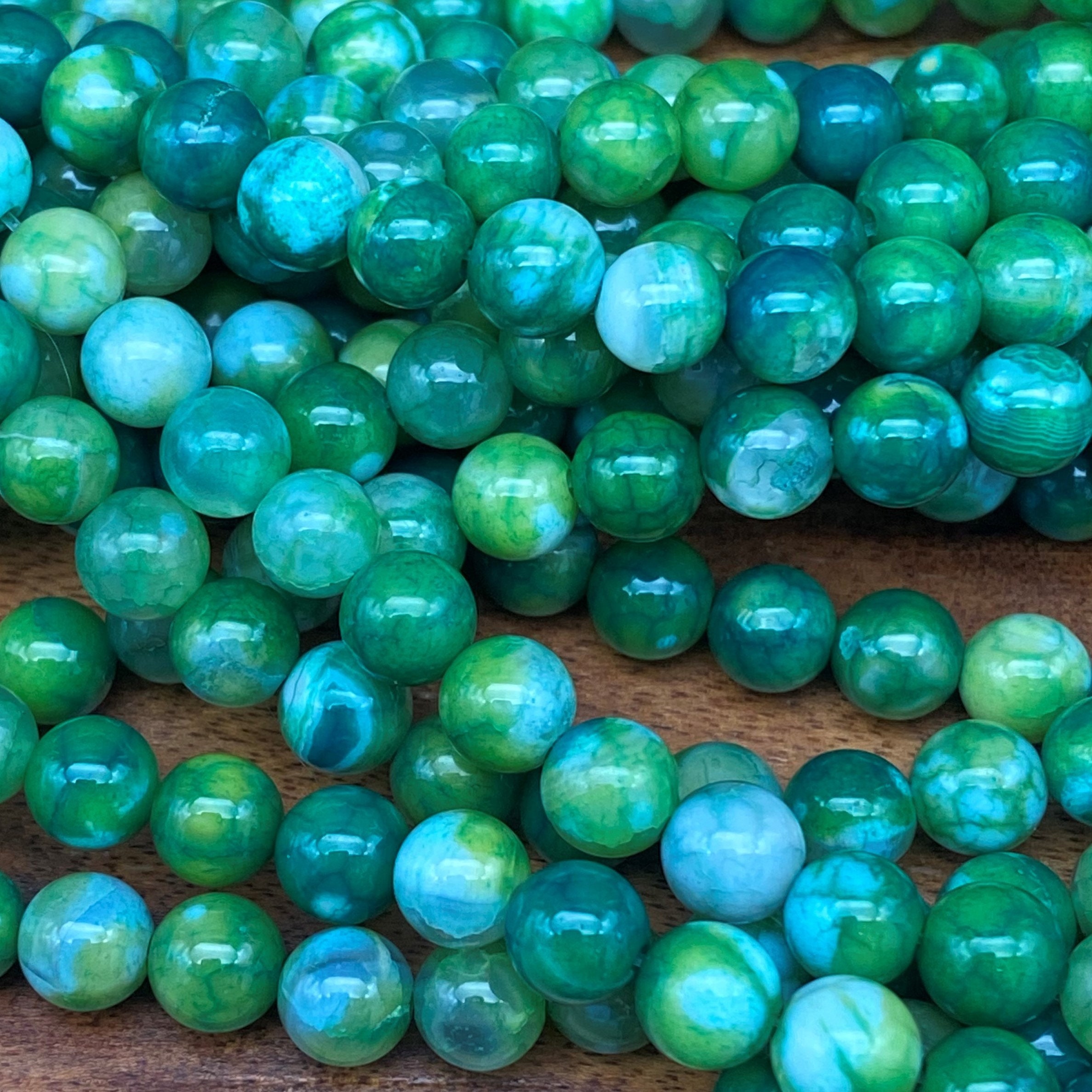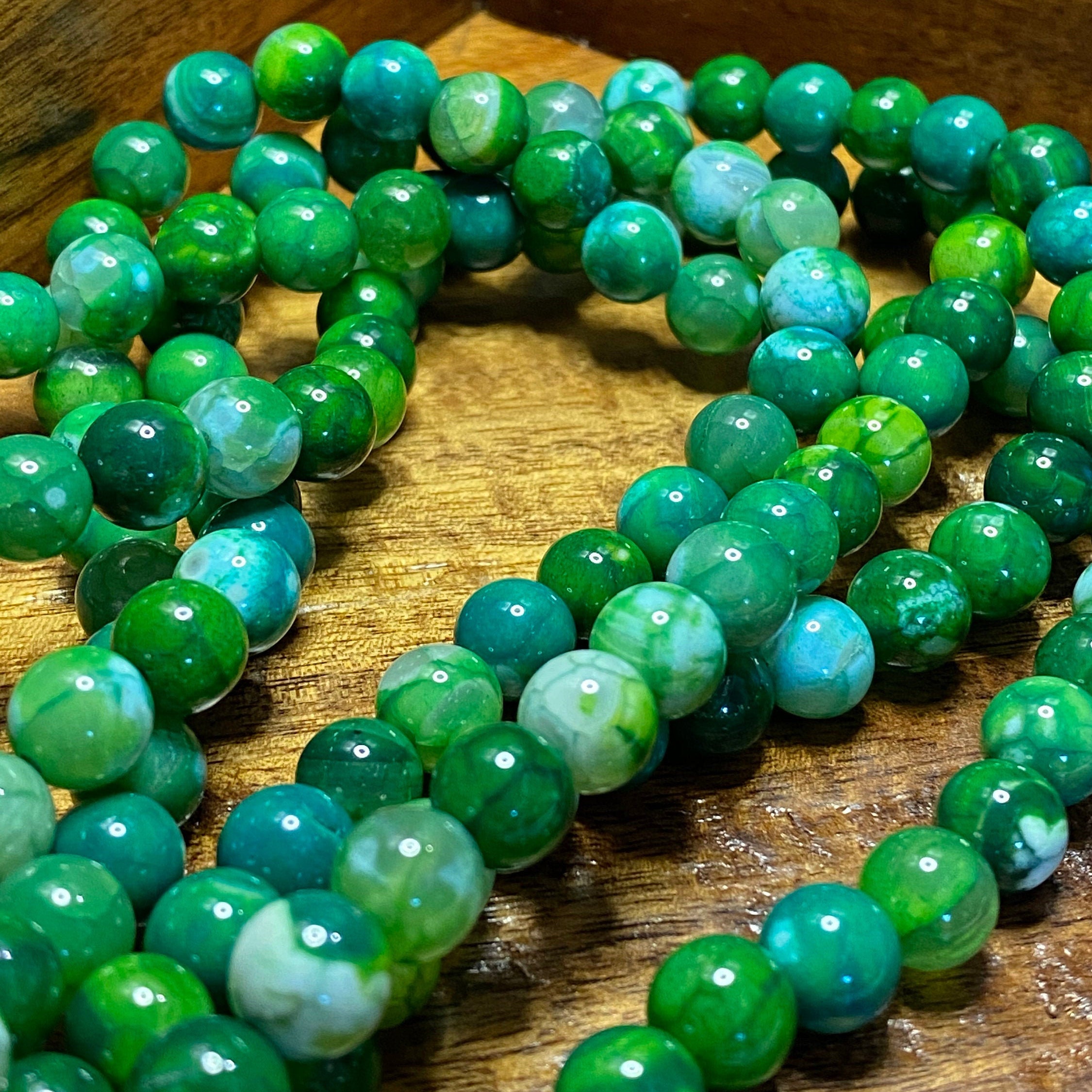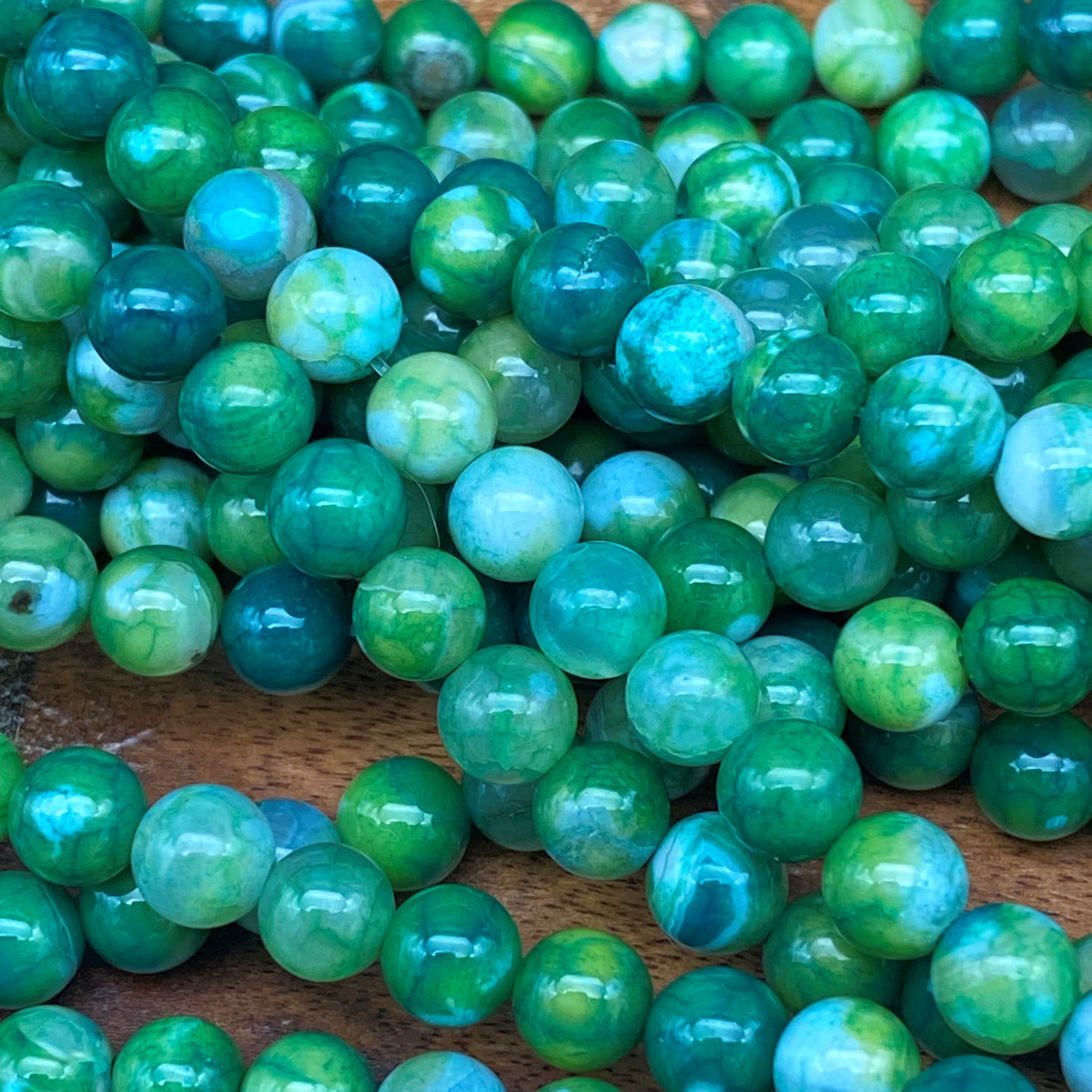 Flashy Apple Green Fire Agate Gemstone for Jewelry/Craft Making, Round: 6mm, 8mm