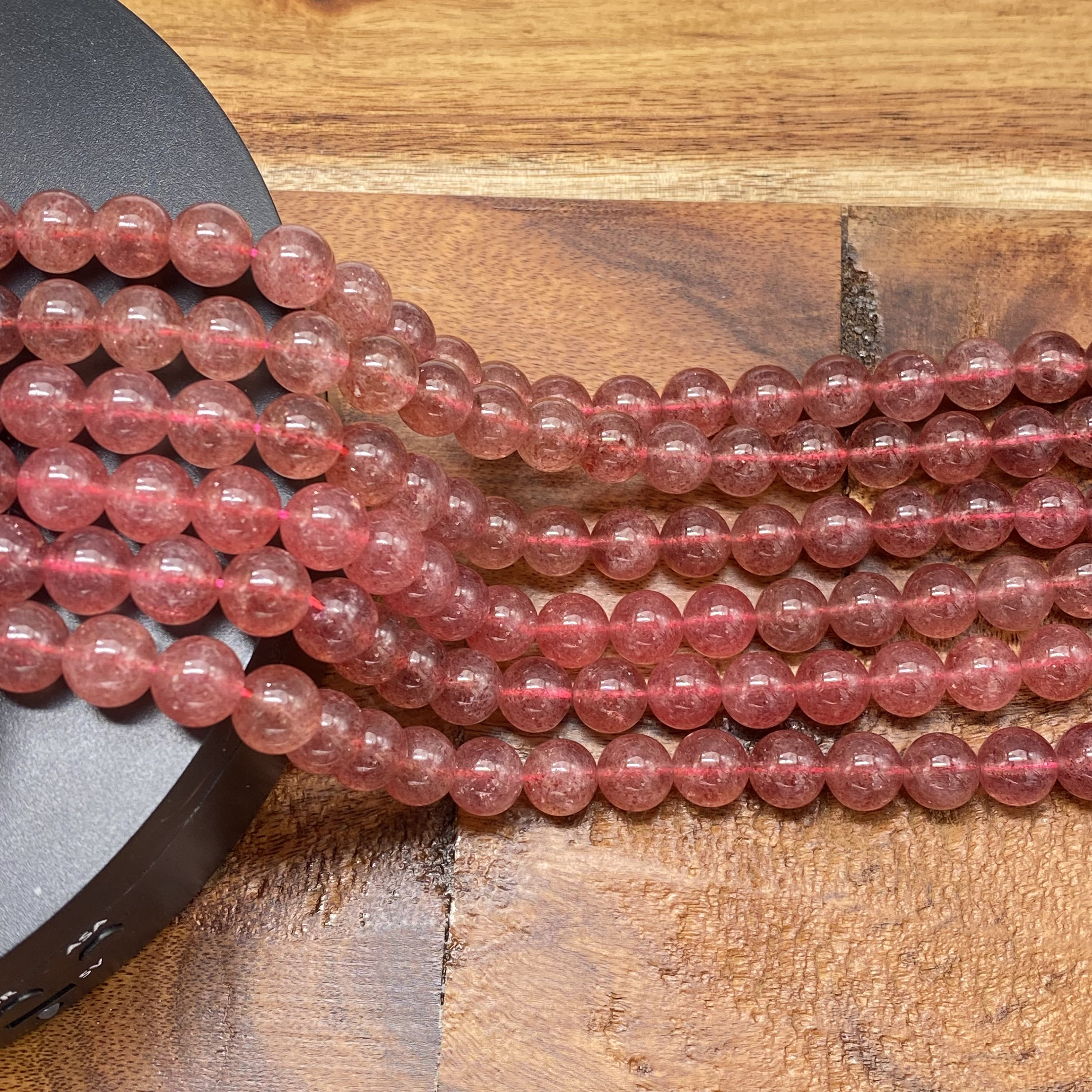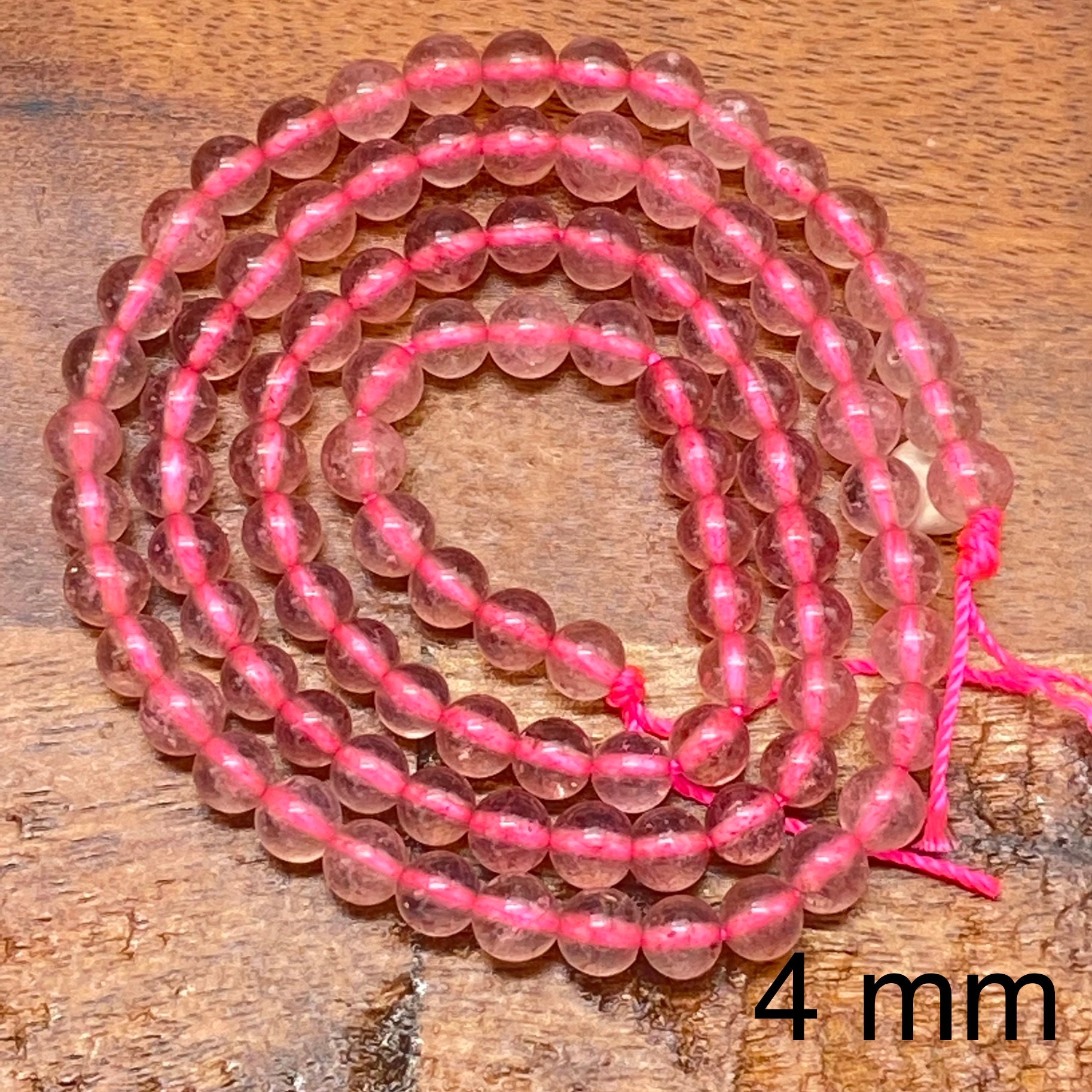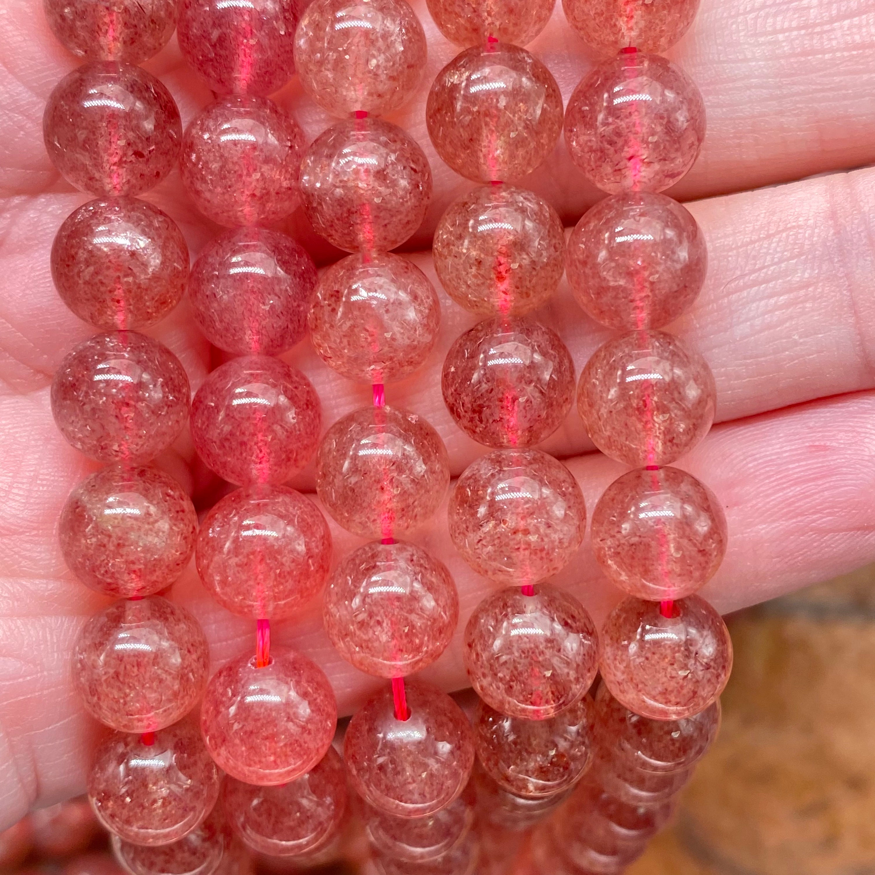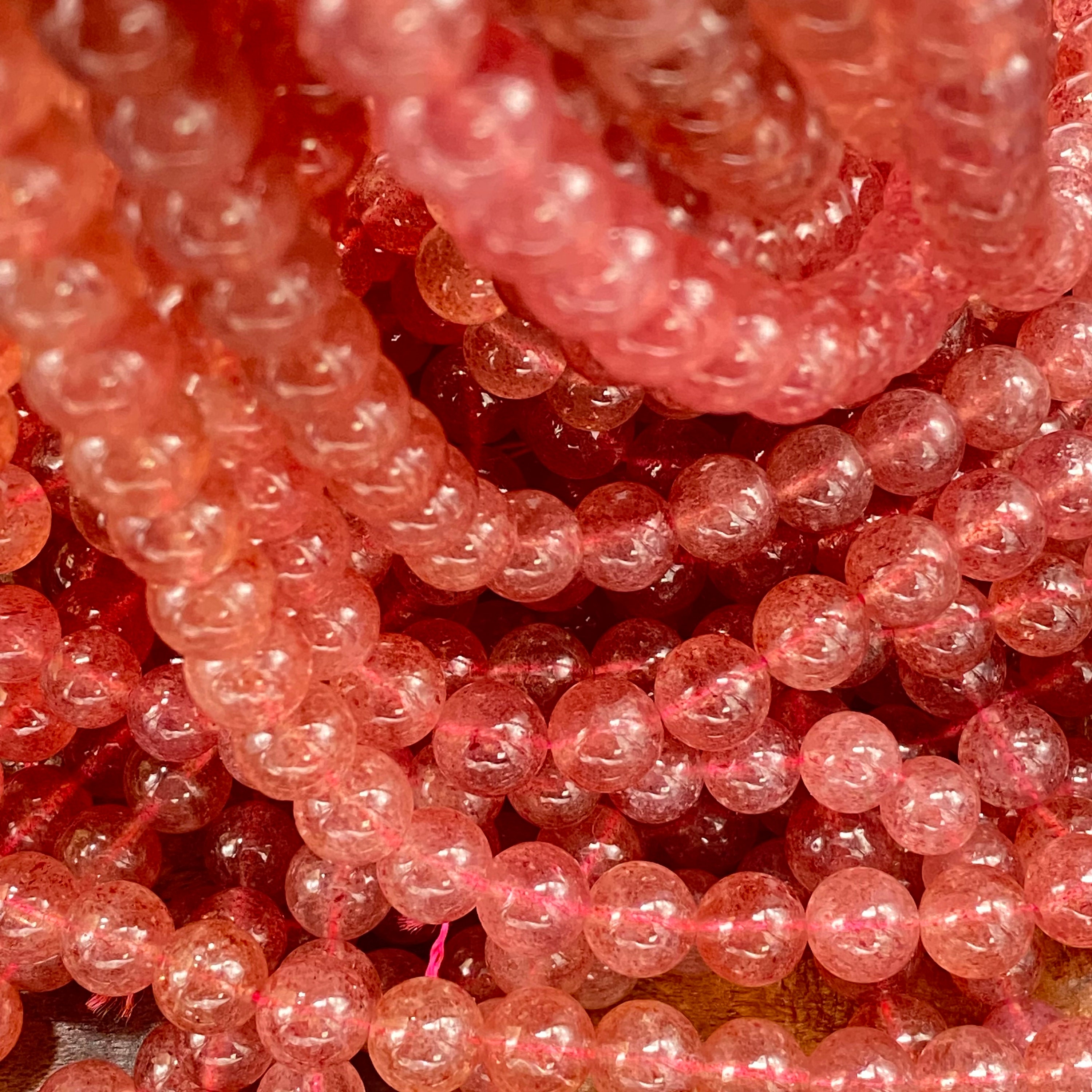 ** 1 Strand = ~ 15 inches **Stone/material: Lepidocrocite/Strawberry Quartz - natural, not dyed, no color enhanced **Bead size: 4mm; hole diameter: ~ 0.8mm (82-88 pieces) **Bead size: 6mm; hole diameter: ~ 1mm (60-66 pieces) **Bead size: 8mm; hole diameter: ~ 1mm (42-48 pieces) **Bead size: 10mm; hole diameter: ~ 1mm (34-40 pieces) **The actual stone may show slight differences to the images in color, pattern, and texture because the natural properties and composition of mined gemstones define the unique beauty of each piece/gem **New photos are taken for each lot of beads received to ensure the photos match the stones you purchase to the best of our abilities. Also check out: https://www.etsy.com/listing/865262683/beautifully-perfect-natural-garnet?ref=shop_home_active_16&crt=1 https://www.etsy.com/listing/937938766/ravishing-red-fire-agate-beads-for?ref=shop_home_active_15&crt=1 https://www.etsy.com/listing/936450951/impressive-natural-plum-blossom-jasper?ref=shop_home_active_81 https://www.etsy.com/listing/819333317/cheerful-natural-purple-aventurine?ref=shop_home_active_96