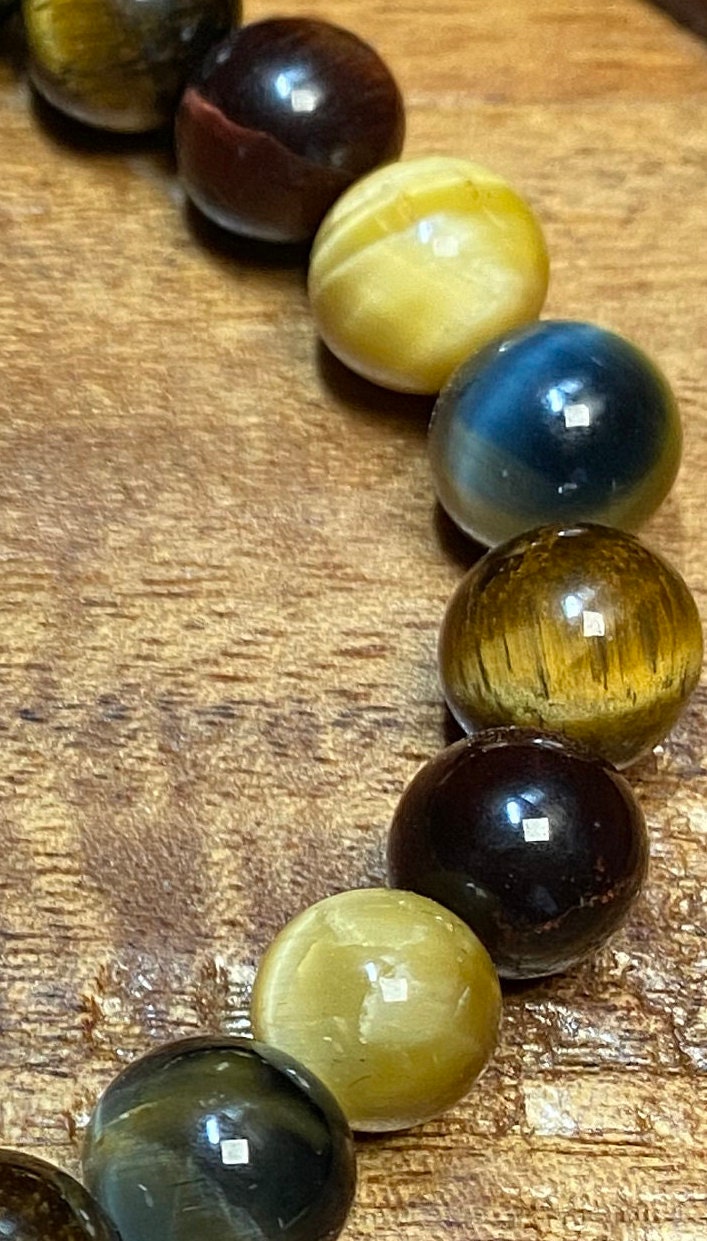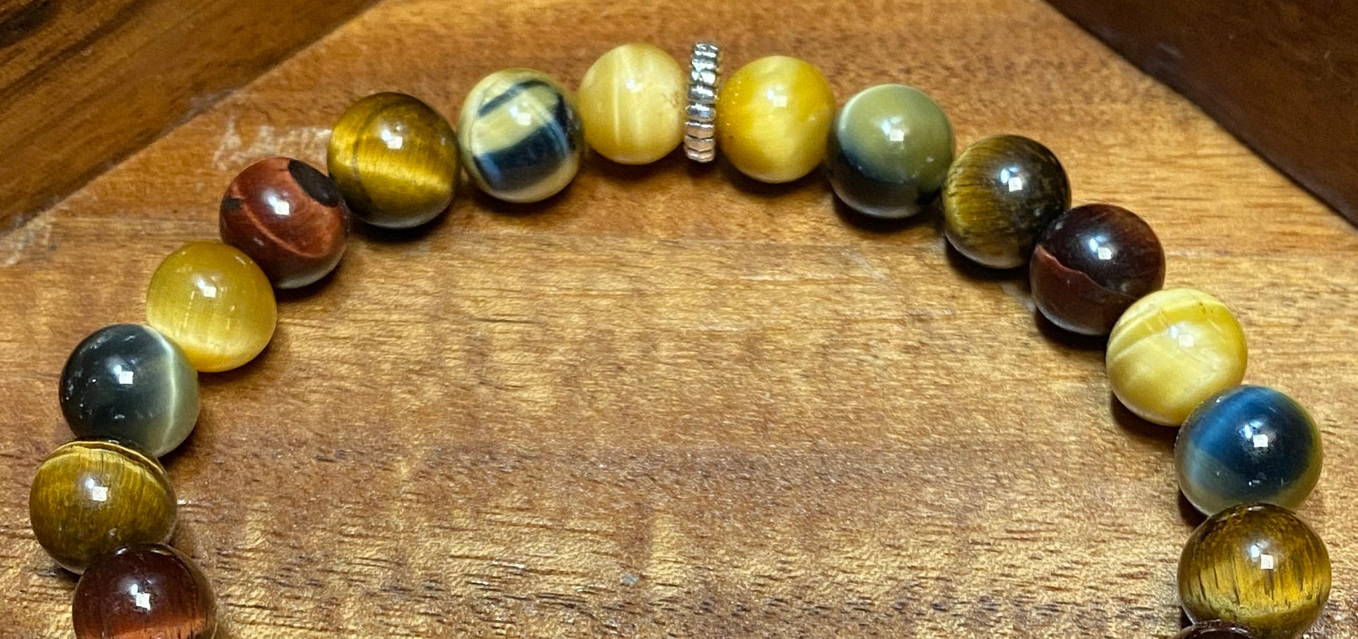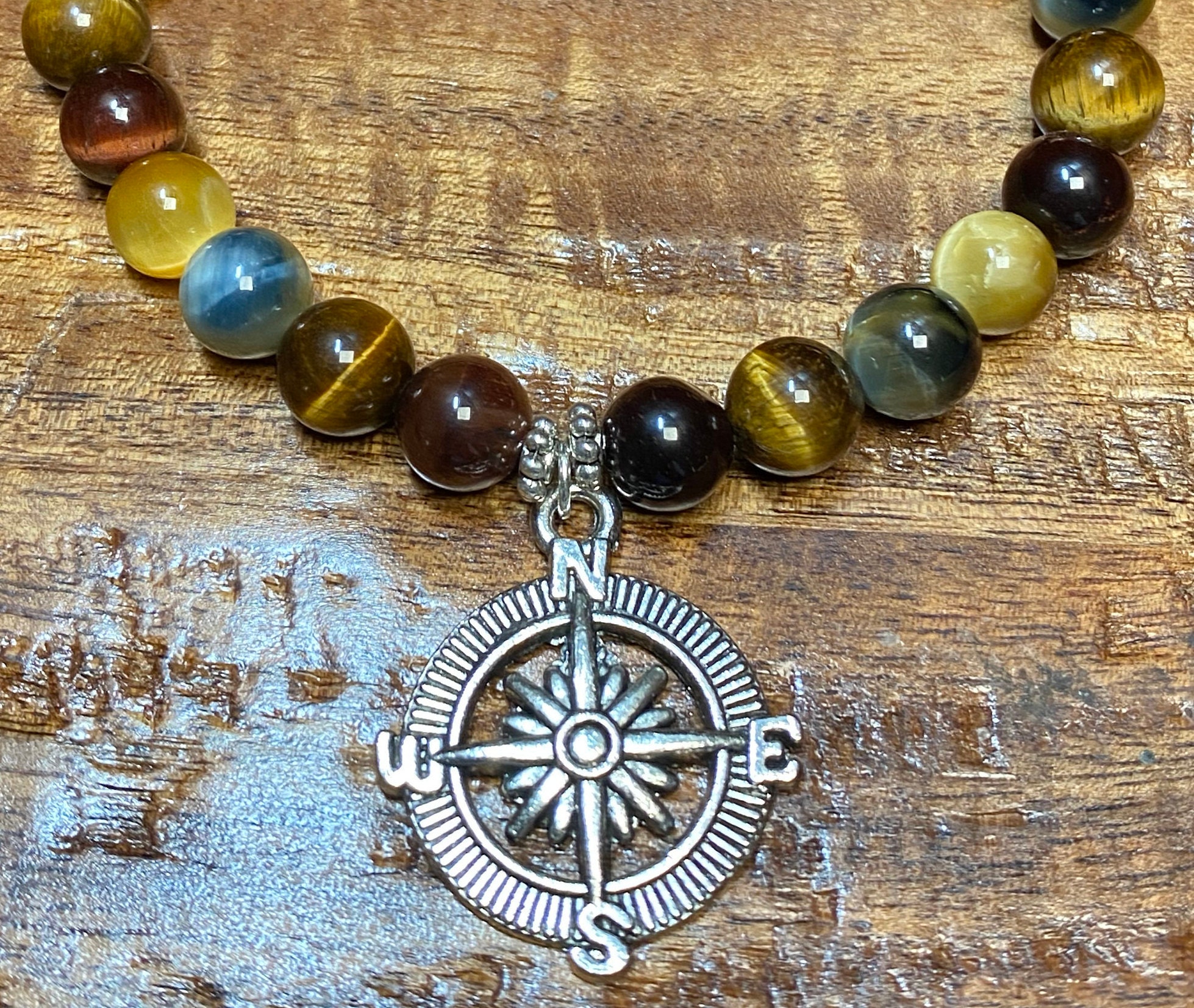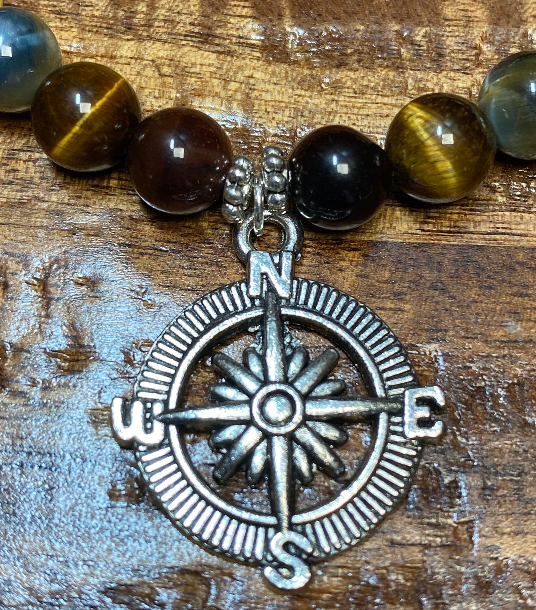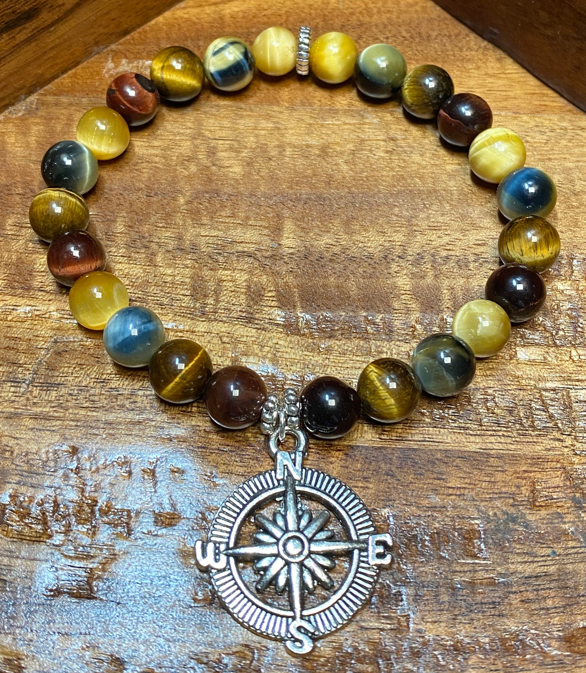 This Golden Yellow, Golden Blue, Red & Brown Tiger Eye Bracelet was specifically designed to help balance the body both emotionally and physically. I choose to use 8mm beads for the perfect match between comfort and beauty. This bracelet is also accentuated with a nautical themed compass charm that can either symbolize one�??s love of the sea of can symbolize one�??s goals of �??staying on course�?� within their life. This charm also serves to enhance the the beauty of this bracelet.