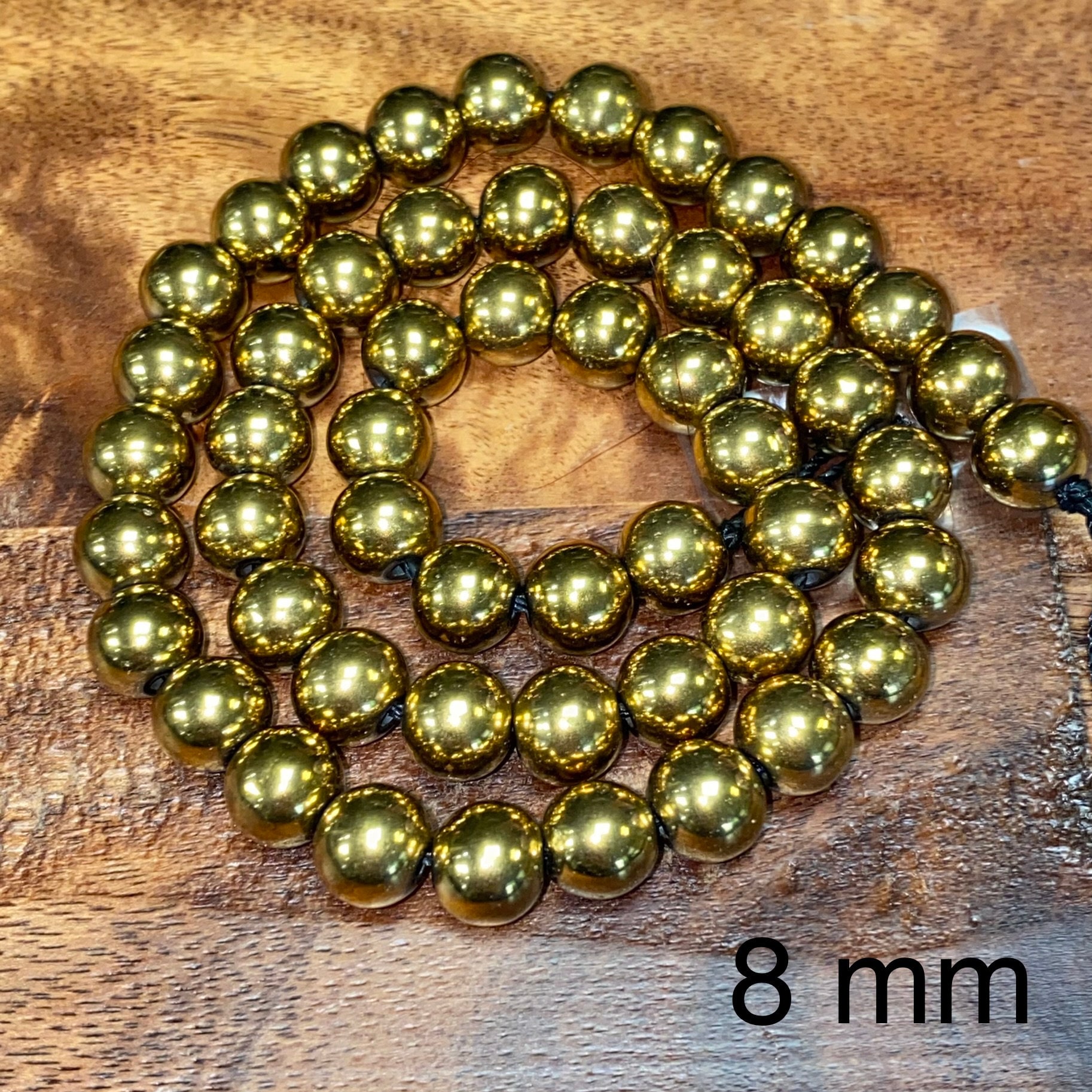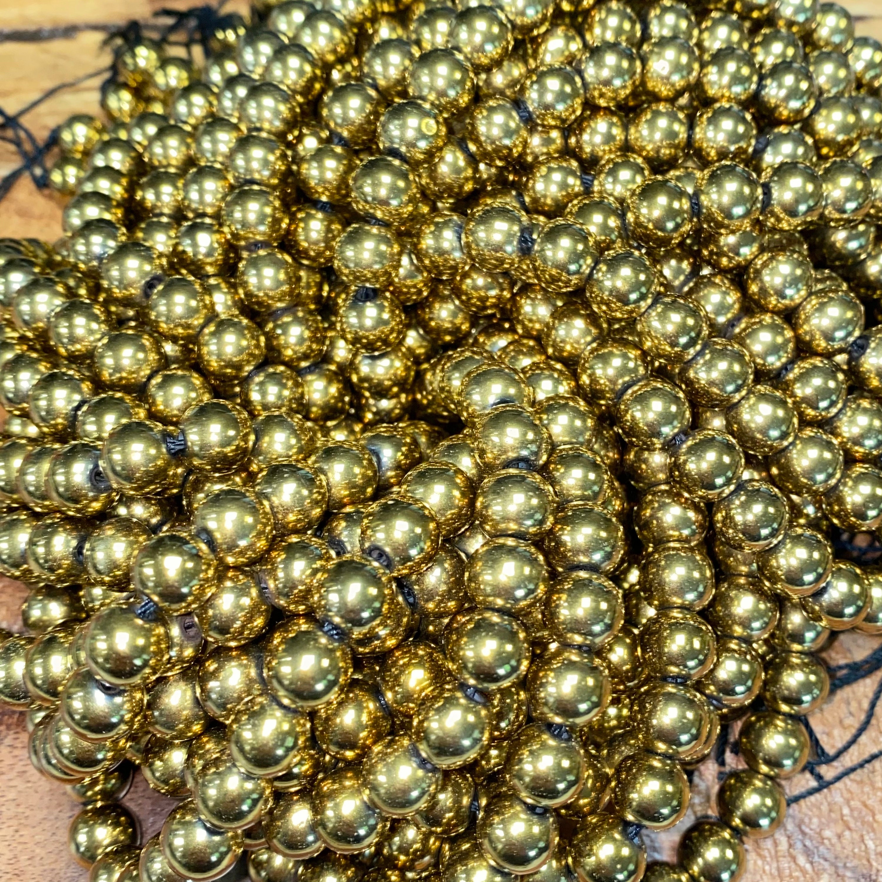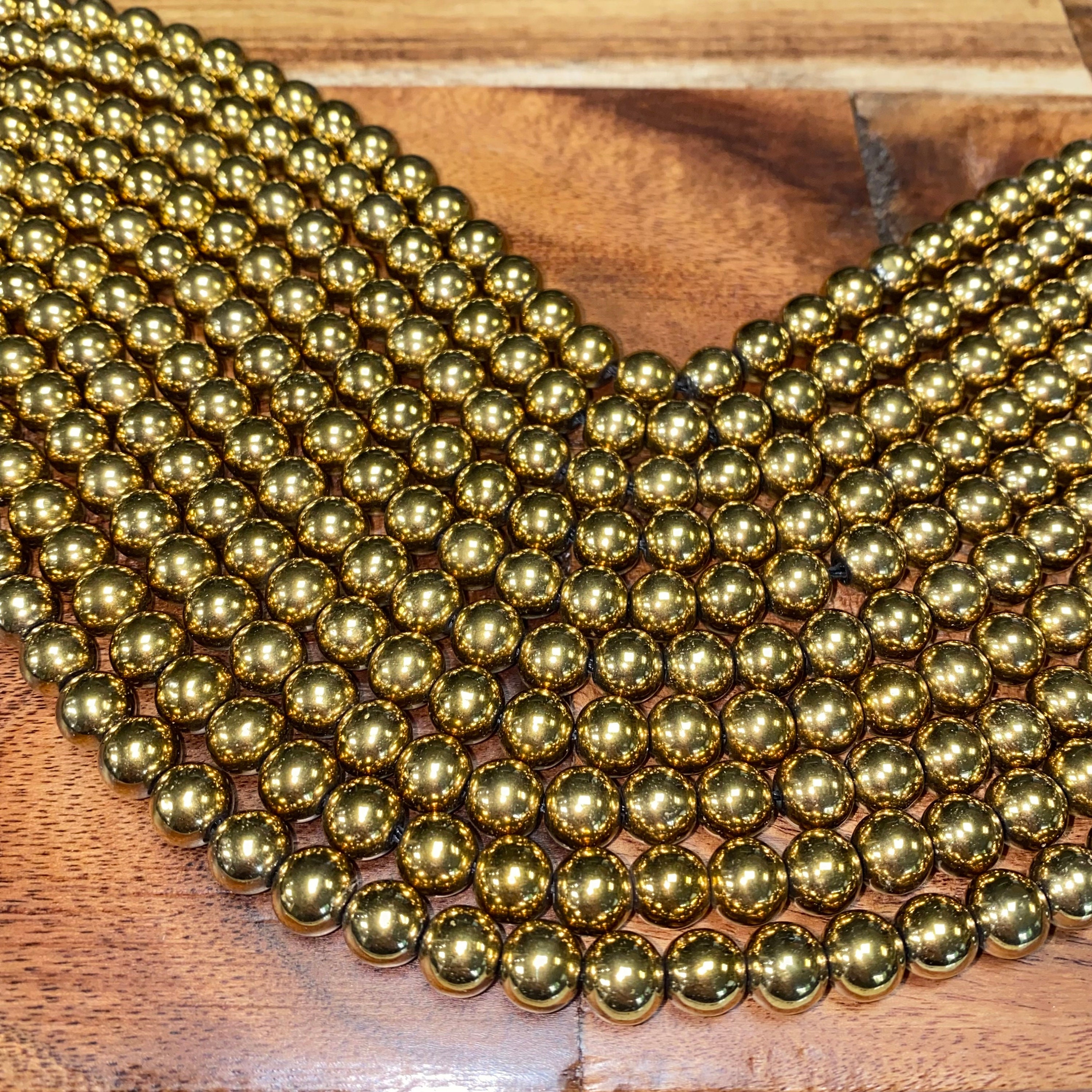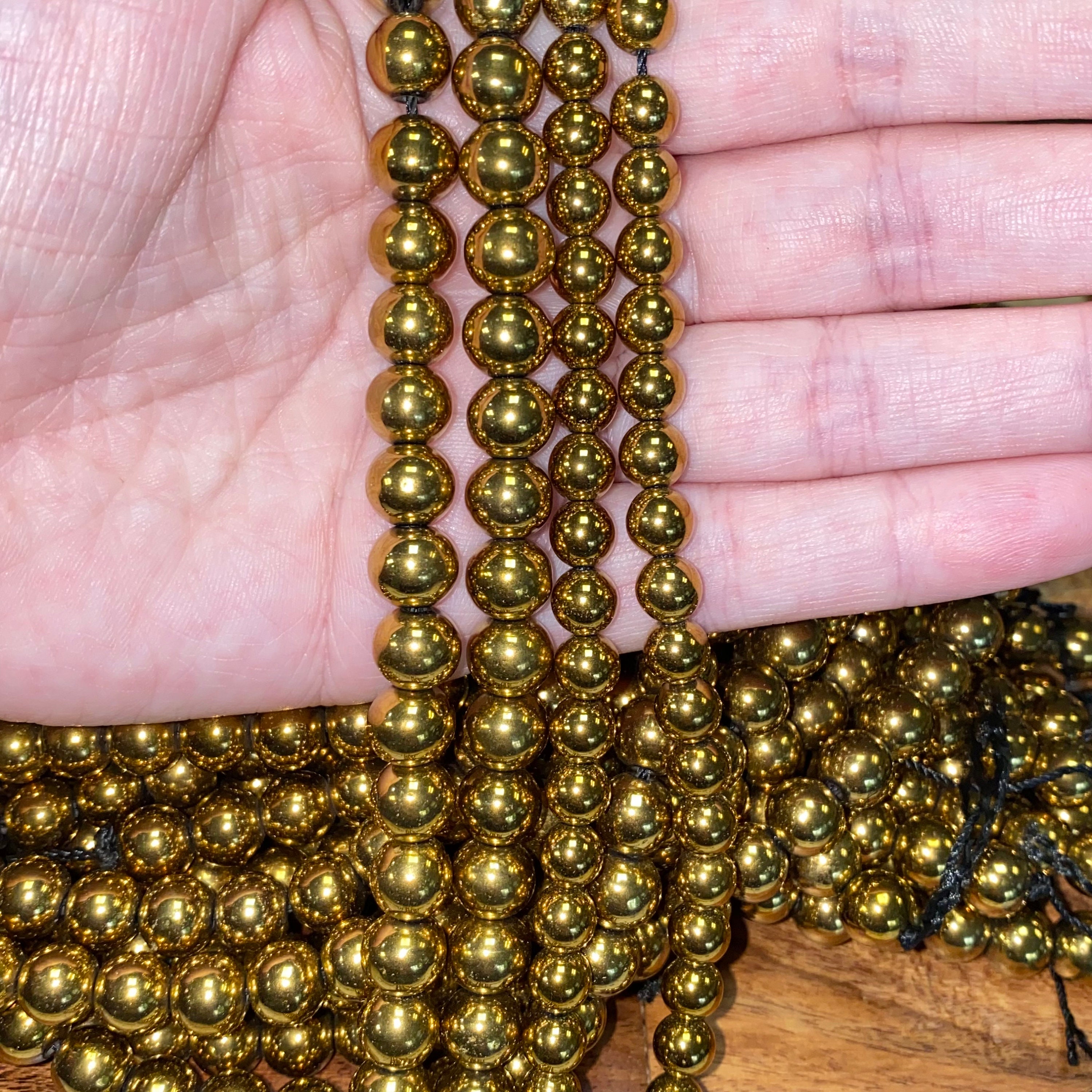 Heavenly Natural Gold Tone Hematite Beads for Jewelry/Craft Making, Round: 6mm, 8mm
