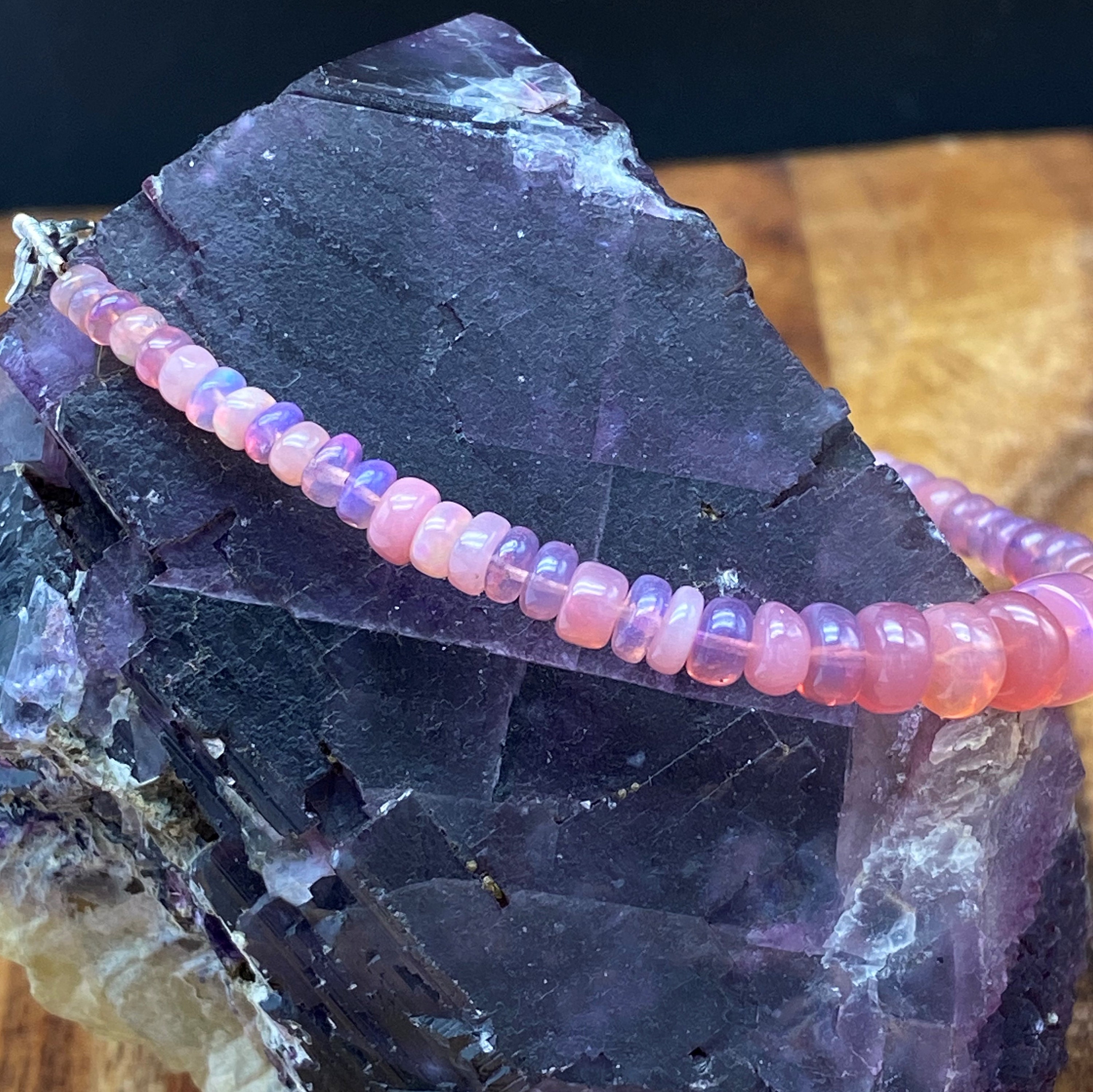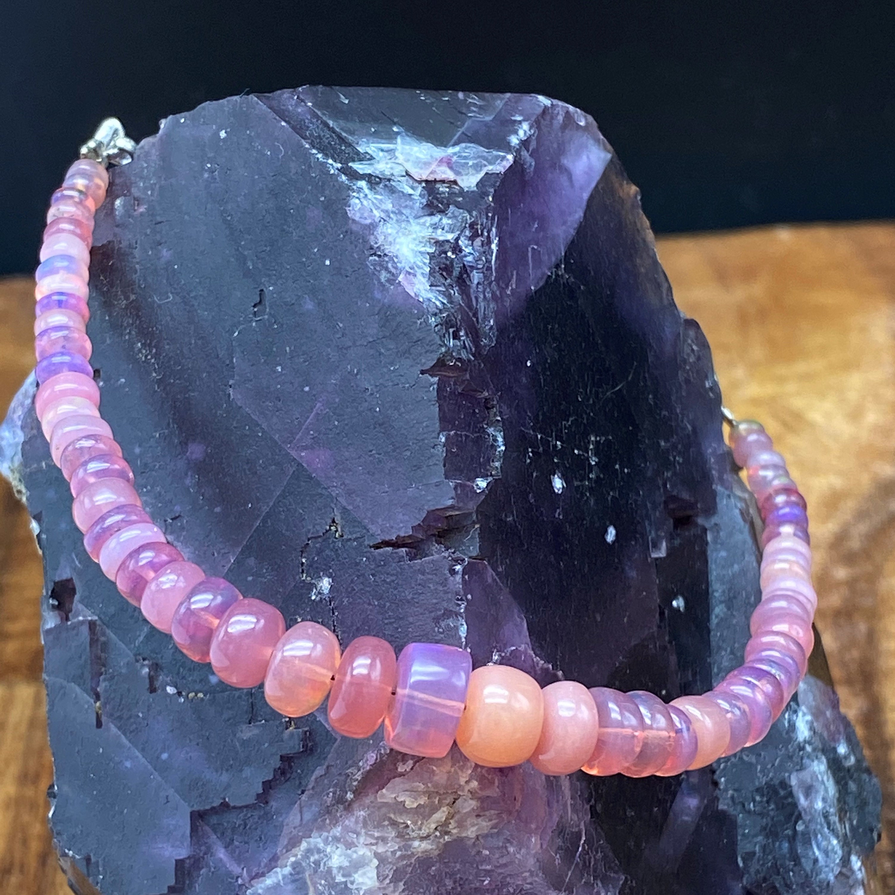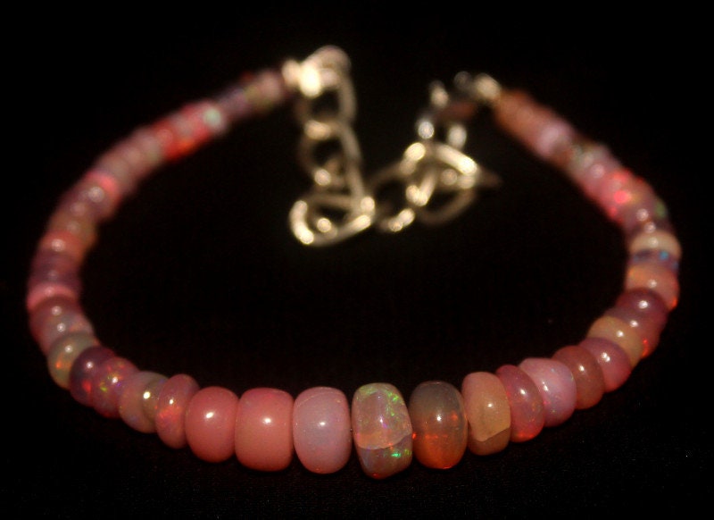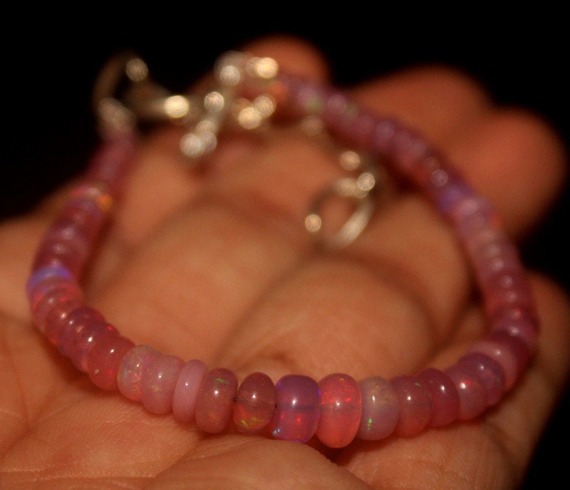 This bracelet is made of high-quality materials. The Ethiopian Welo Opals are natural but are color enhanced to achieve the beautiful soft pink color. The accents and closure are made of solid 925 sterling silver.