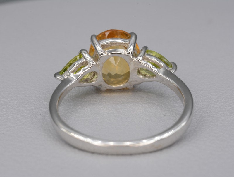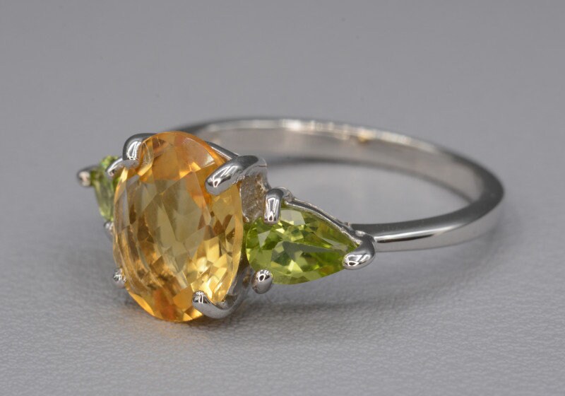 This ring is made of high-quality materials. The Citrine and Peridot are natural and untreated while the setting is made of solid 925 sterling silver.