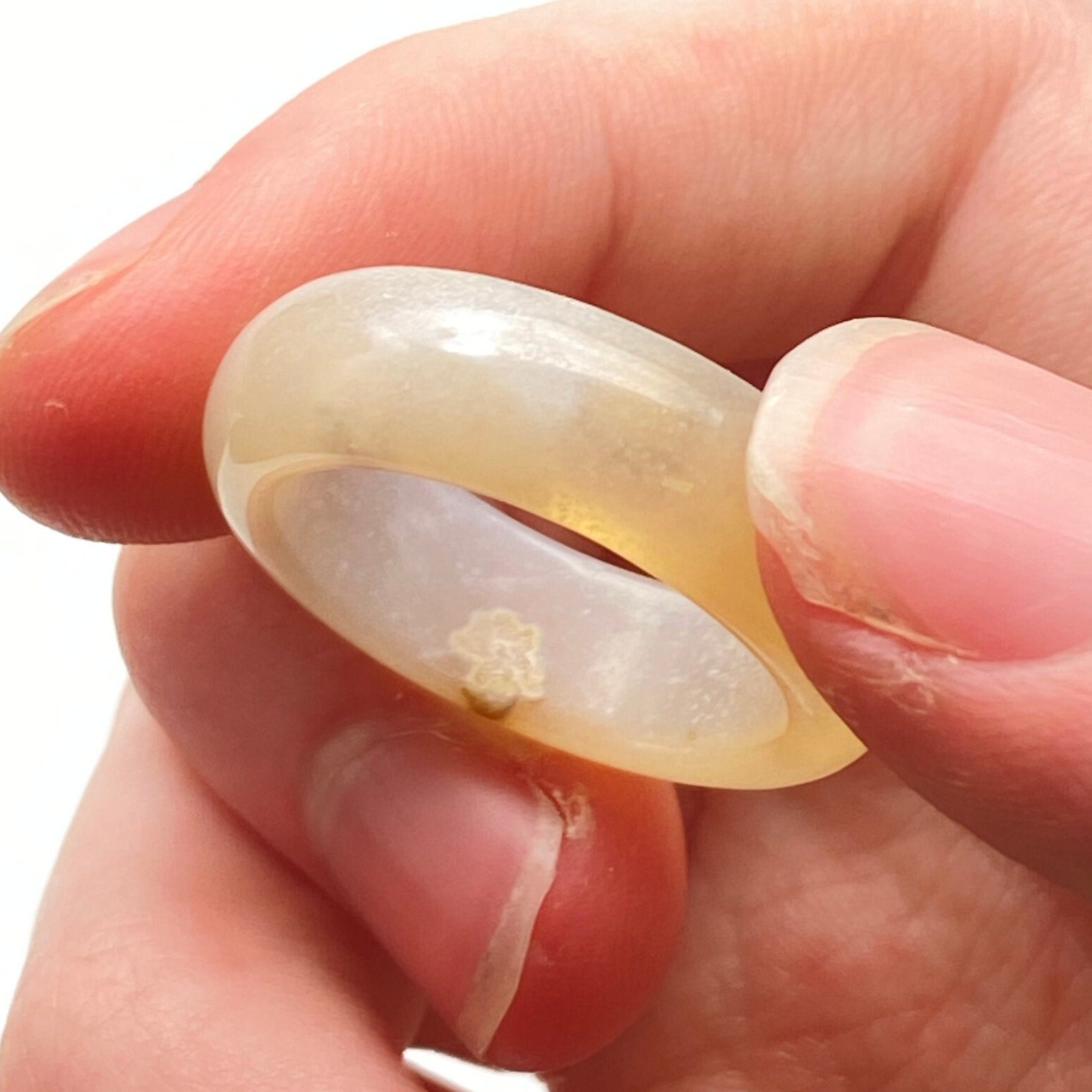 *This ring is made from natural stone which has been cut into a ring shape. This makes the rings very fragile. Think of it as if it was glass. Any small bump or knock can crack the stone and break it. This ring is not for all day wear, especially if working with your hands. No refund or replacements for broken ring. Please do not buy the ring if you are unhappy with the fragility of the ring.*