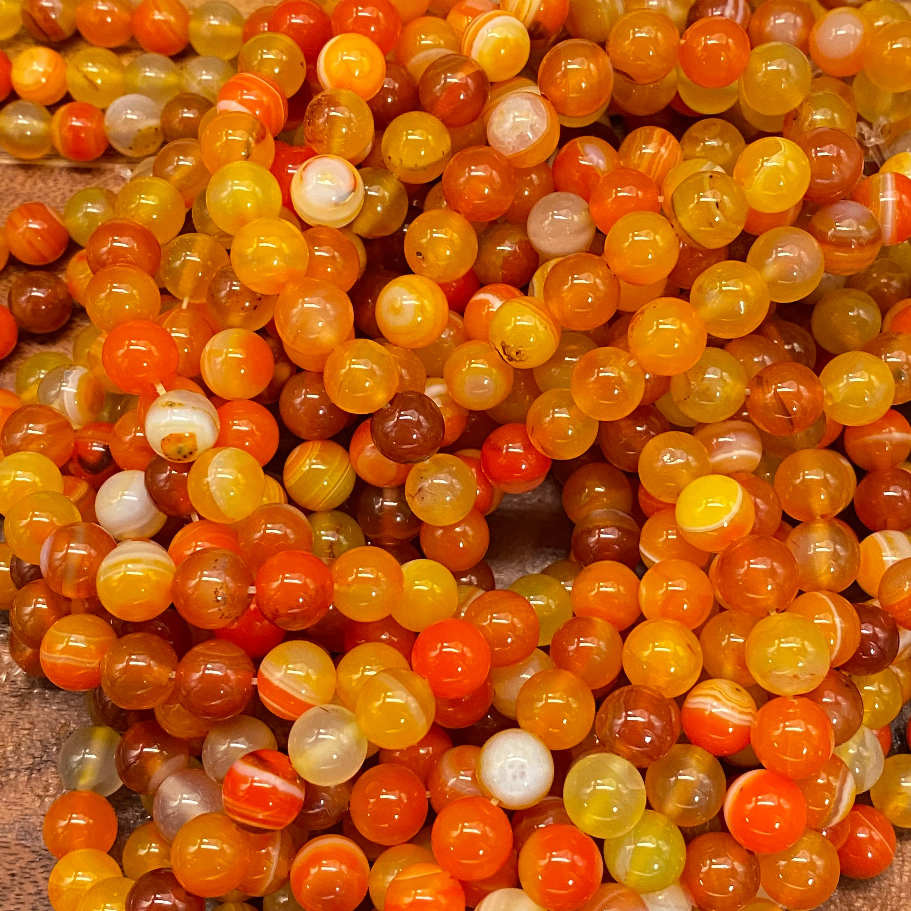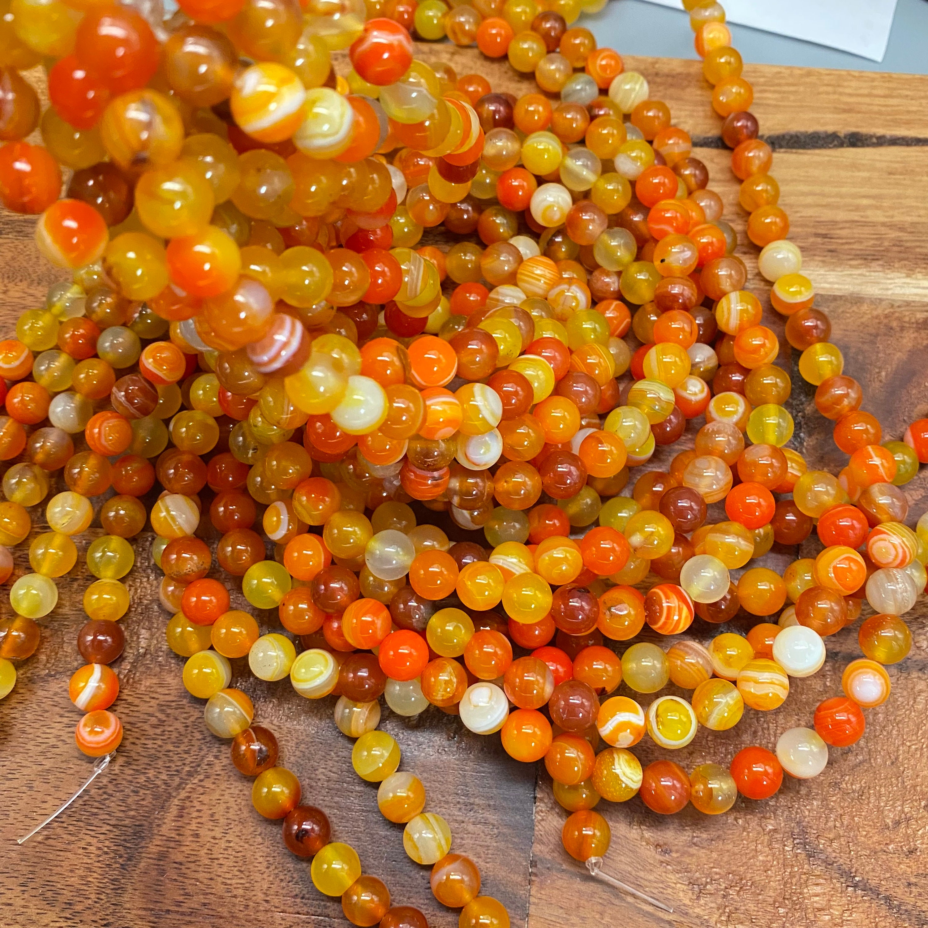 Joyful Orange Striped 2 for Jewelry/Craft Making, Round, 4mm, 6mm, 8mm, 10mm