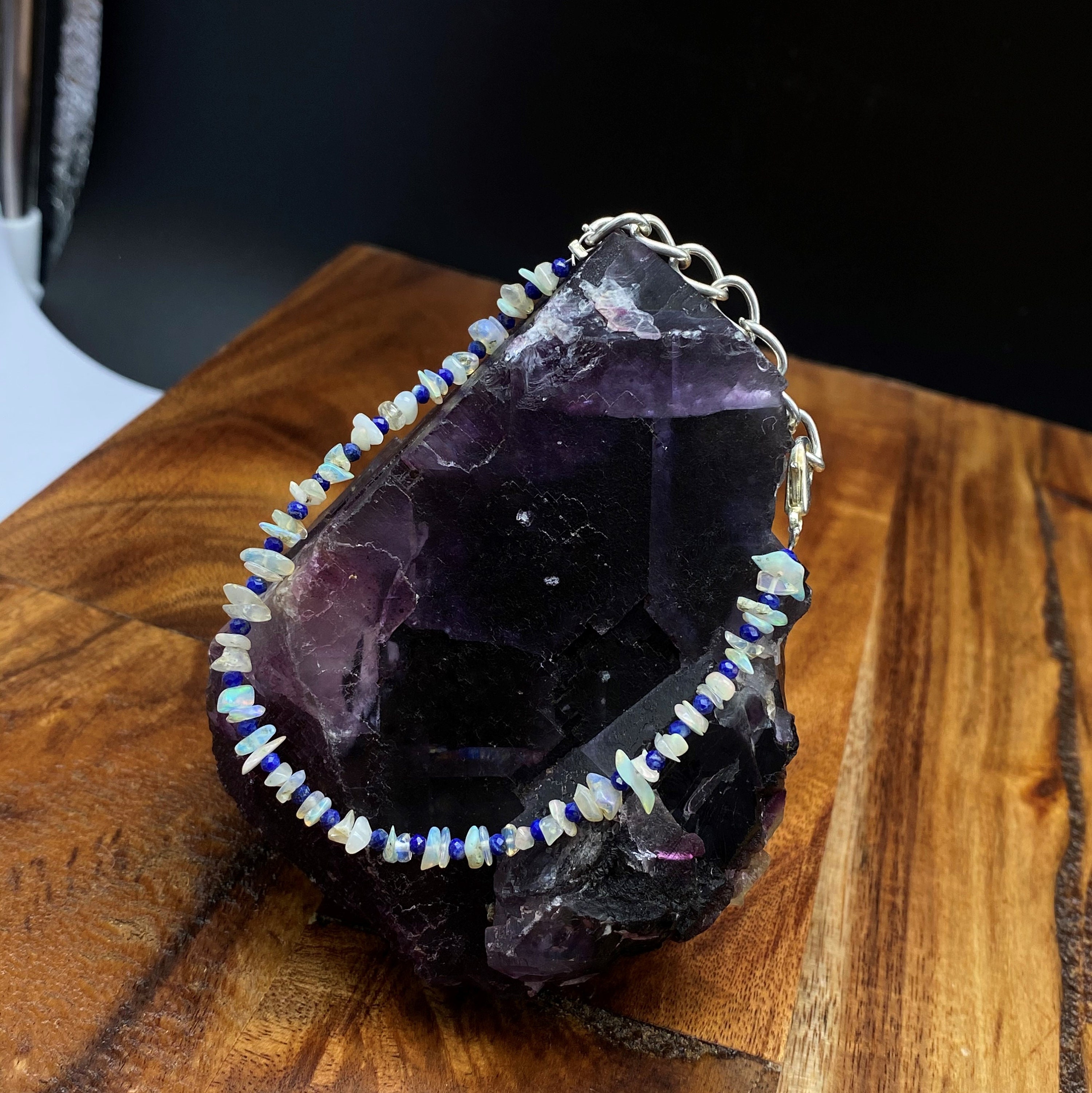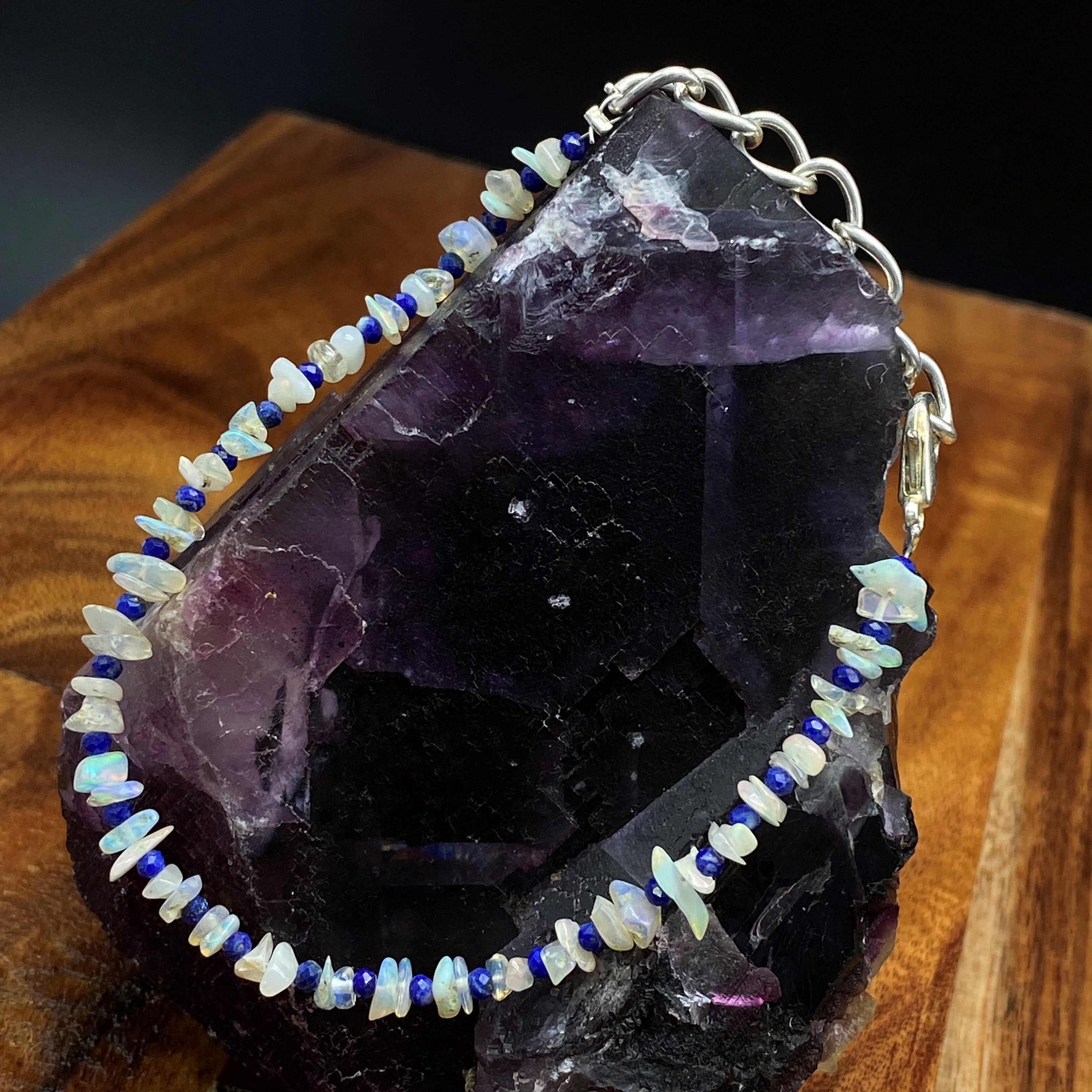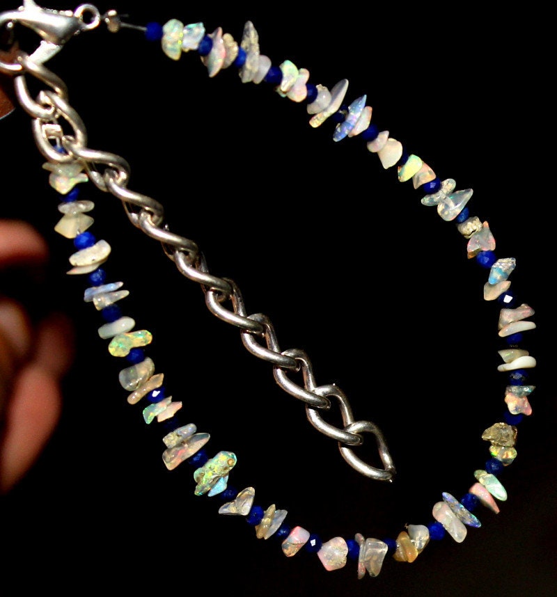 This bracelet is made of high-quality materials. The Ethiopian Welo Opal and Lapis Lazuli are natural and untreated and the accents and closure are made of solid 925 sterling silver.