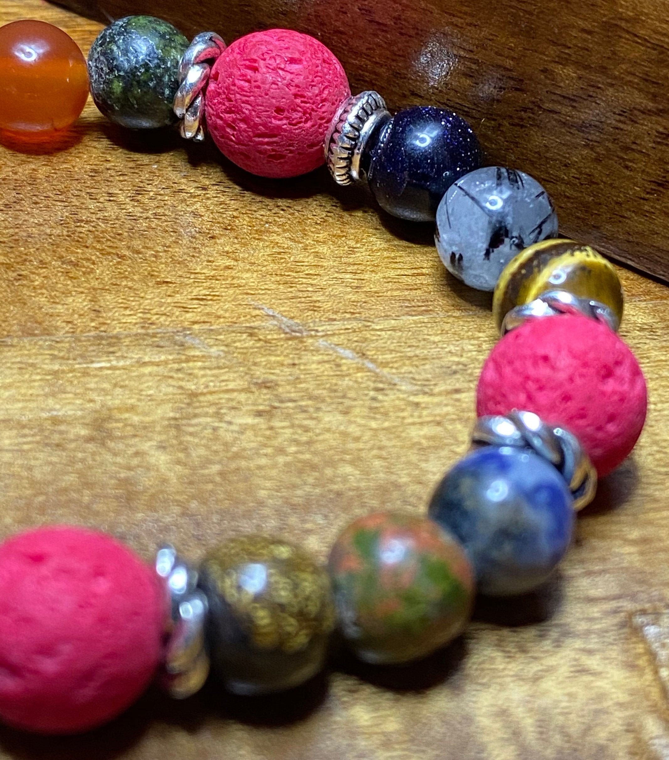 This beautiful multicolored natural stone bracelet has brilliance, elegance and a lot of color. I choose to use both 8mm and 10mm size beads for this bracelet for the perfect mix for style and comfort.