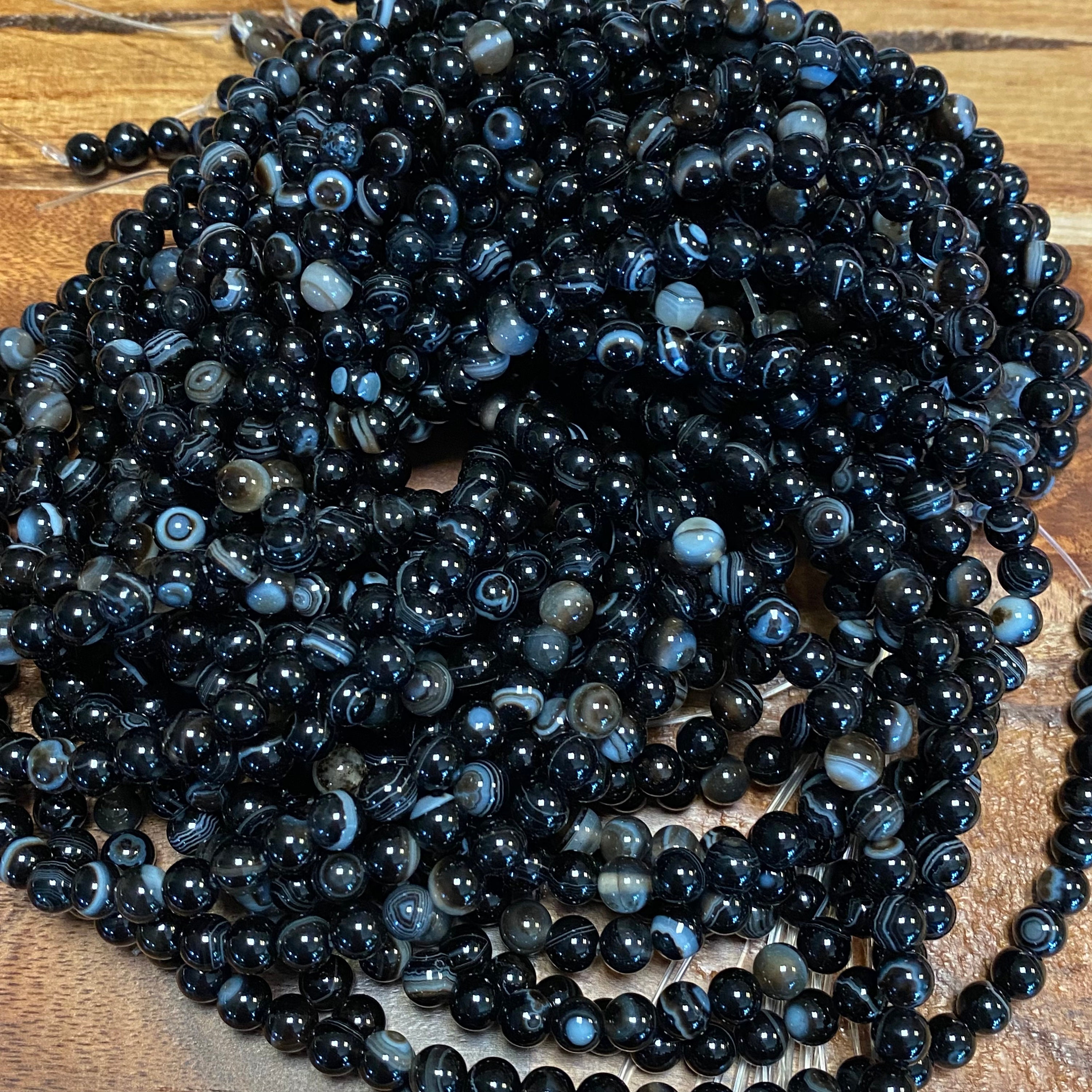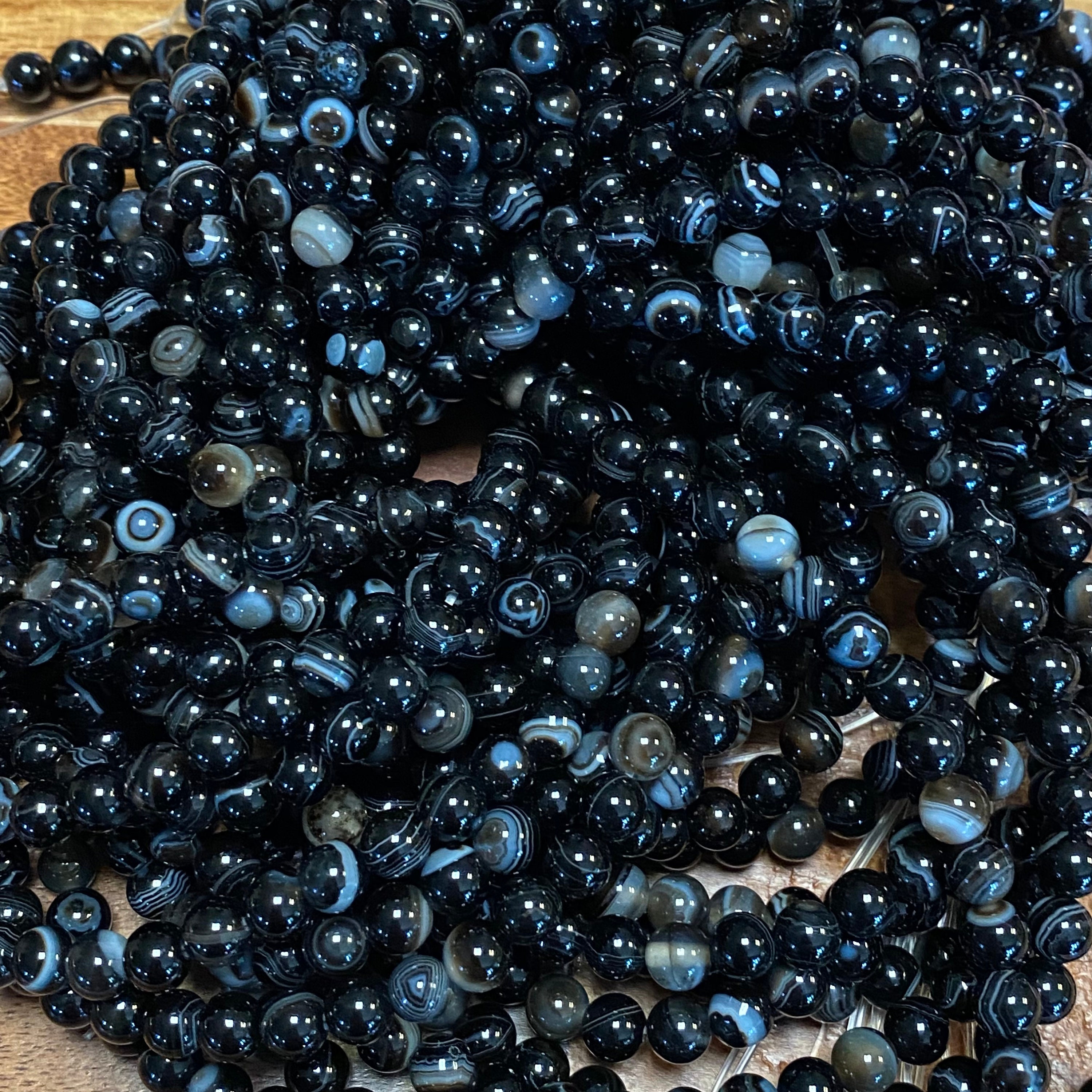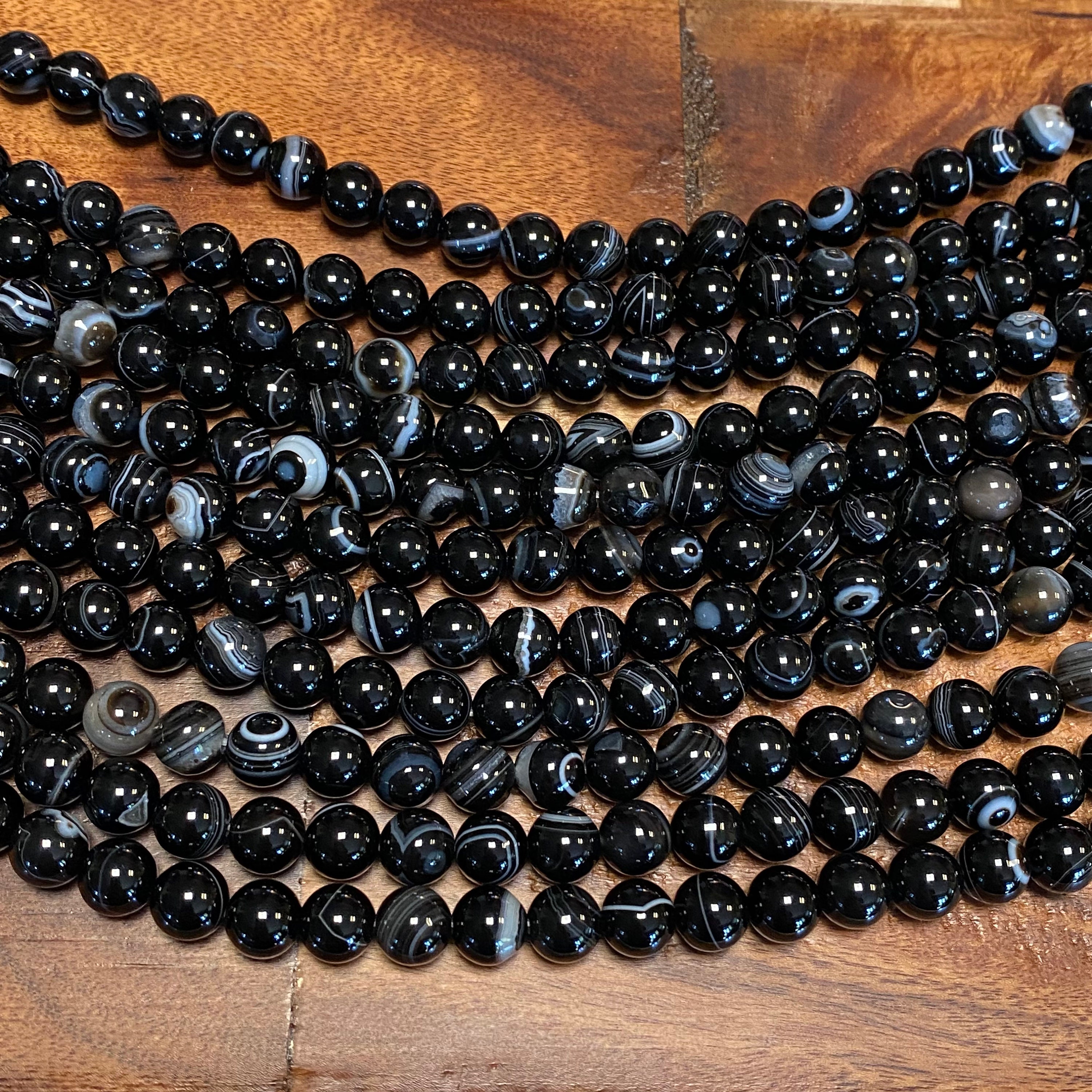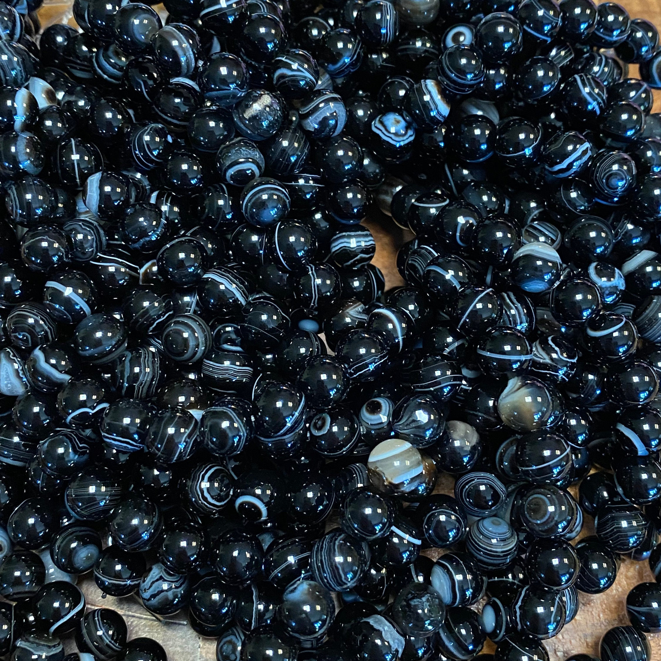 Lovely Natural Black Striped 2 for Jewelry/C'raft Making, Round: 6mm, 8mm