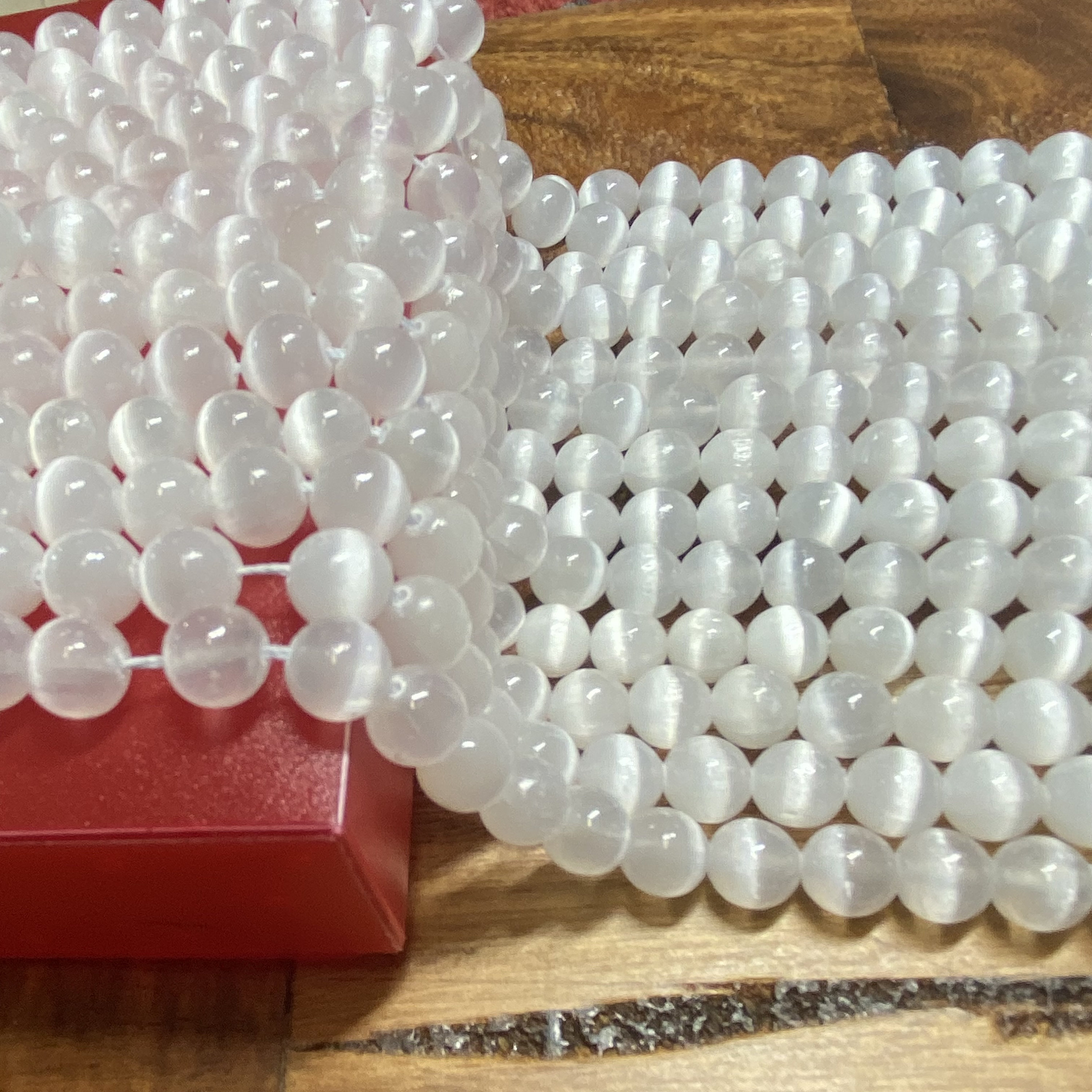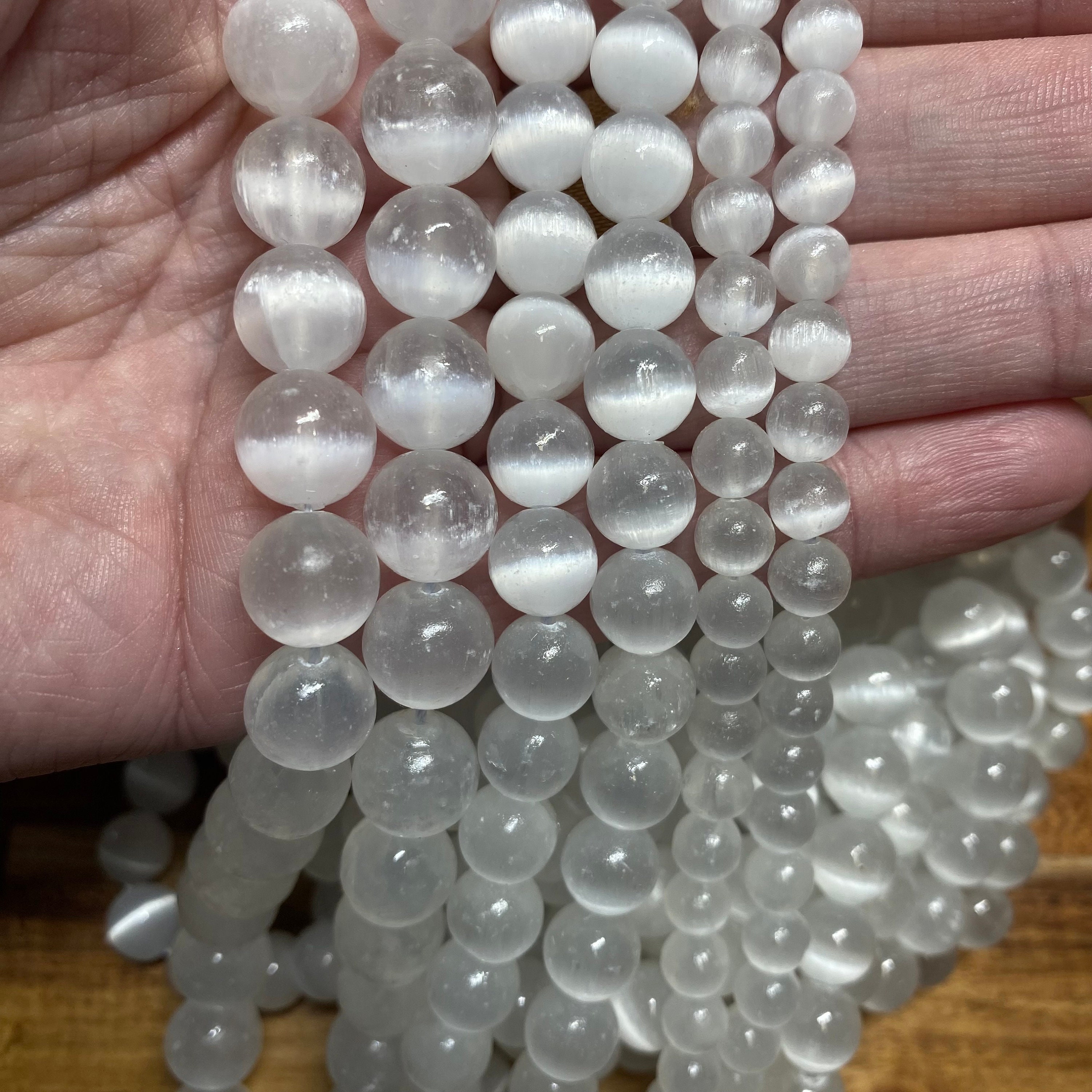 Magnificent Natural 5A Cat's Eye Selenite Gemstone Beads for Jewelry/Craft Making, Round: 6mm, 8mm, 10mm