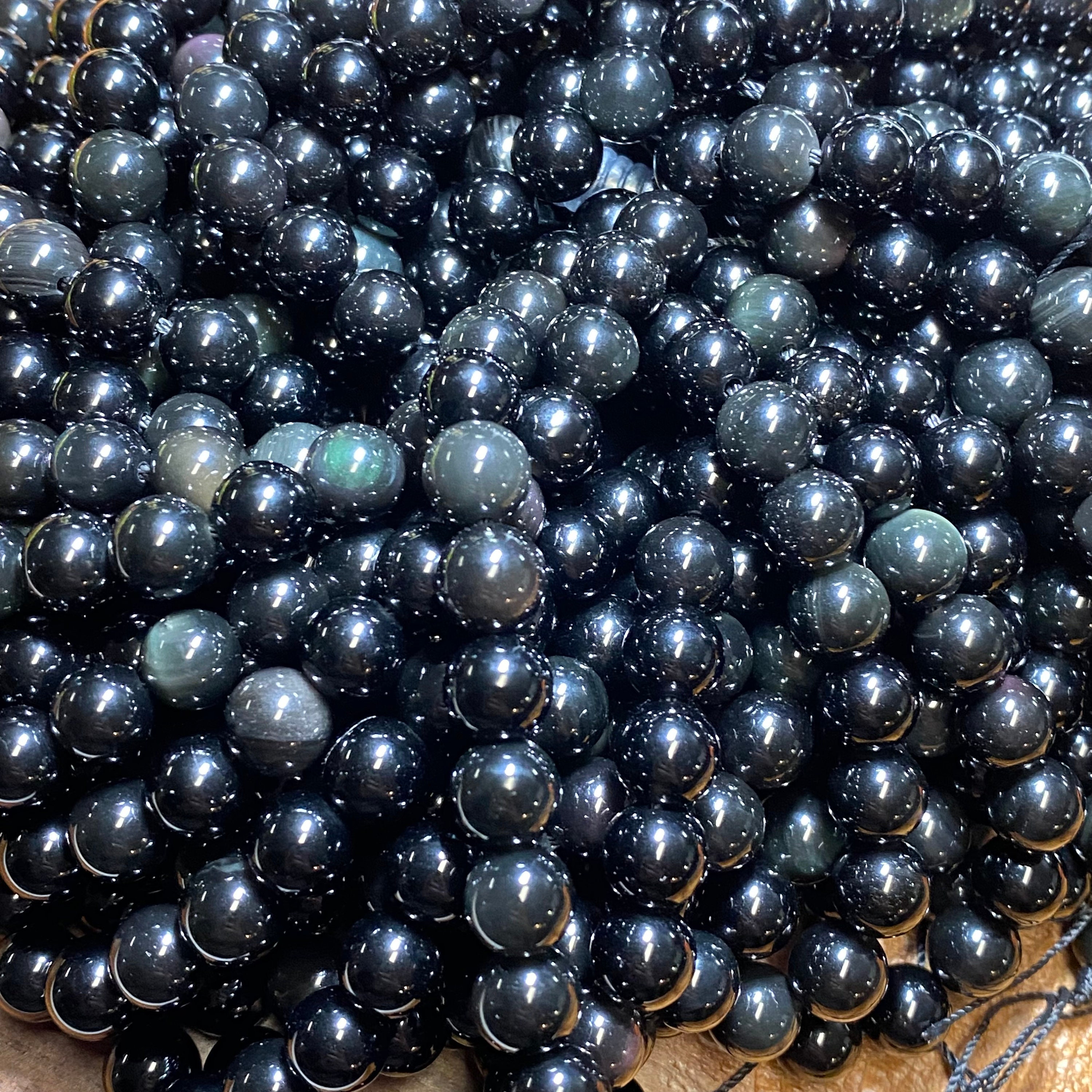 Majestic Natural Black Obsidian Gemstone/6 for Jewelry/Craft Making, Round: 4mm, 6mm, 8mm, 10mm