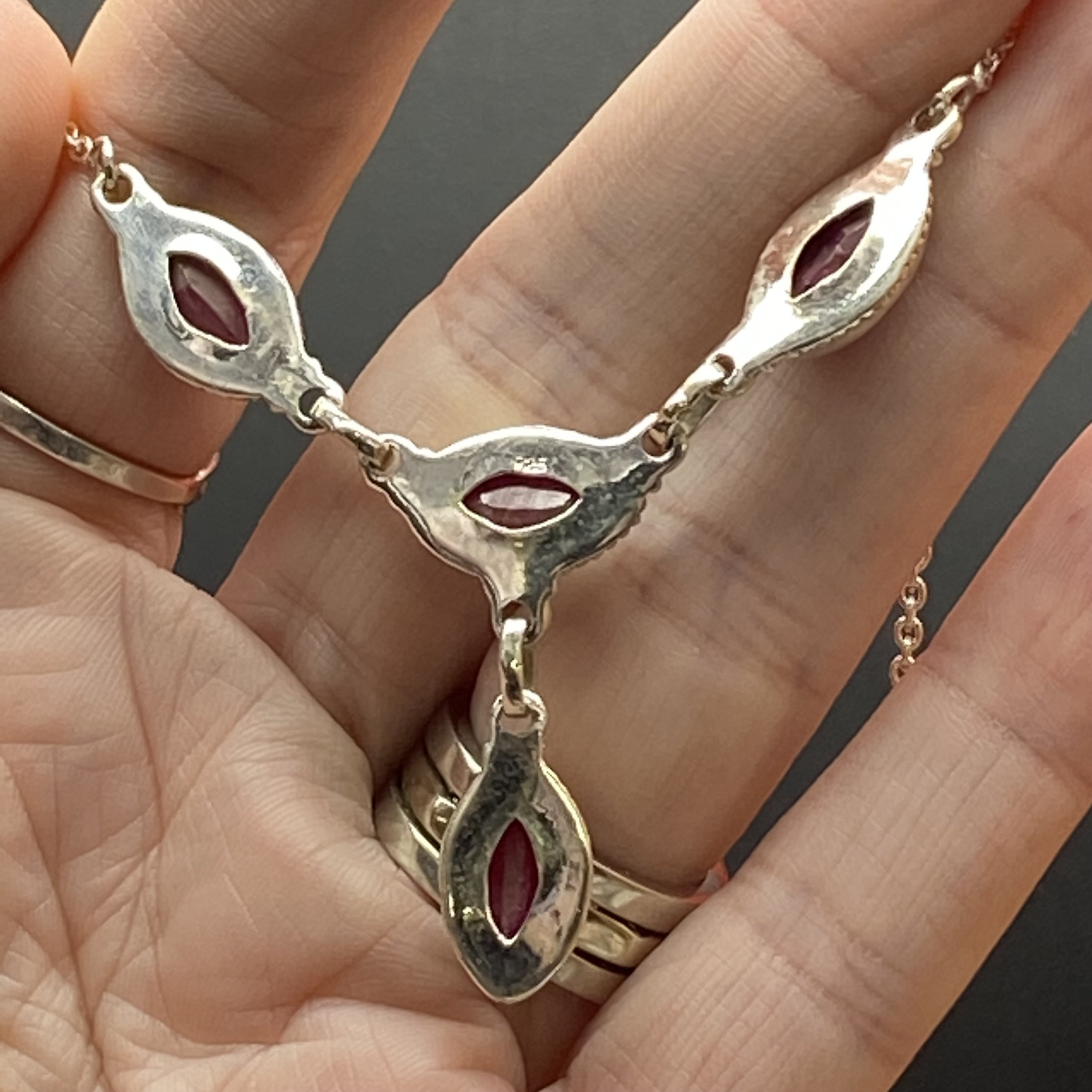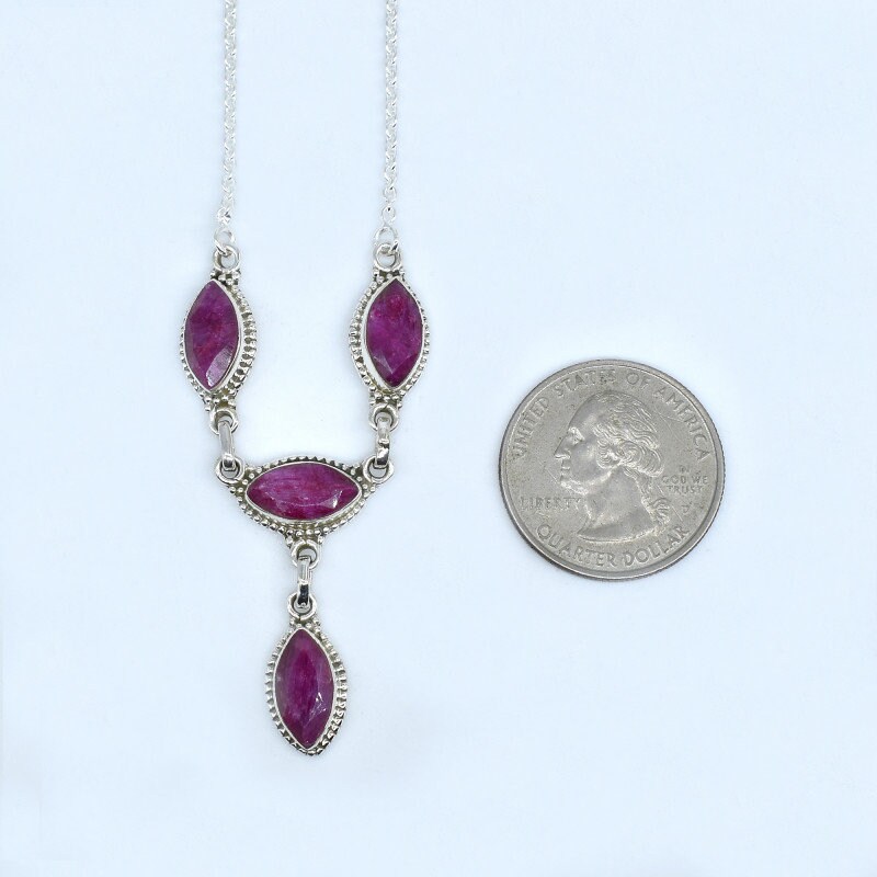 This necklace and pendant are made of high-quality materials. The Ruby is natural and untreated and the chain and settings are made of solid 925 sterling silver.
