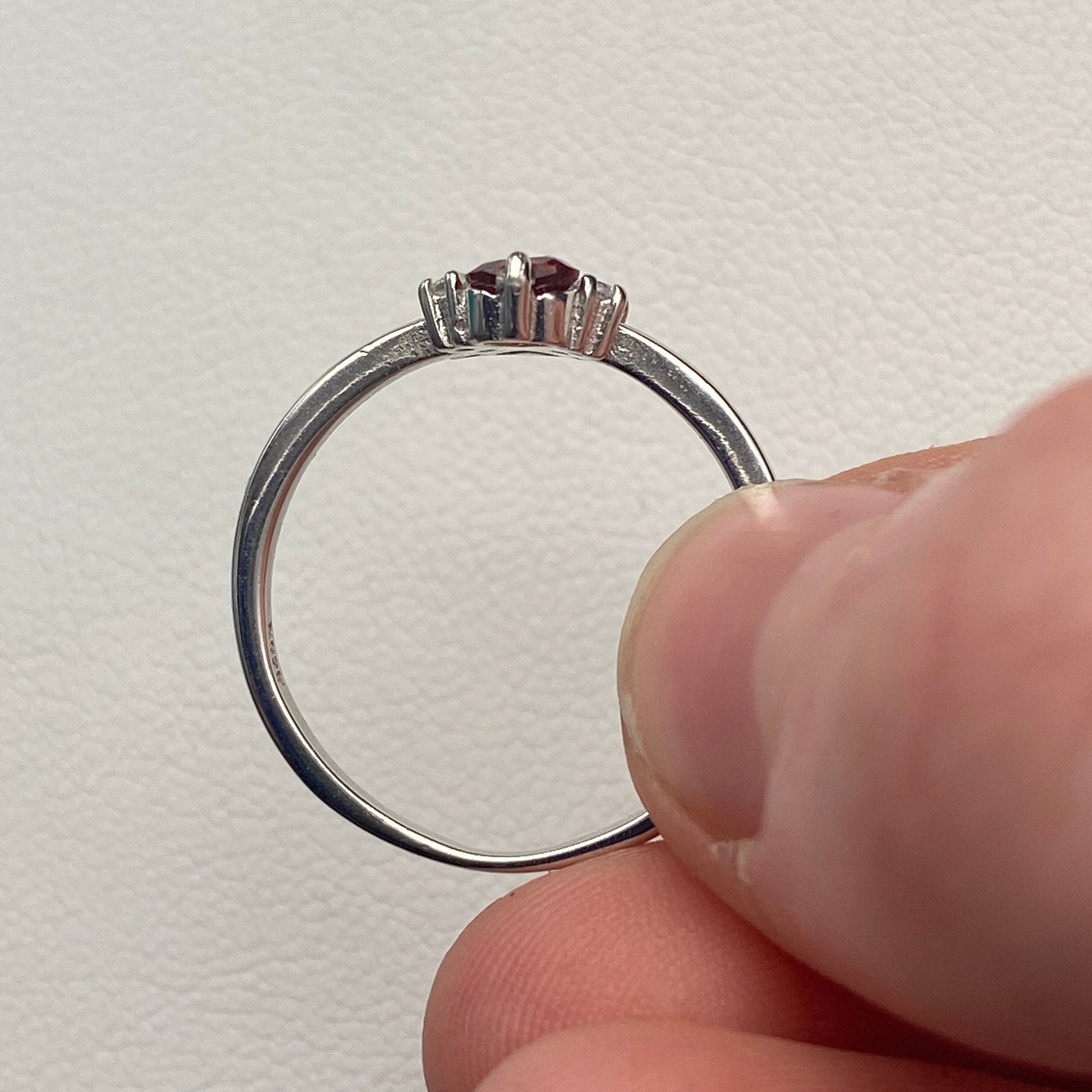 This ring is made of high-quality materials. The Rhodolite Garnets are natural and untreated and the ring is made of solid 925 sterling silver. The small stones around the main stone are high quality cubic zirconia.
