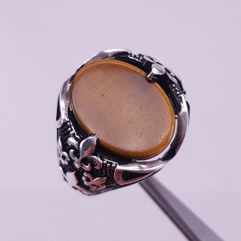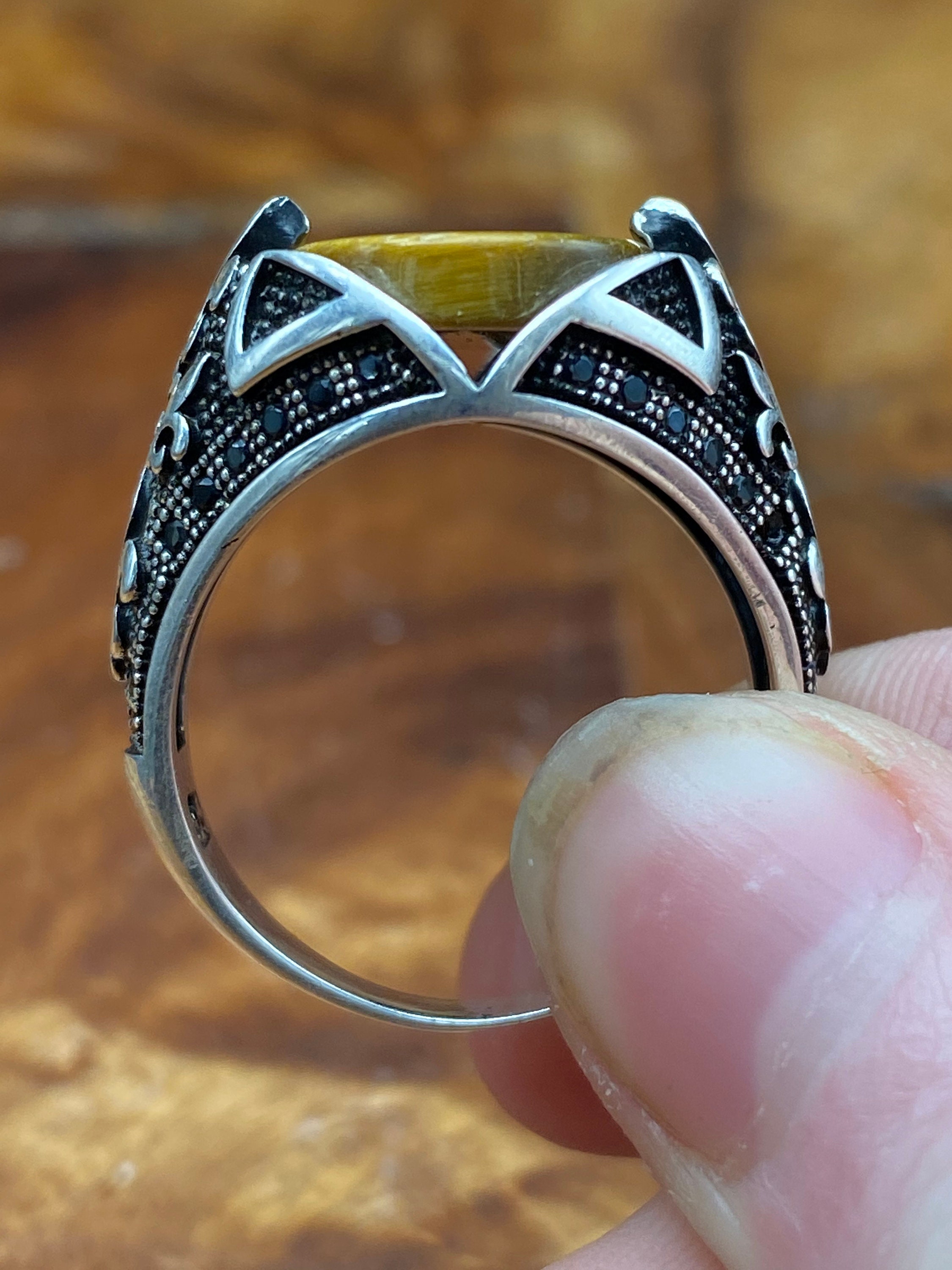 This ring is made of high-quality materials. The Tiger Eye is natural and untreated and the setting is made of solid 925 sterling silver.