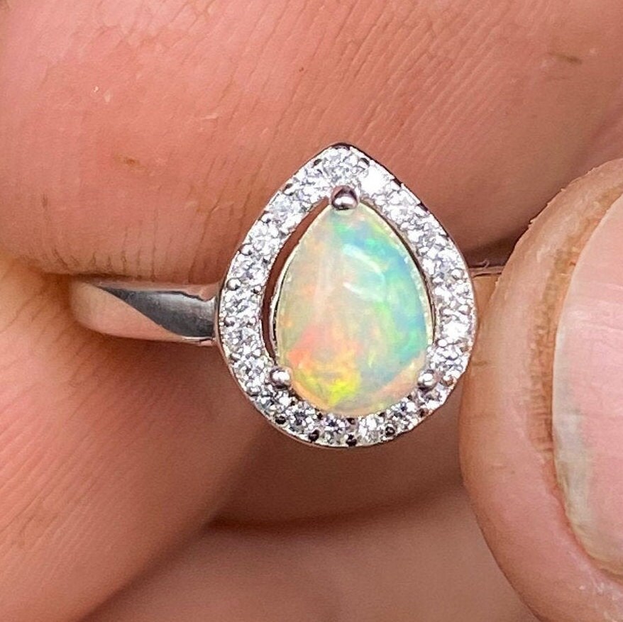 This Welo Opal made of high-quality materials. The opal is natural and untreated and the ring is made of solid 925 sterling silver. The small stones around the main stone are superb cubic zirconia.