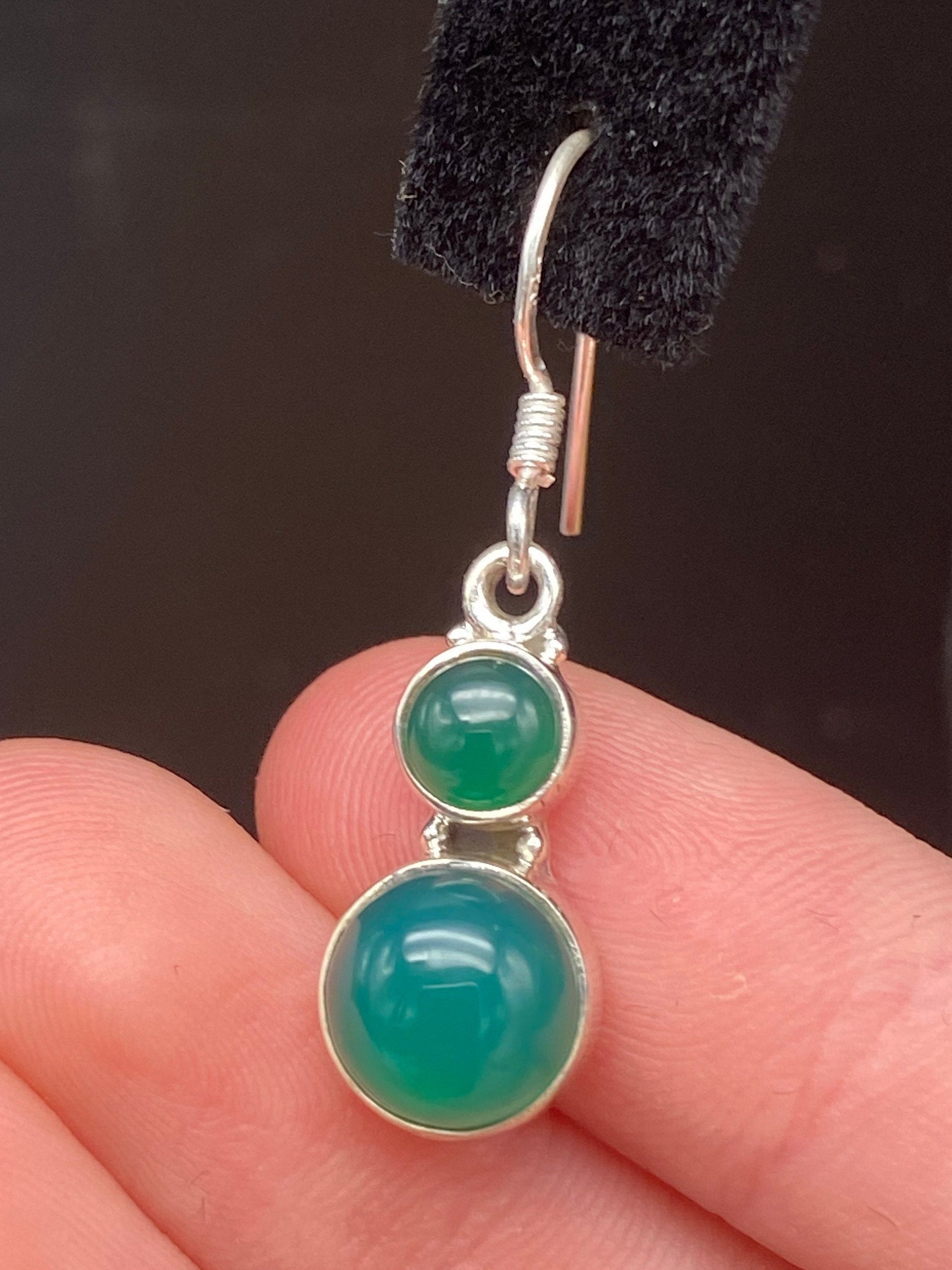 These earrings are made of high-quality materials. The Green Onyx is natural and untreated and the setting is made of solid 925 sterling silver.