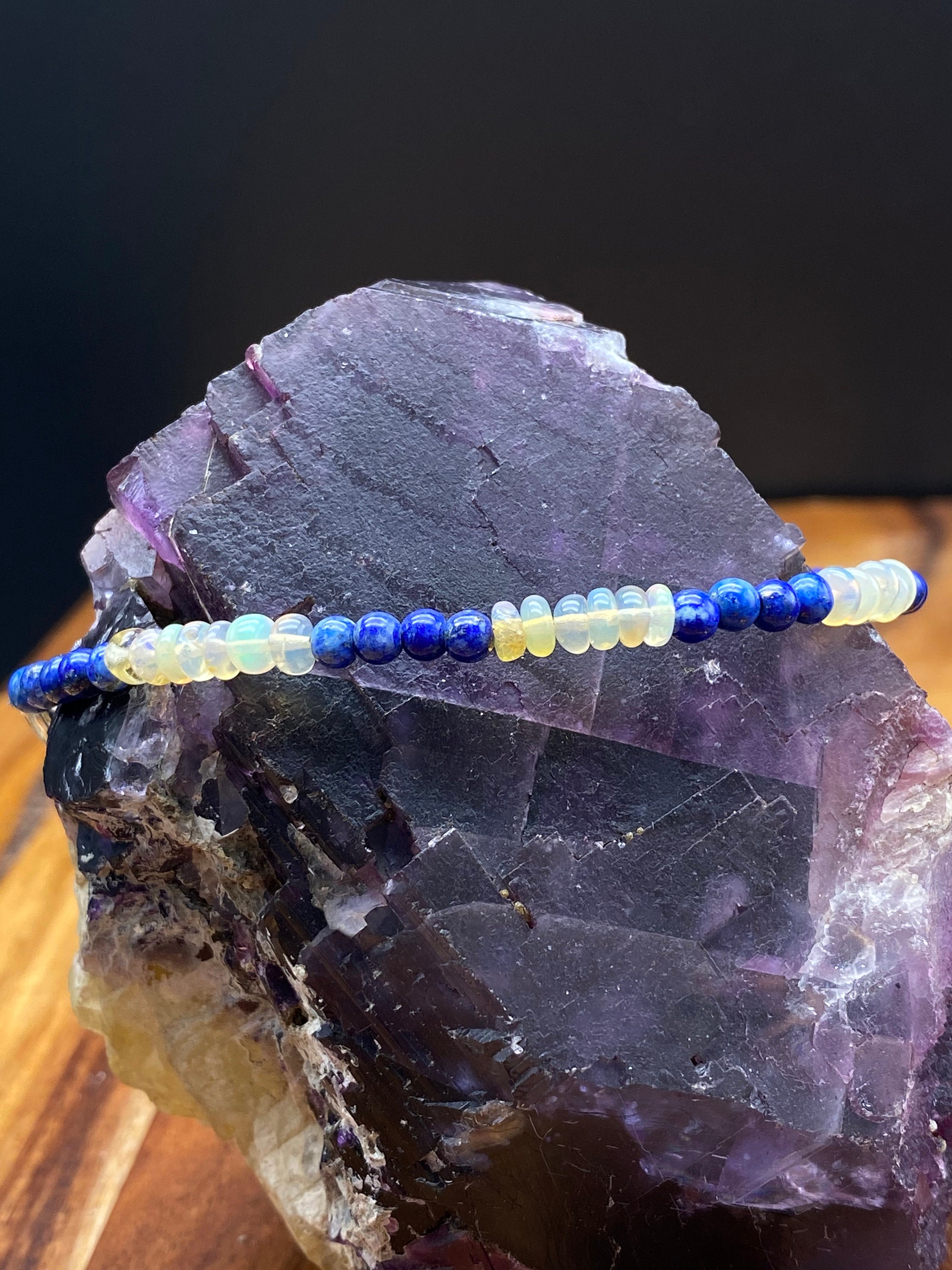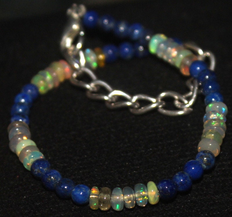 This bracelet is made of high-quality materials. The Ethiopian Welo Broad flash/Pinfire Opal & Lapis Lazuli are natural and untreated and the extra links and clasp are made of solid 925 sterling silver.