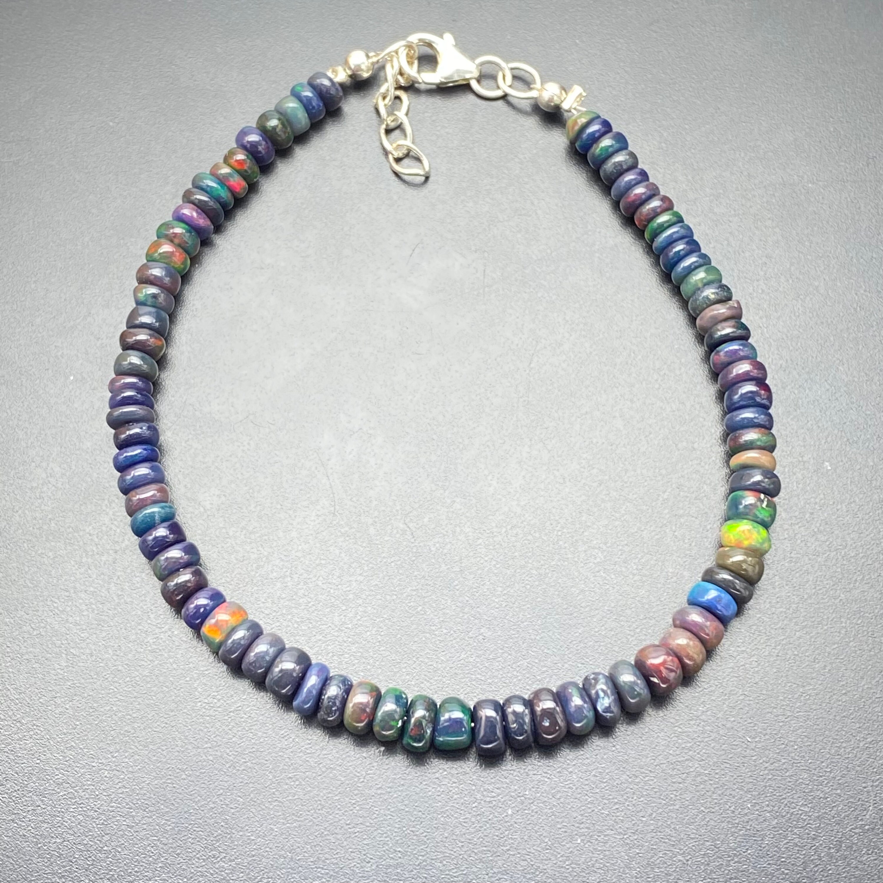 This bracelet is made of high-quality materials. The smoked black Ethiopian Welo Opals are natural and untreated (besides the opals being smoked) and the accents and closure are made of solid 925 sterling silver.