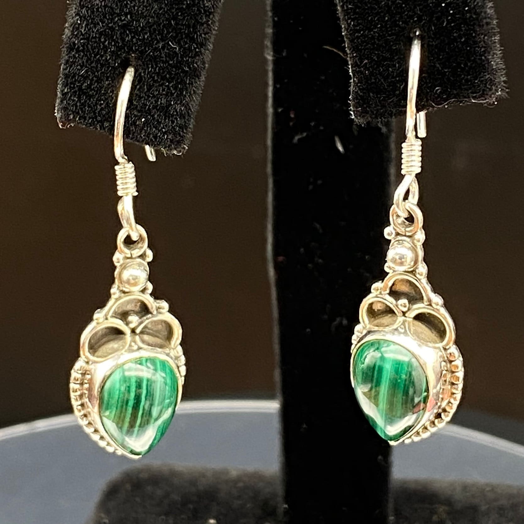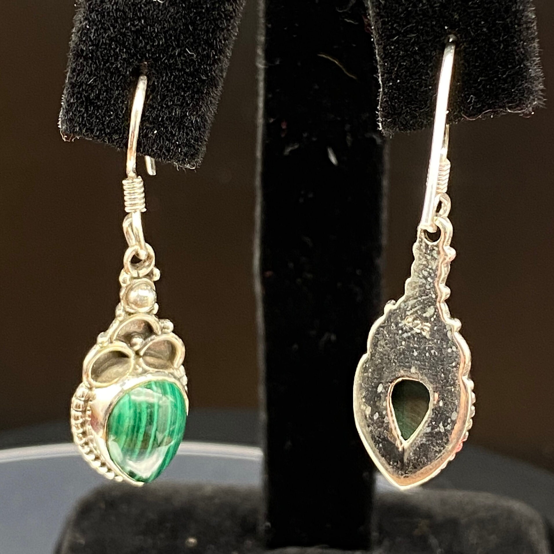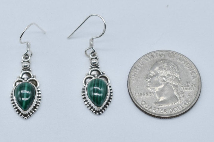 These earrings are made of high-quality materials. The Malachite is natural and untreated and the setting is made of solid 925 sterling silver.