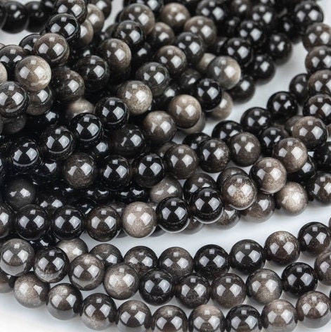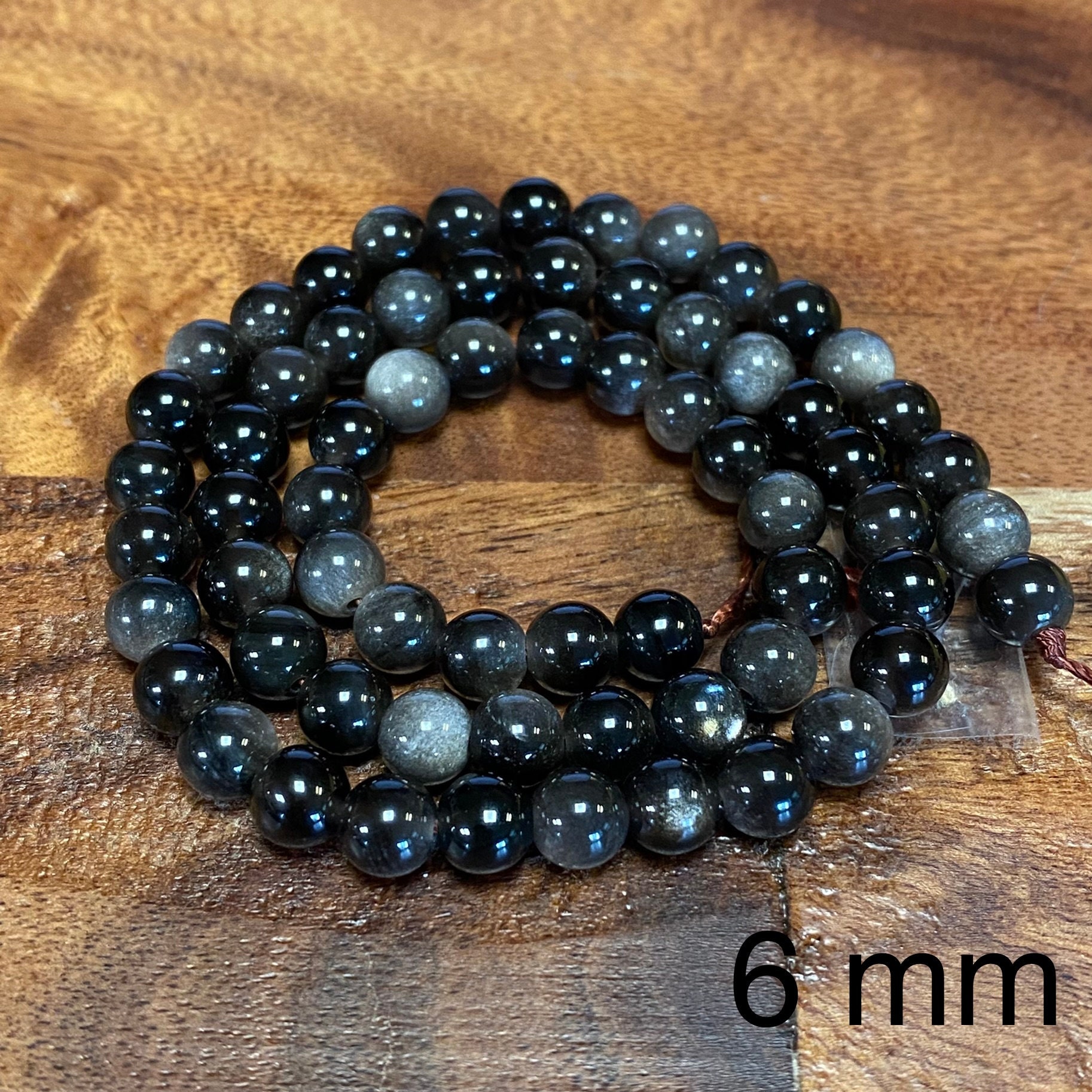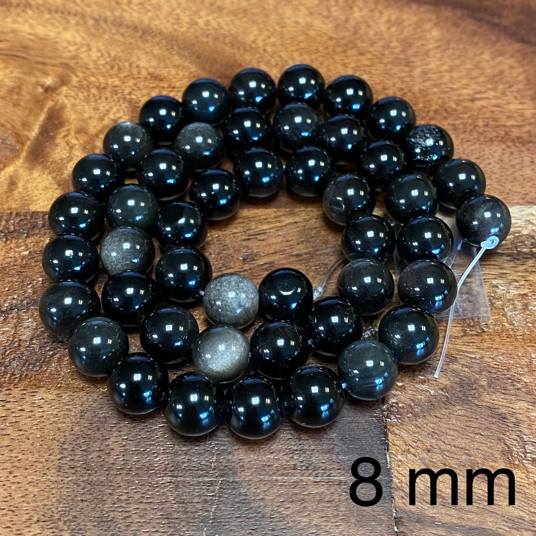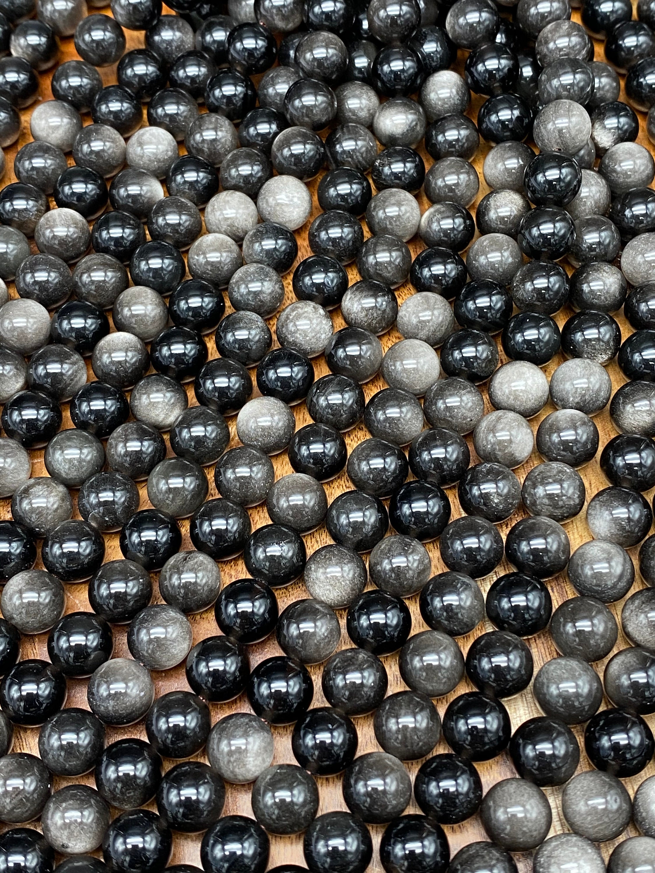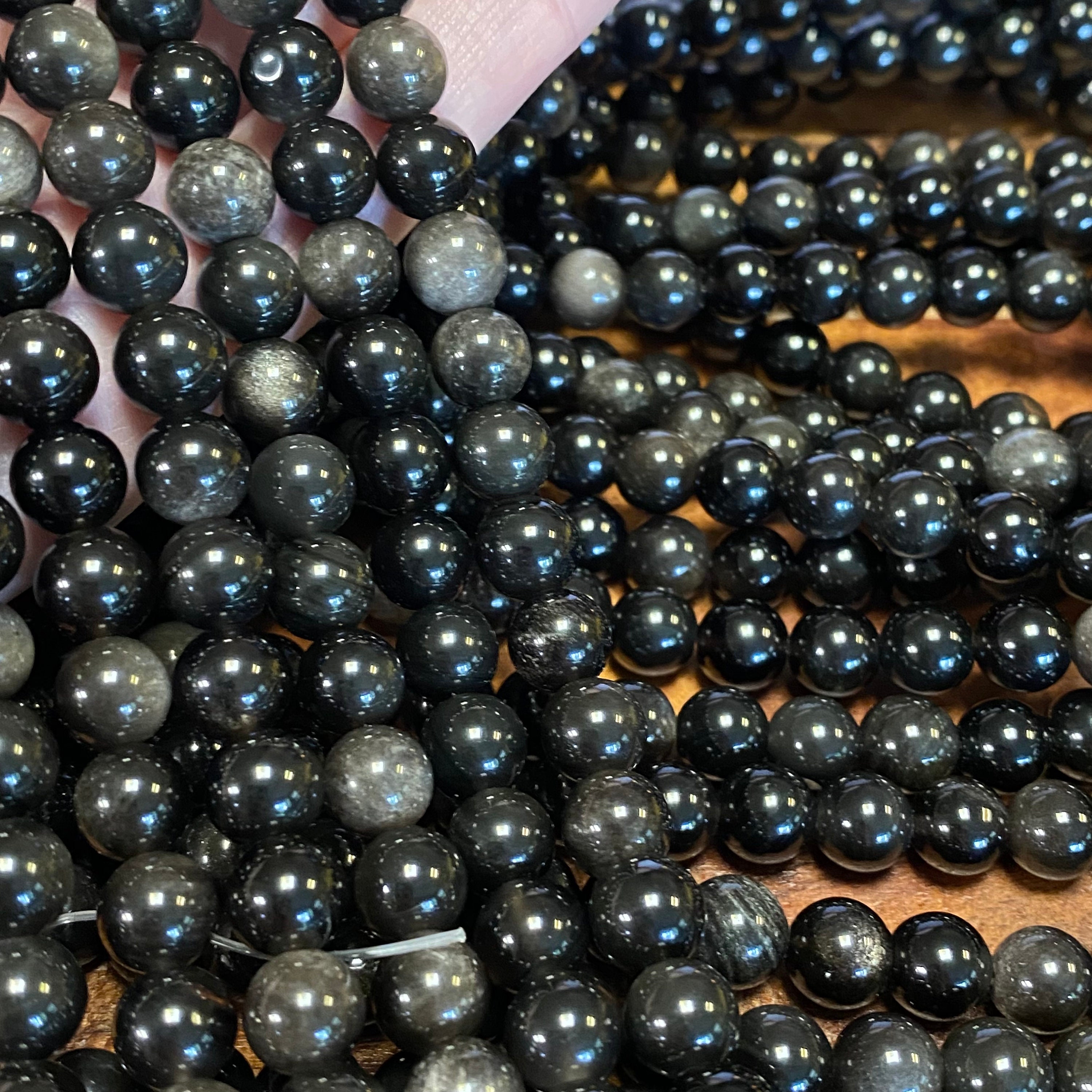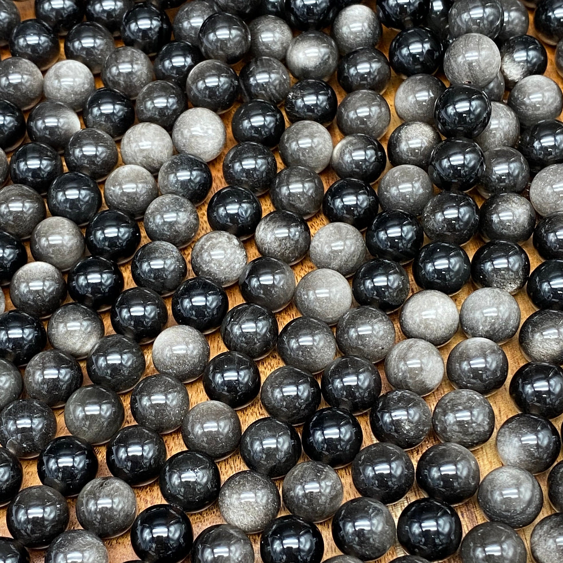 Premium Quality Natural Silver Obsidian Gemstone Beads for Jewelry/Craft Making, Round: 6mm, 8mm