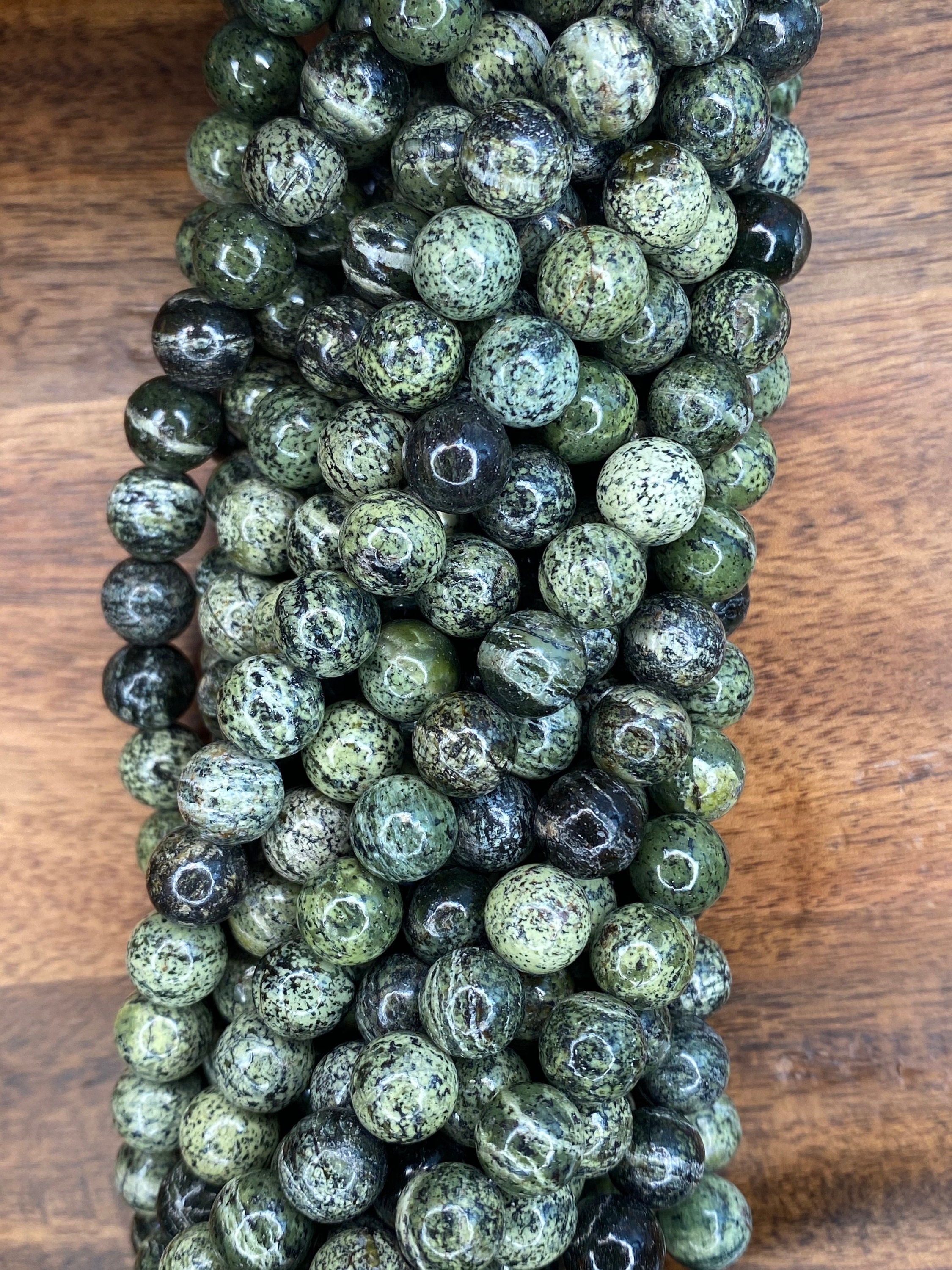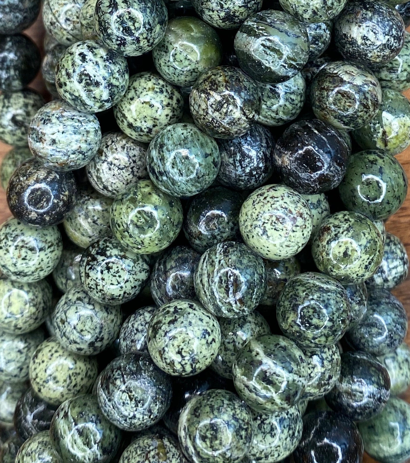 Radiant Natural Green Zebra Jasper Gemstone/6 for Jewelry/Craft Making, Round: 6mm, 8mm