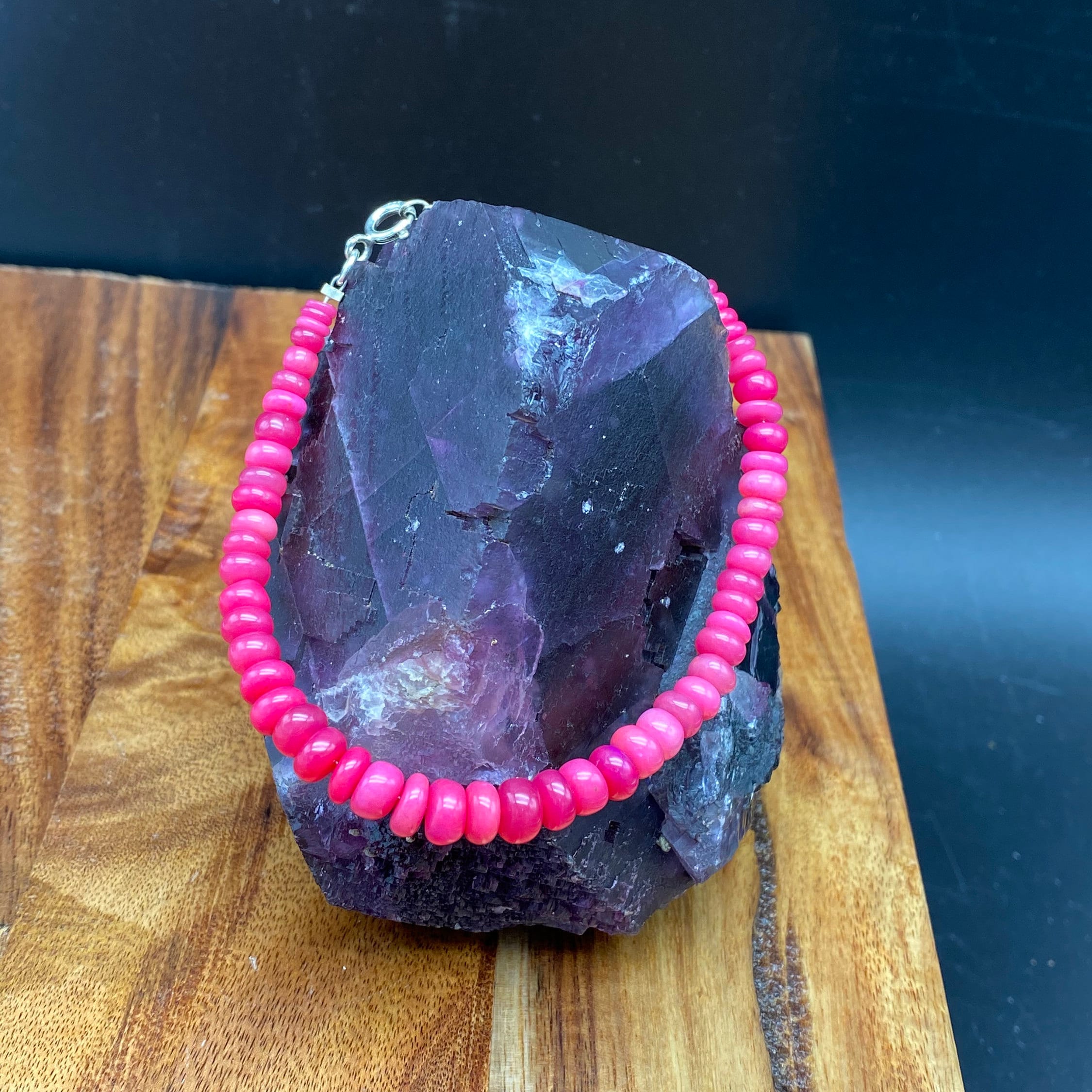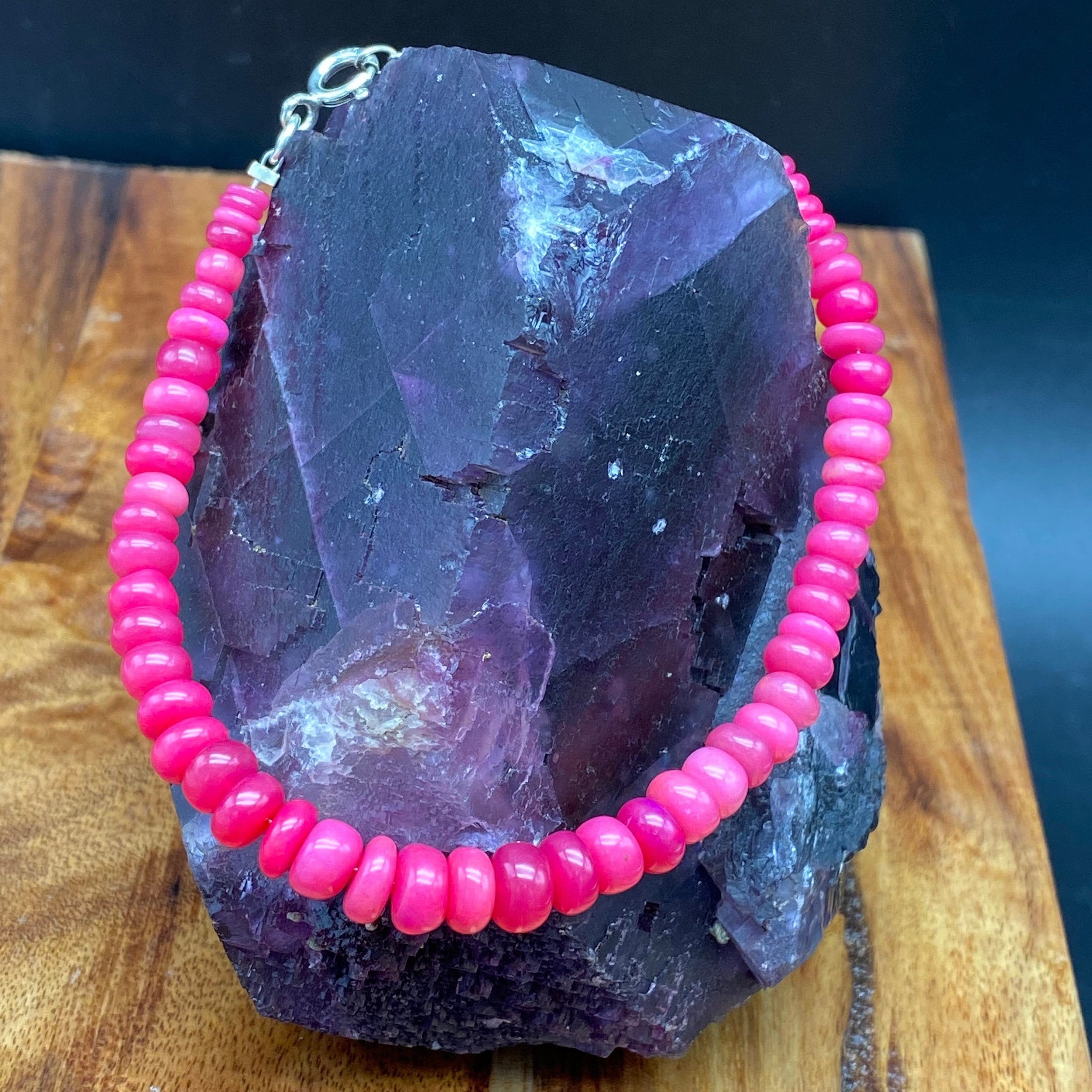 This bracelet is made of high-quality materials. The Ethiopian Welo Opal is natural but is color enhanced. The accents and closure are made of solid 925 sterling silver.