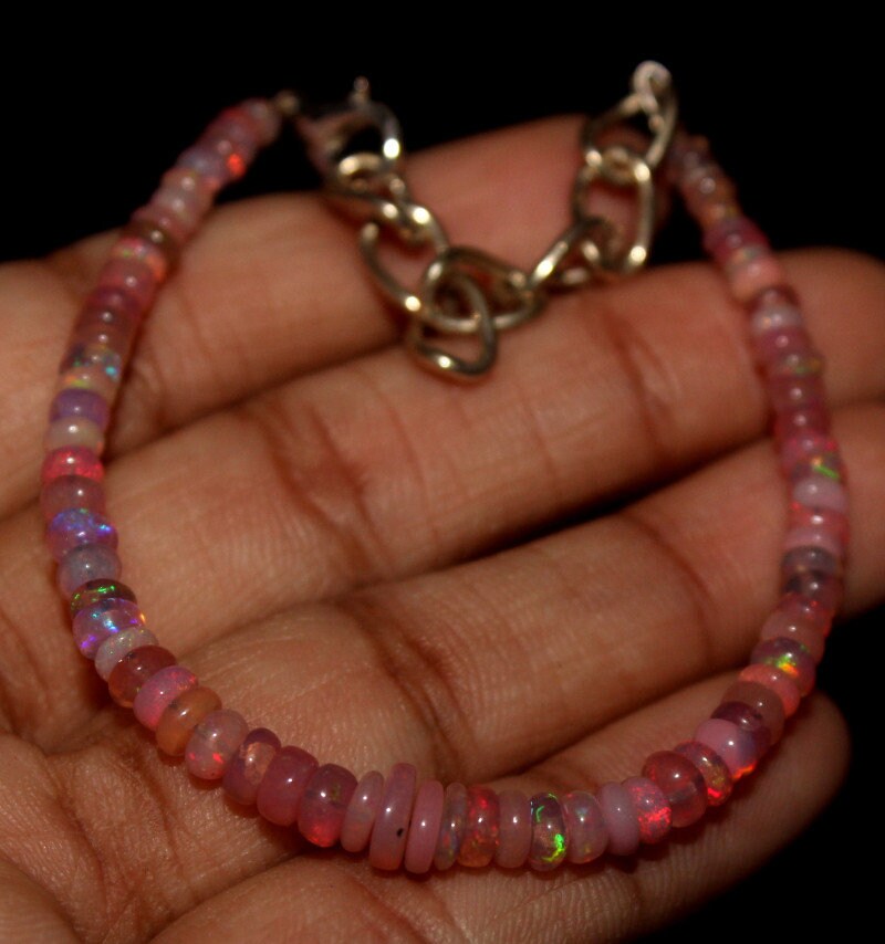 This bracelet is made of high-quality materials. The Ethiopian Welo Opal is natural and has been smoked to get the beautiful pink tones. The clasp is made of solid 925 sterling silver.