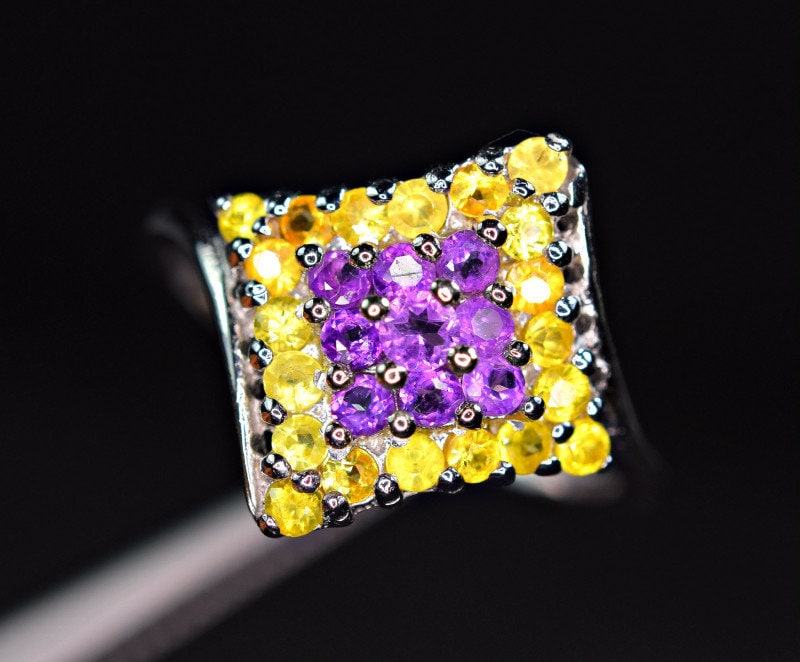 This ring is made of high-quality materials. The citrine is natural and untreated while the setting is made of solid 925 sterling silver. The small stones around the main stone are high quality cubic zirconia.
