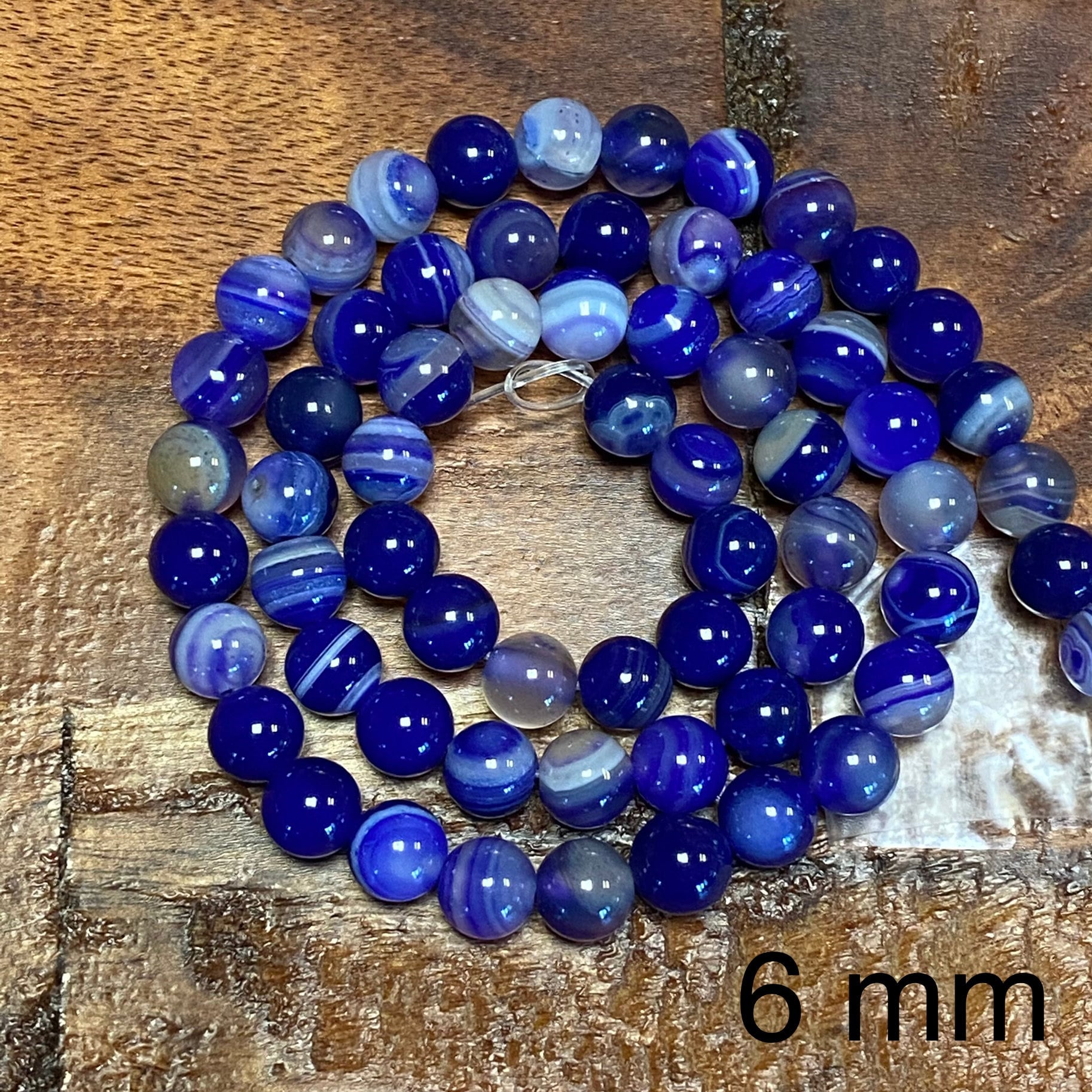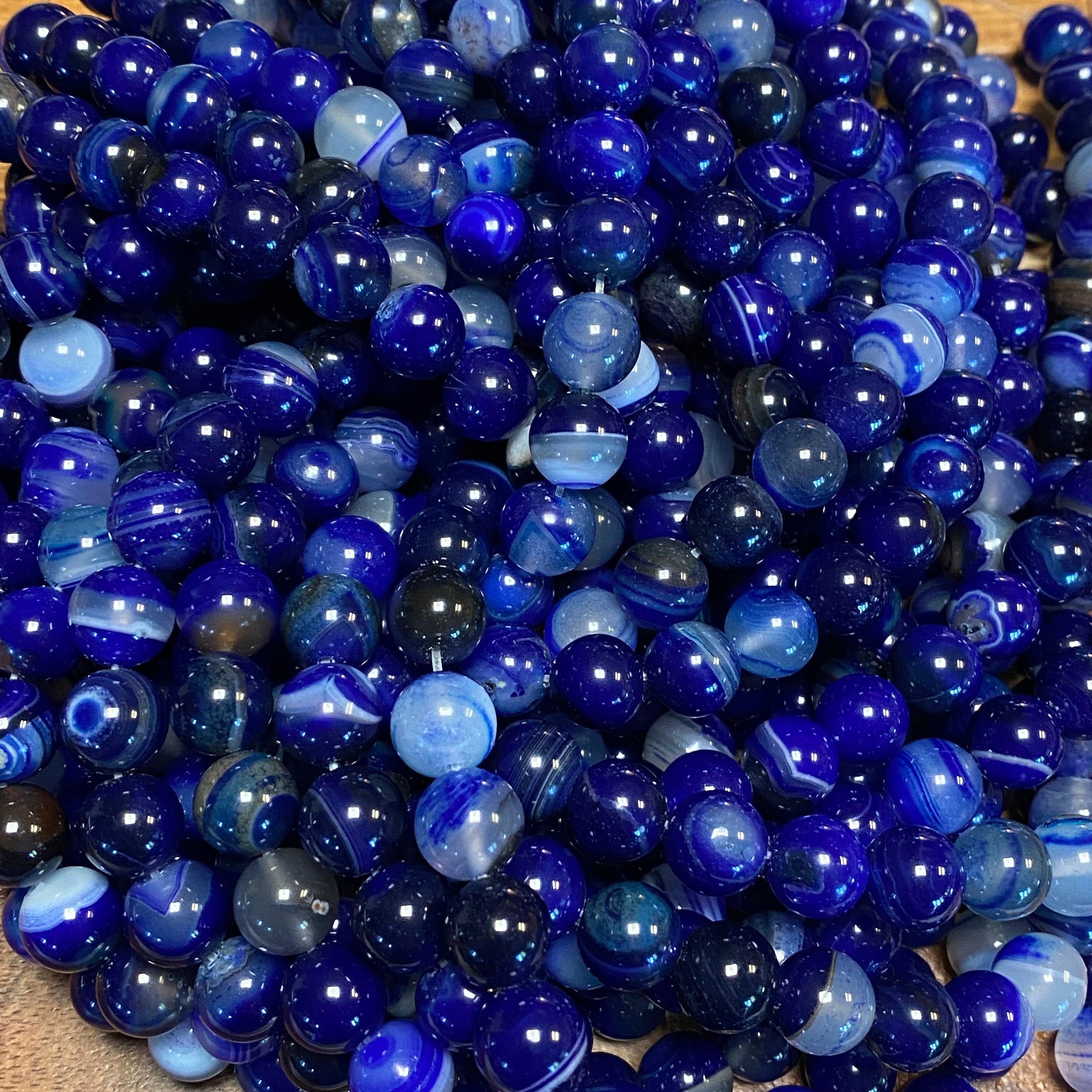 Striking Midnight Blue Striped 2 for Jewelry/Craft Making, Round: 4mm, 6mm, 8mm, 10mm