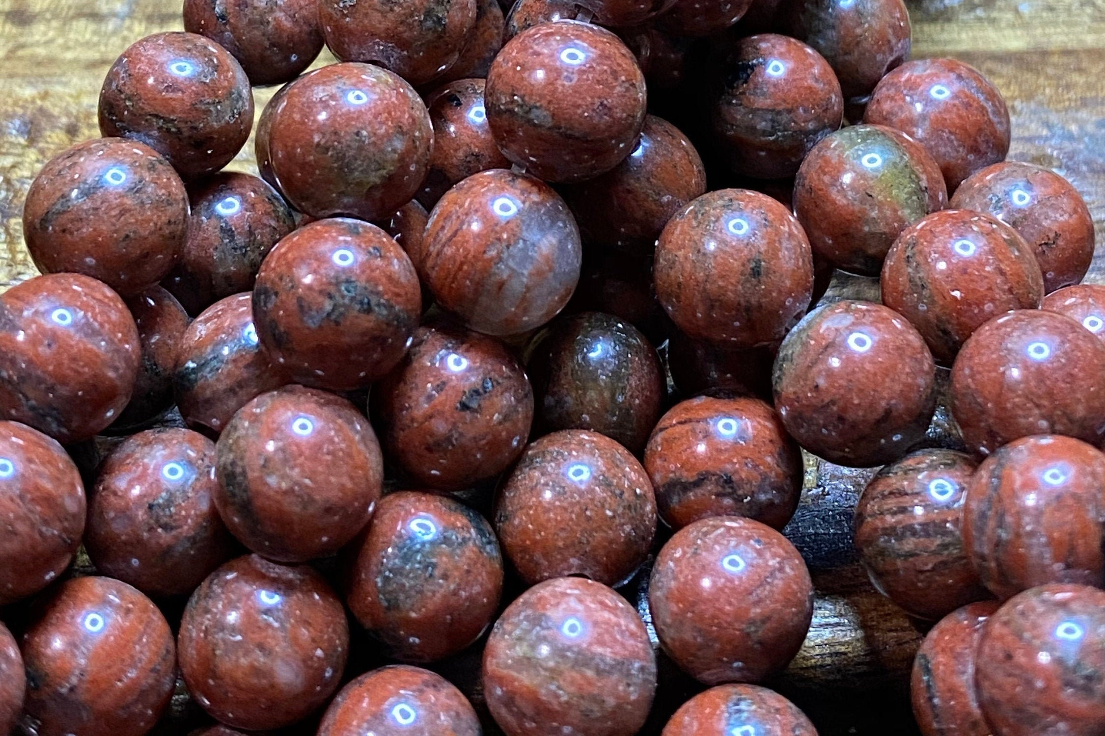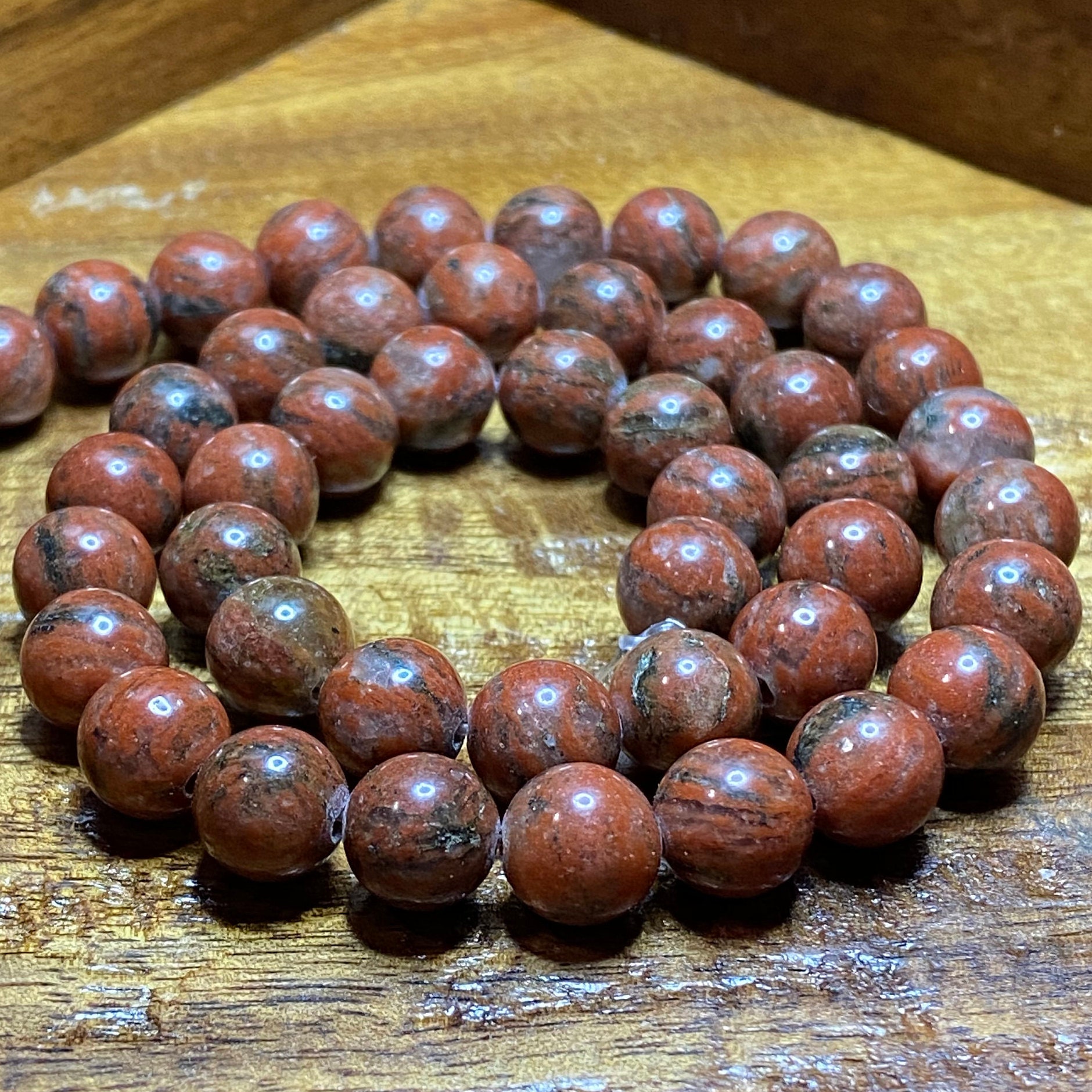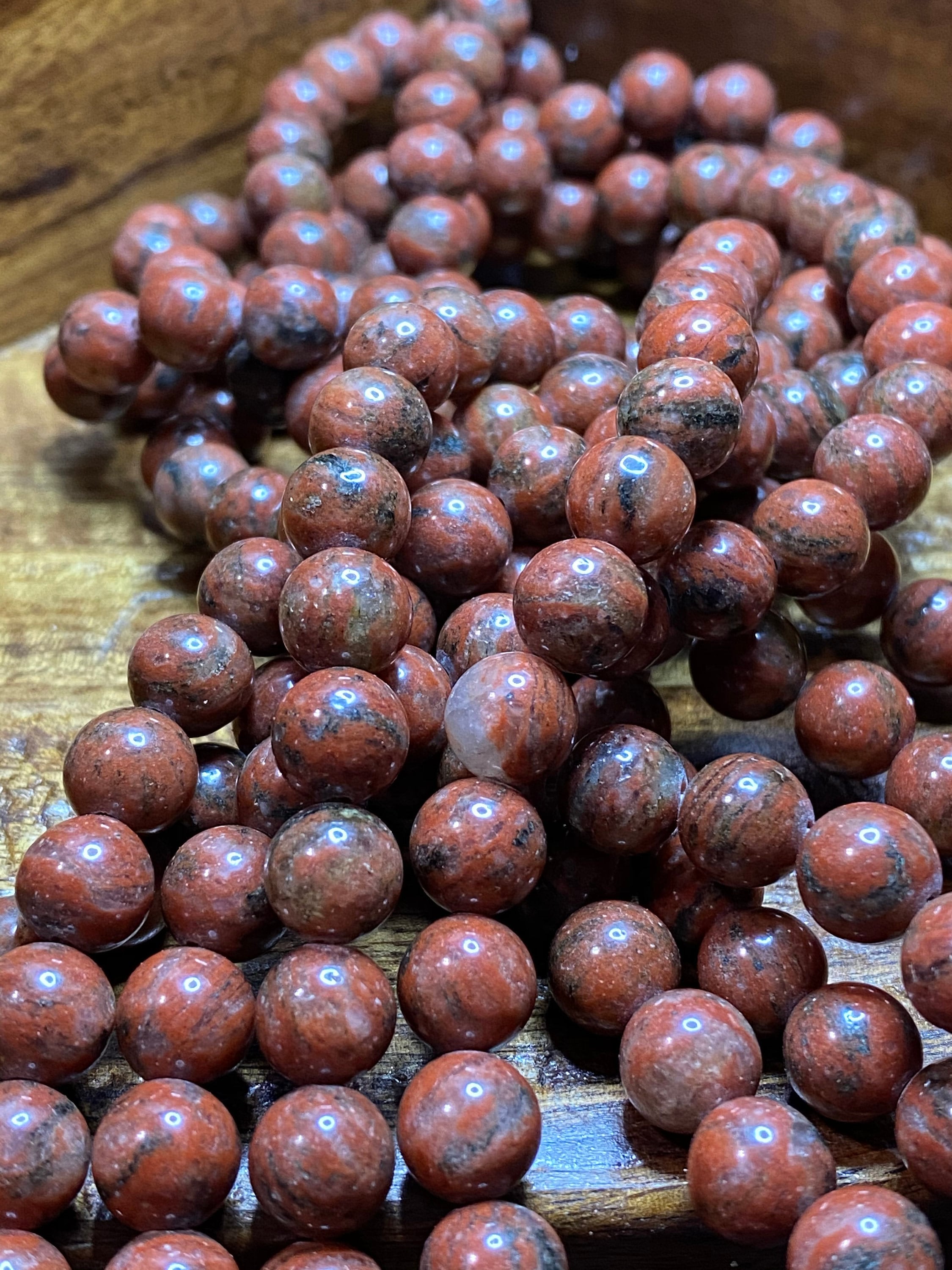 Stunning Natural Red/Brown Poppy 15 for Jewelry/Craft Making, Round 8mm (44-48 pieces)
