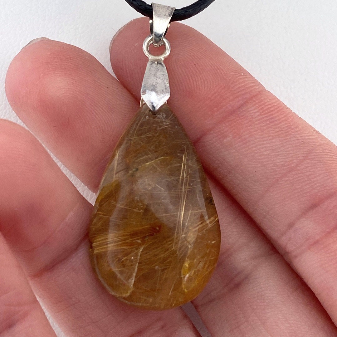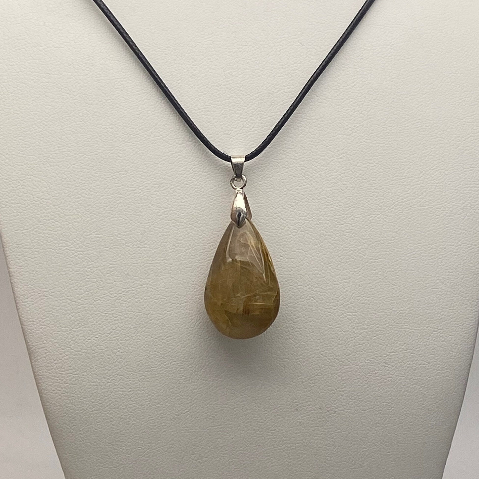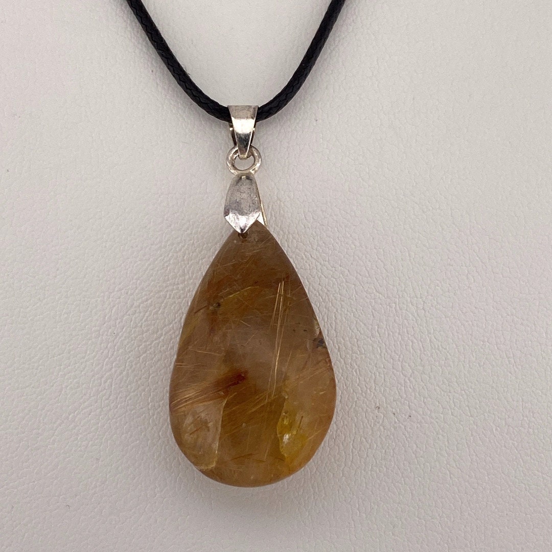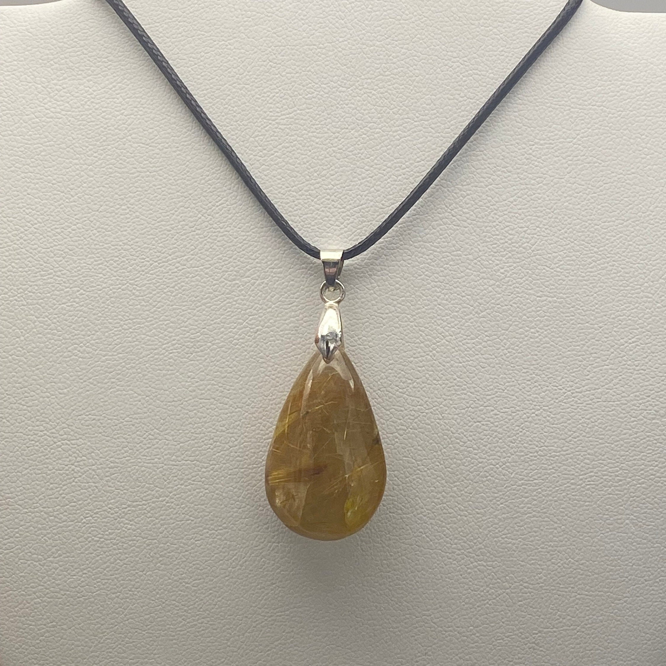 This necklace and pendant are made of high-quality materials. The Golden Rutile Quartz is natural and untreated and the pendant is made of solid 925 sterling silver. The necklace is nylon with silver findings. Listing includes an extra nylon necklace