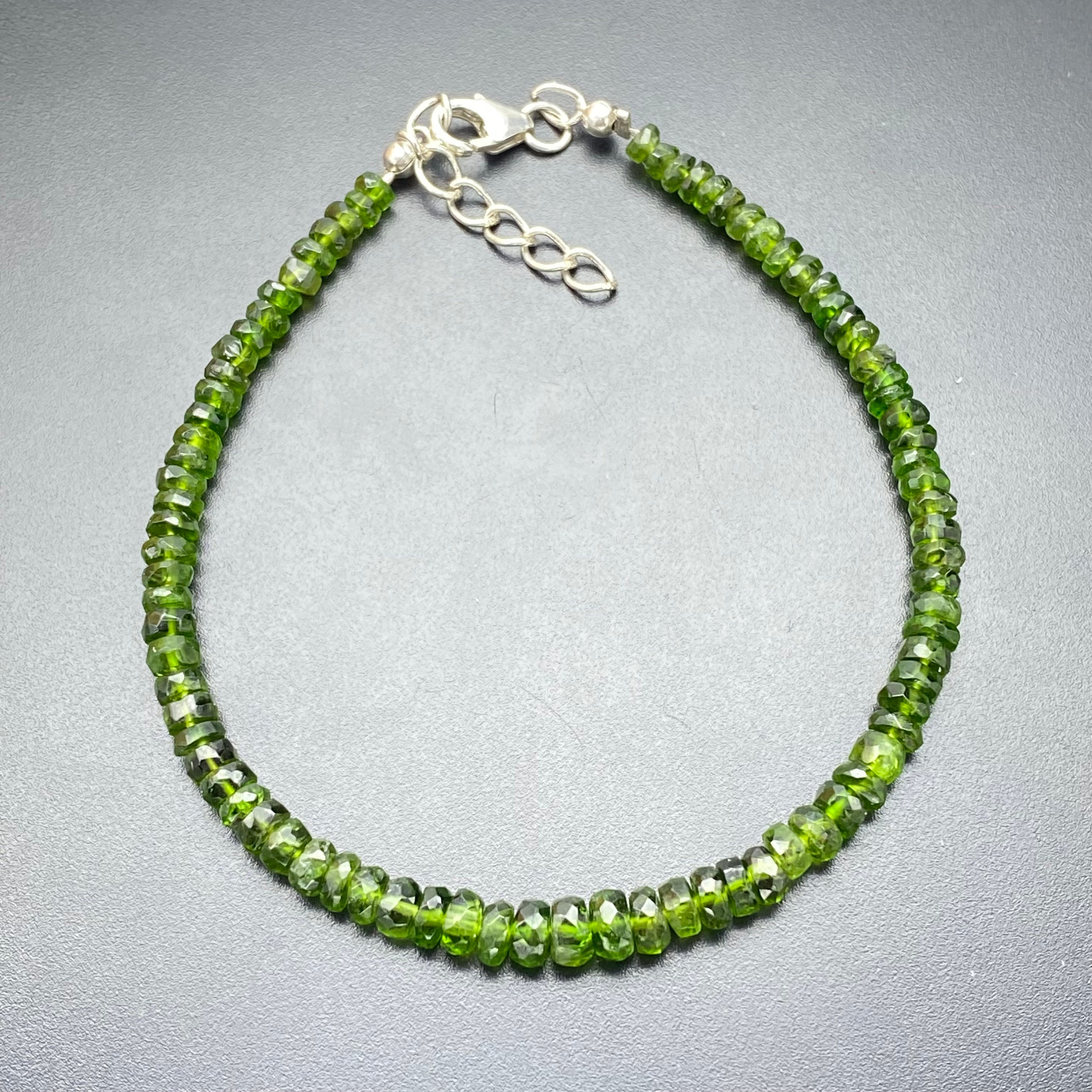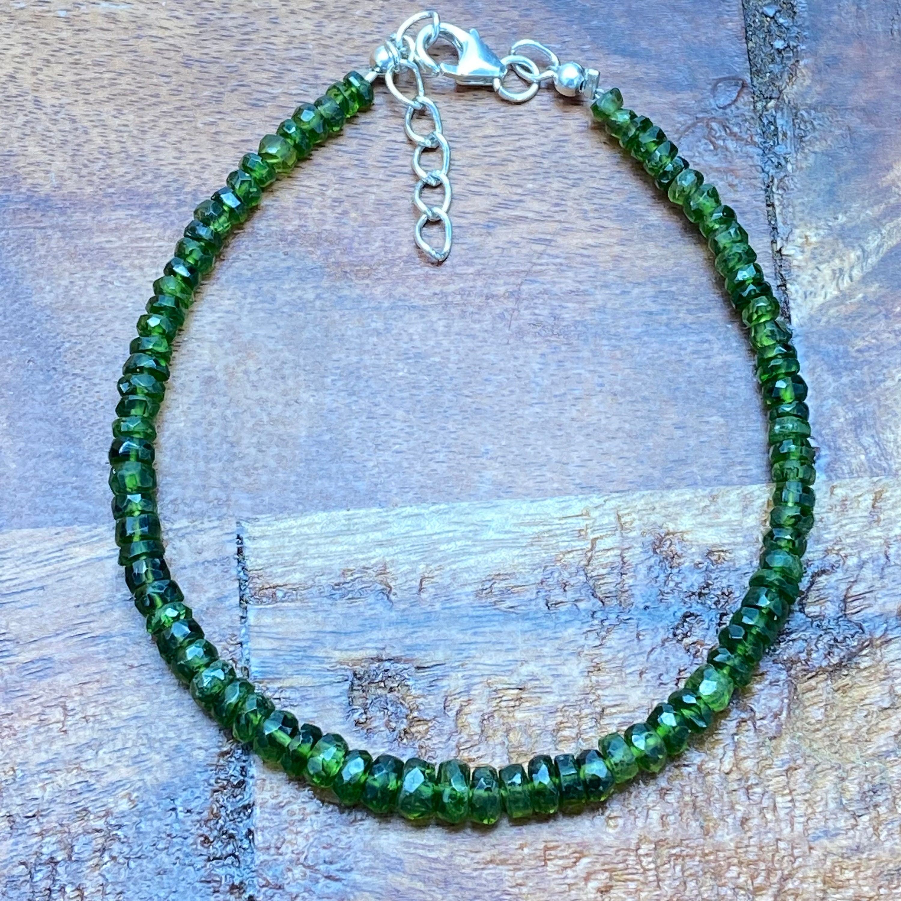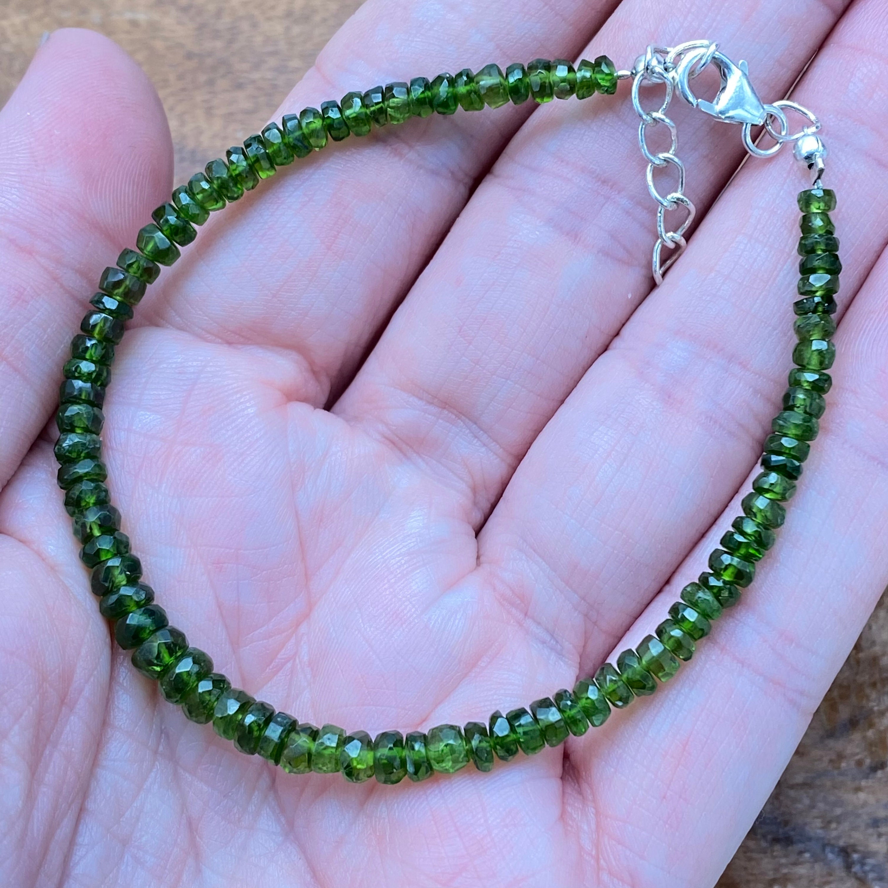 This bracelet is made of high-quality materials. The Siberian Chrome Diopside is natural and untreated and the accents and closure are made of solid 925 sterling silver.