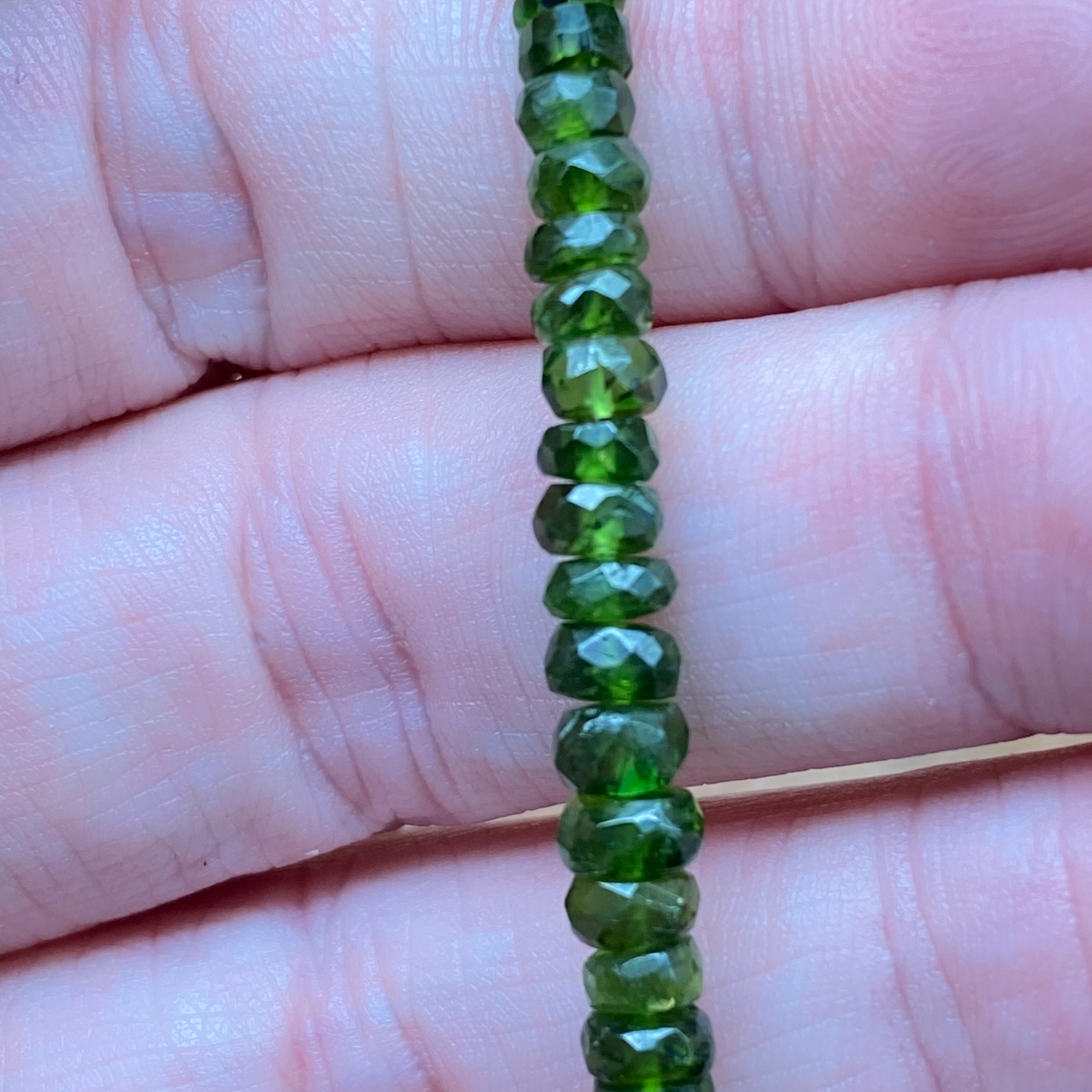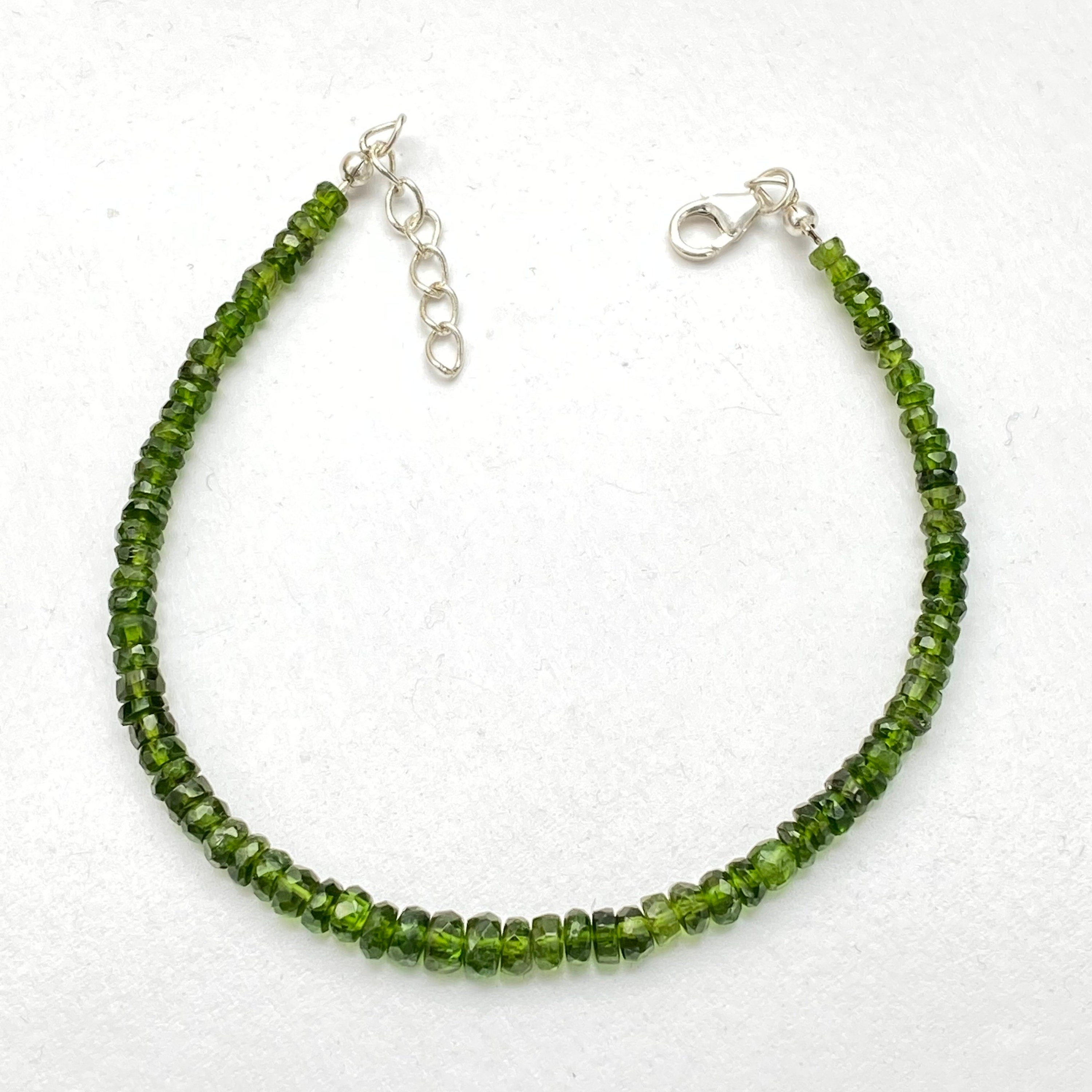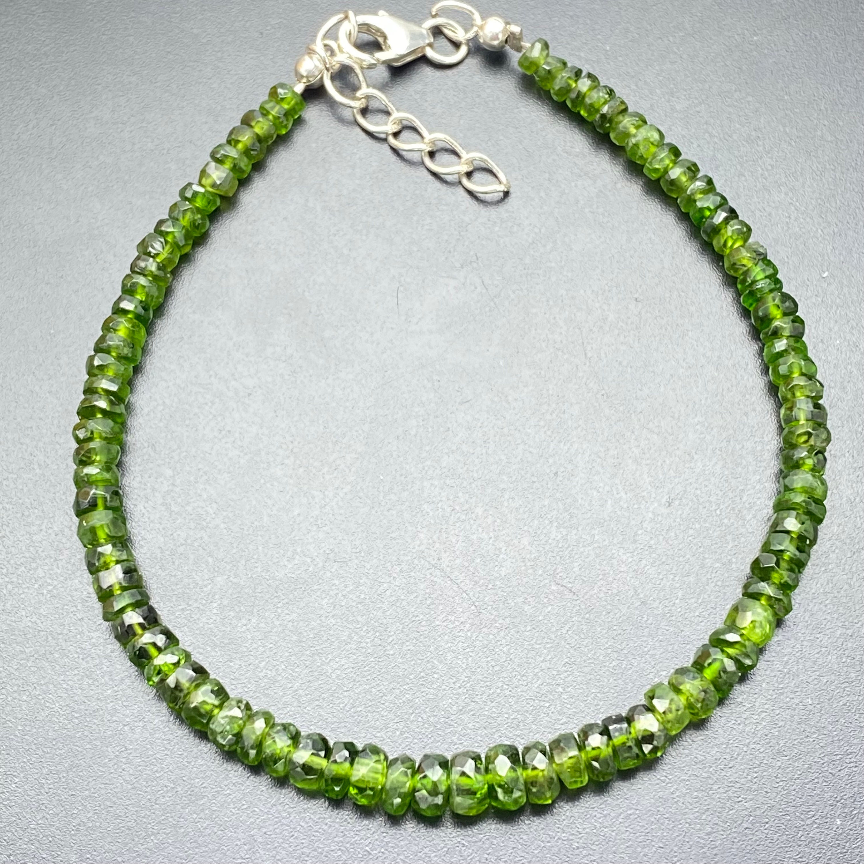 This bracelet is made of high-quality materials. The Siberian Chrome Diopside is natural and untreated and the accents and closure are made of solid 925 sterling silver.