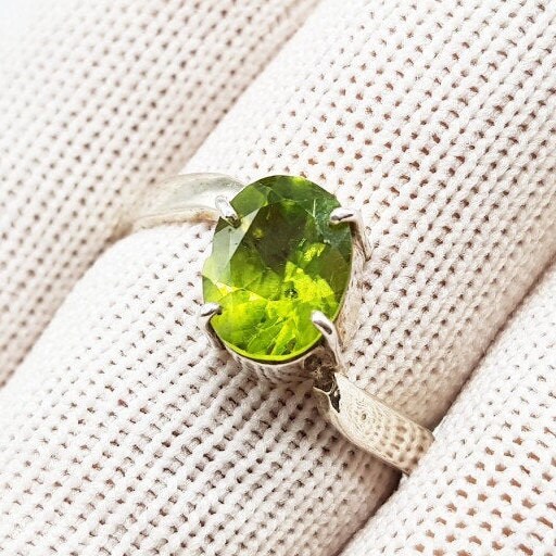 Unusual Natural Peridot in Solid 925 Sterling Silver Statement Ring
