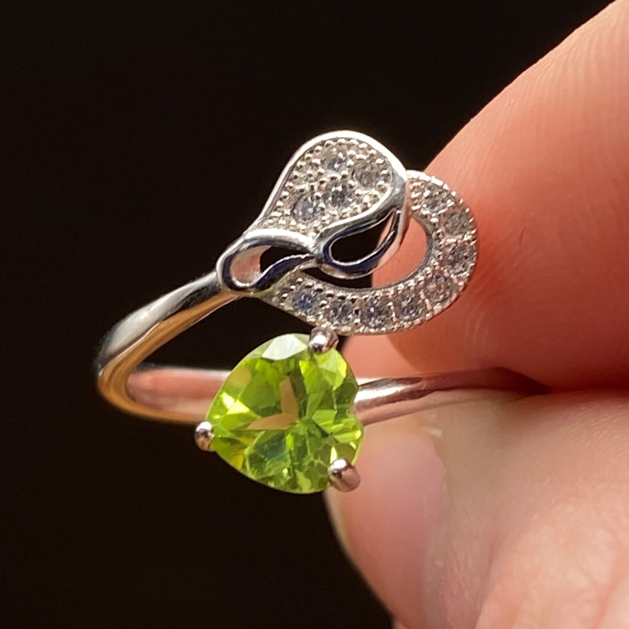 Admirable Natural Heart Peridot & Solid 925 Sterling Silver Statement Ring