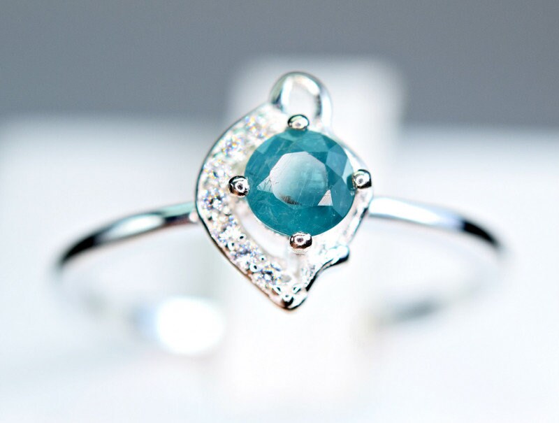 Unique Natural Blue Tourmaline/Indicolite & Solid 925 Sterling Silver Statement Ring