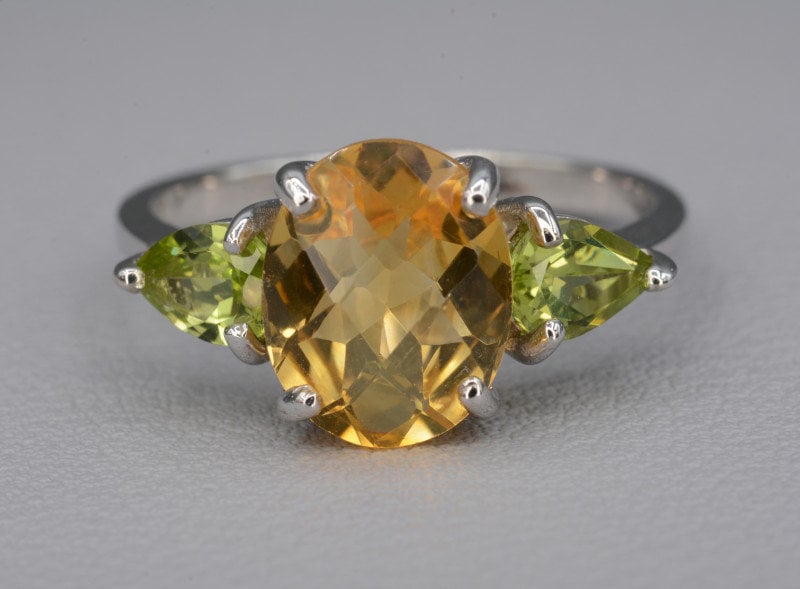 Interesting Natural Citrine, Peridot & Solid 925 sterling Silver Statement Ring